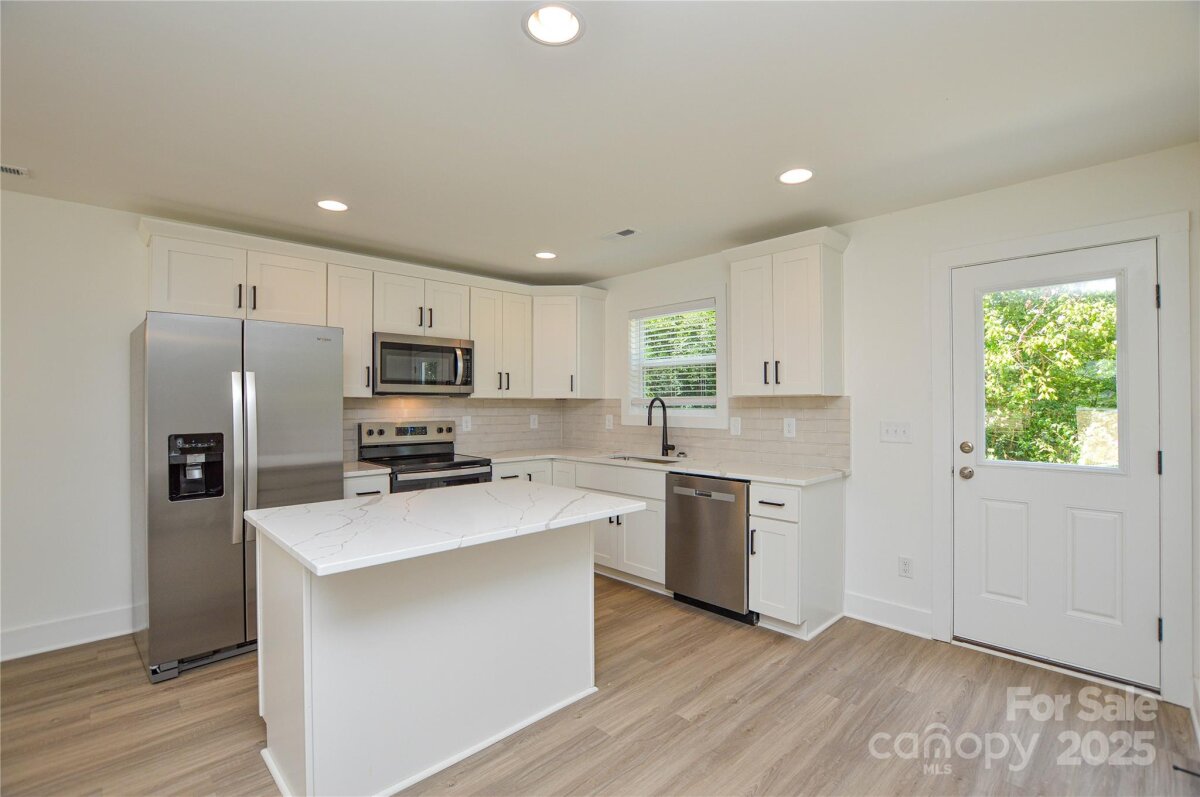 Welcome to this stunning NEW construction, a 3-bedroom, 2.5-bath home ready for immediate move-in! With a thoughtfully designed floor plan, this home offers an inviting open space in the living & dining areas perfect for effortless entertaining and everyday convenience. The modern custom kitchen by Cabinet IQ boasts a lovely center island, quartz countertops, stylish backsplash, and a stainless steel appliance package. Designer LVP flooring on main complimented by sleek black hardware throughout. Upstairs, retreat to the primary bedroom featuring a vaulted ceiling & fan, walk-in closet, and a well appointed ensuite. Two secondary bedrooms & a guest bathroom round out the upper level. Additionally, this gem flaunts a covered front porch, 1-car garage, and a rear patio. This home is perfect blend of style and practicality, come see for yourself!