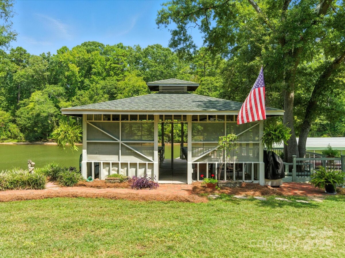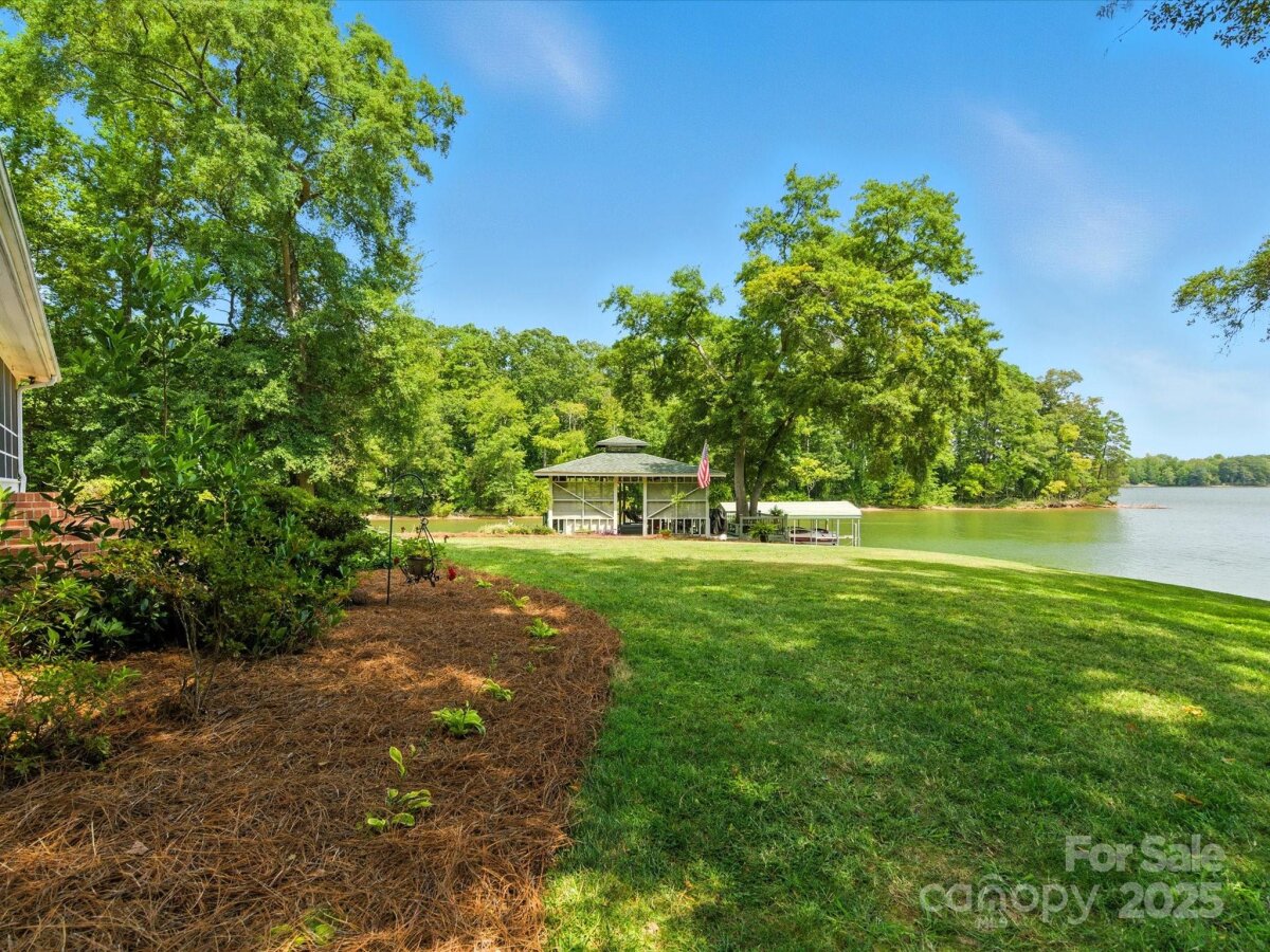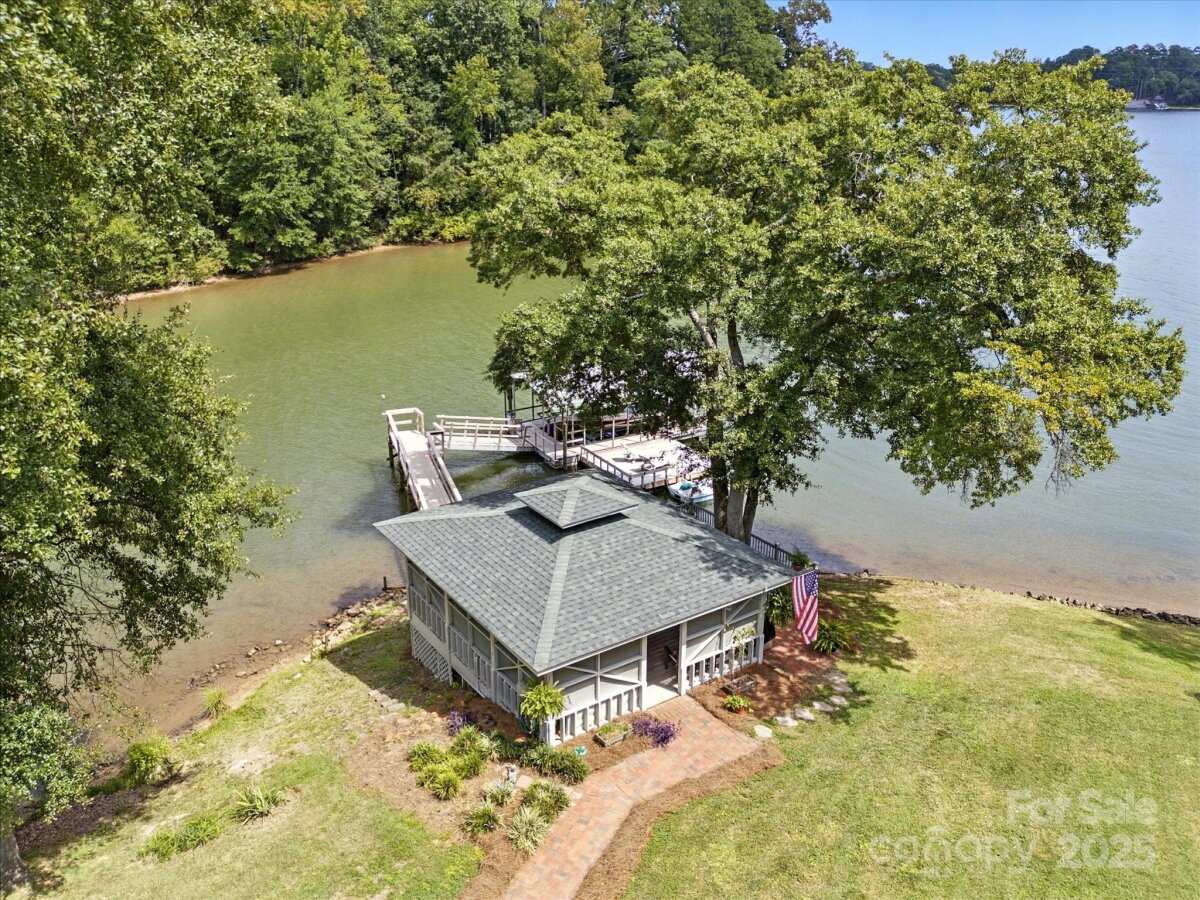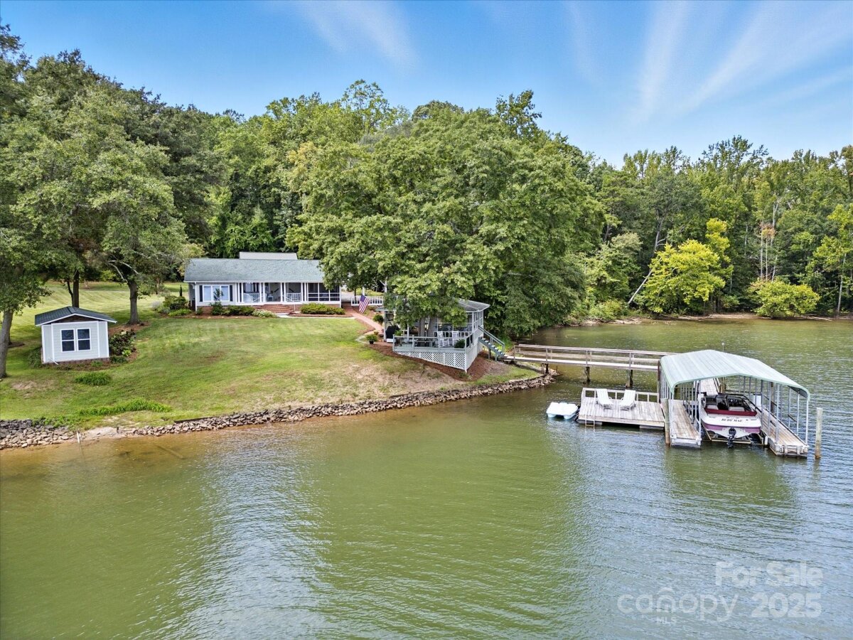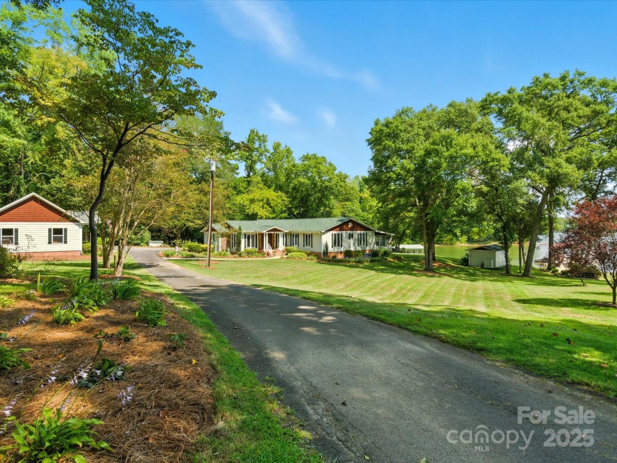 THE RARE WATERFRONT GEM YOU’VE BEEN WAITING FOR! This beautiful, one of a kind ranch is tucked away on a private road with only 5 homes, situated on .91 acres with magnificent waterfront views and expansive outdoor living spaces! Nestled in a quiet cove with 174 ft of shoreline and wide main channel views, this property offers the perfect blend of privacy, charm, and lake living. The welcoming open floor plan has large windows throughout with inviting natural light and gorgeous views from every room. Spacious kitchen features an abundance of custom cabinetry, large island, granite countertops, stainless steel appliances, and gleaming hardwood floors. Large family and dining room has picturesque lake views. Lovely wide custom moldings and large columns throughout. The office/flex space provides gorgeous panoramic views. Enjoy morning coffee on the private, southern style back porch, while admiring serene views of the lake and wildlife. Relax on the cozy screen porch with your favorite book. Brick pavers lead to a charming gazebo, with built in countertop, sink, refrigerator, and grilling area, making it the perfect area for entertaining friends and family. Composite pier, covered boat slip, boat lift, and floating dock. Huge workshop/garage has electricity, outside water, roll up garage door, and attic storage with 7 ft ceilings. Property is surrounded by preserved natural habitat, protected by the Mt Island Educational State Forest. Home was completely remodeled and permitted in 2008. Recent updates include house roof 2023, HVAC 2023, boat house roof 2024, gazebo roof 2018, composite dock 2017, dishwasher 2023, microwave 2023, water heater 2022. Close to shopping & restaurants, 15 min to Uptown Charlotte & CLT Douglas Intl. Airport. Close to I485, I85, and I77.