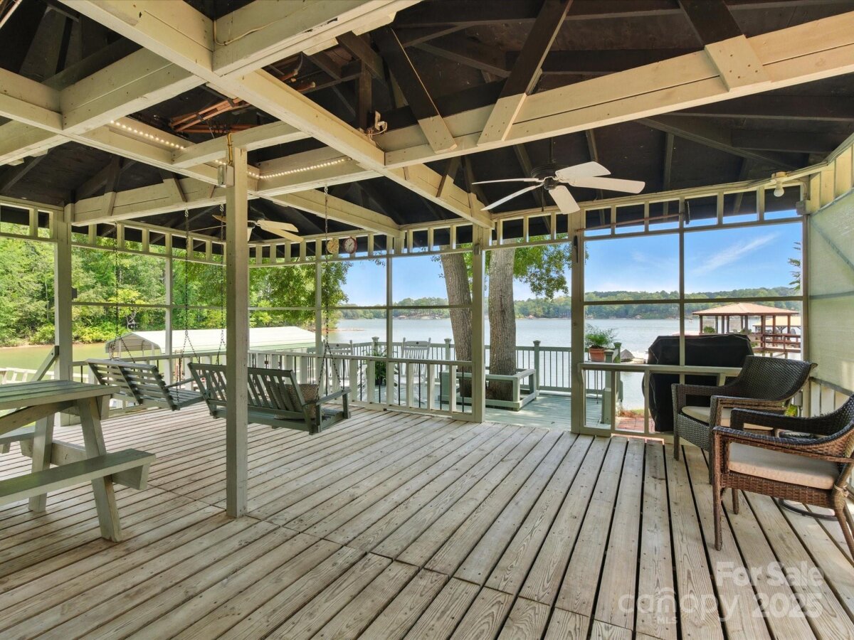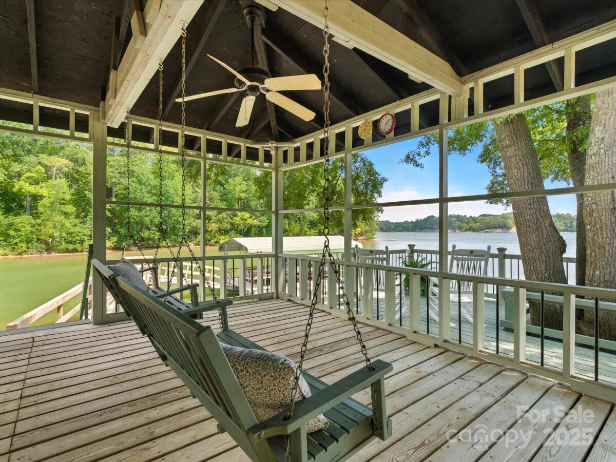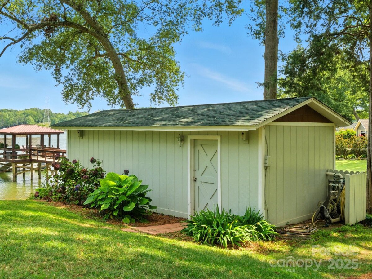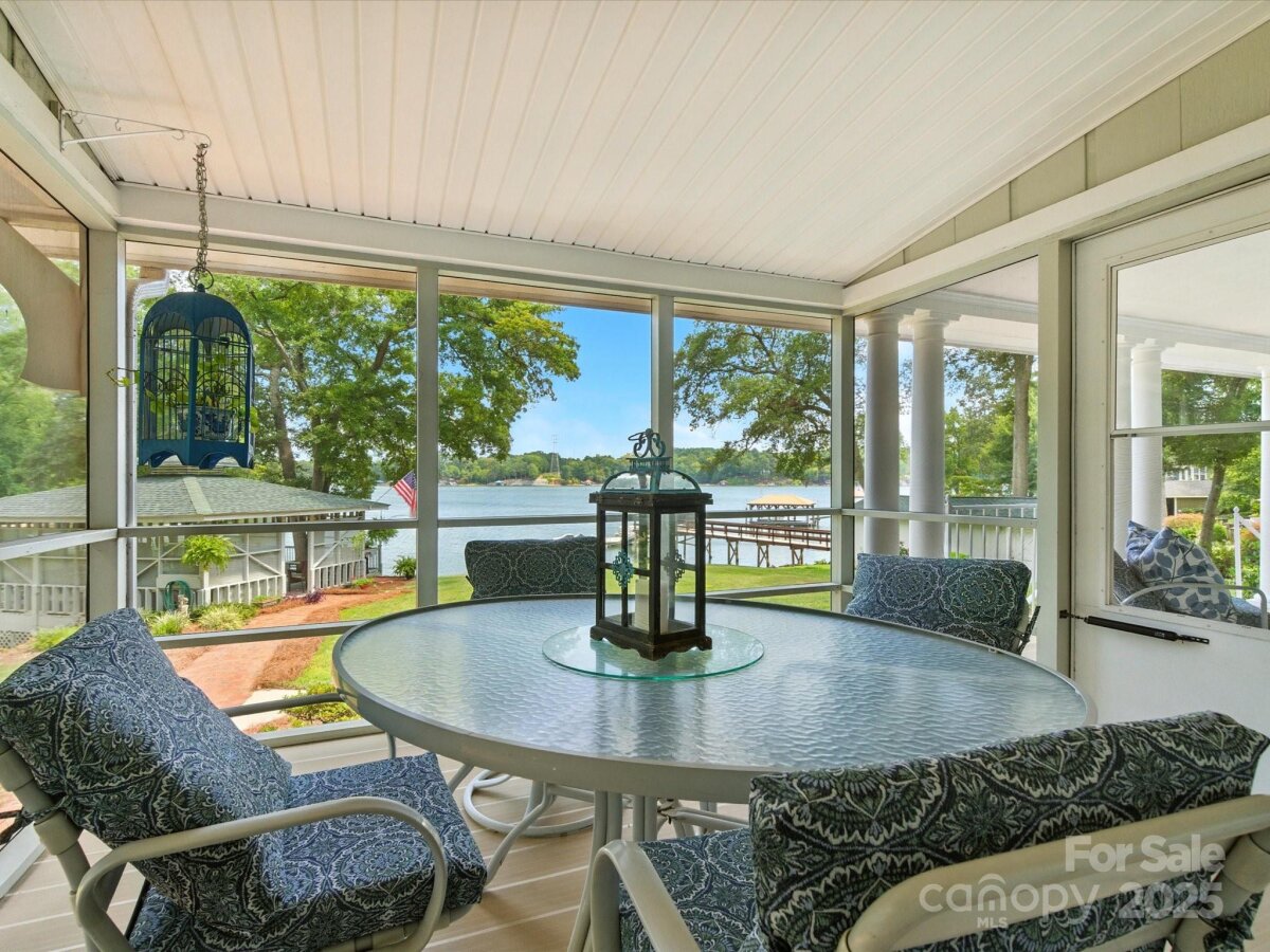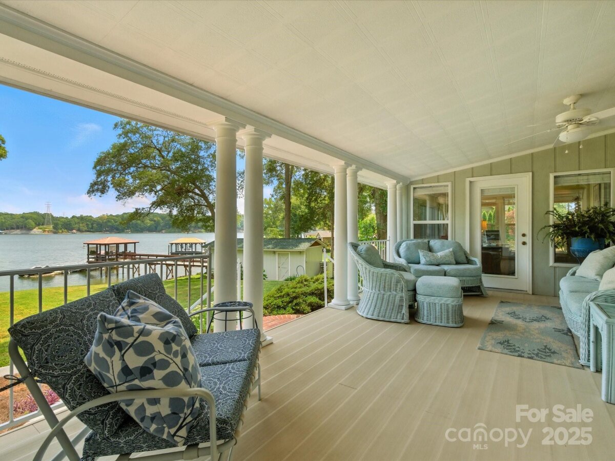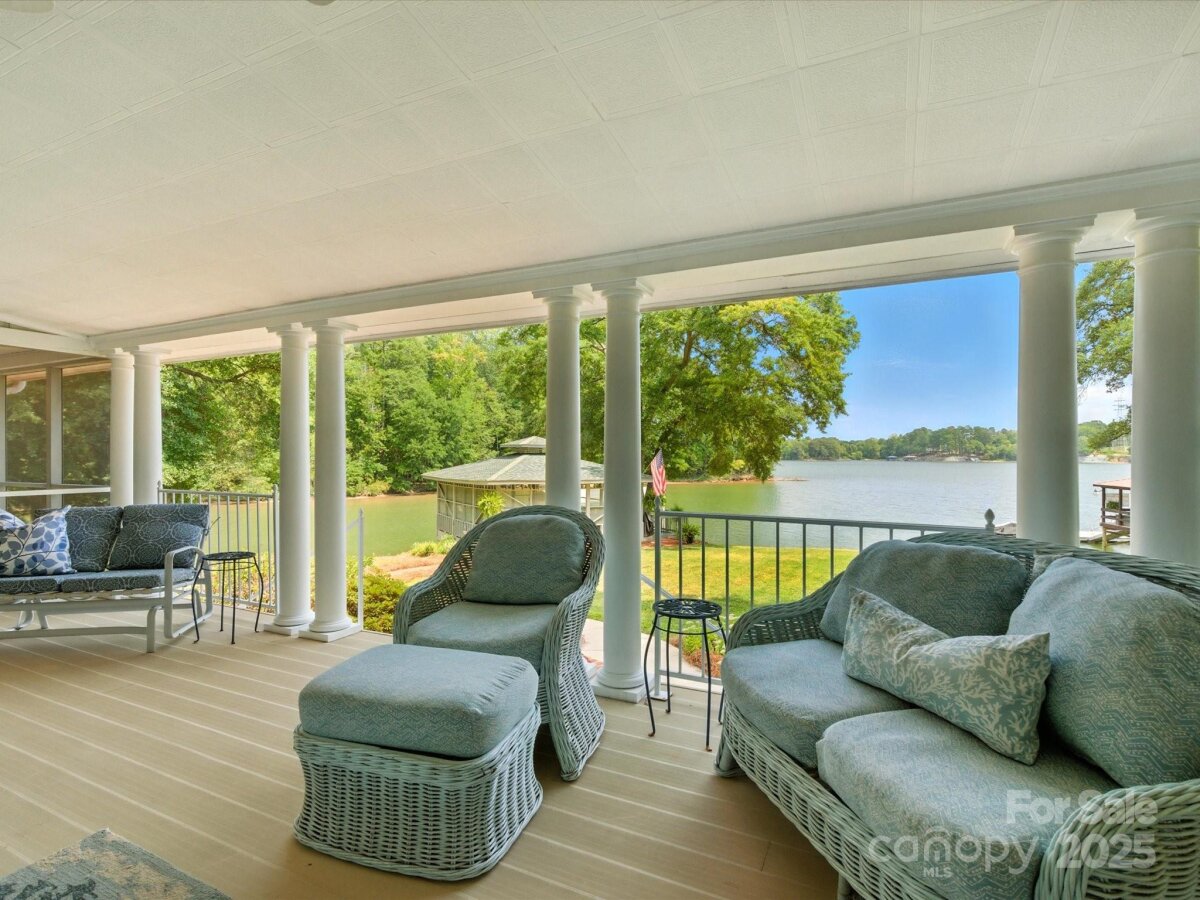 THE RARE WATERFRONT GEM YOU’VE BEEN WAITING FOR! This beautiful, one of a kind ranch is tucked away on a private road with only 5 homes, situated on .91 acres with magnificent waterfront views and expansive outdoor living spaces! Nestled in a quiet cove with 174 ft of shoreline and wide main channel views, this property offers the perfect blend of privacy, charm, and lake living. The welcoming open floor plan has large windows throughout with inviting natural light and gorgeous views from every room. Spacious kitchen features an abundance of custom cabinetry, large island, granite countertops, stainless steel appliances, and gleaming hardwood floors. Large family and dining room has picturesque lake views. Lovely wide custom moldings and large columns throughout. The office/flex space provides gorgeous panoramic views. Enjoy morning coffee on the private, southern style back porch, while admiring serene views of the lake and wildlife. Relax on the cozy screen porch with your favorite book. Brick pavers lead to a charming gazebo, with built in countertop, sink, refrigerator, and grilling area, making it the perfect area for entertaining friends and family. Composite pier, covered boat slip, boat lift, and floating dock. Huge workshop/garage has electricity, outside water, roll up garage door, and attic storage with 7 ft ceilings. Property is surrounded by preserved natural habitat, protected by the Mt Island Educational State Forest. Home was completely remodeled and permitted in 2008. Recent updates include house roof 2023, HVAC 2023, boat house roof 2024, gazebo roof 2018, composite dock 2017, dishwasher 2023, microwave 2023, water heater 2022. Close to shopping & restaurants, 15 min to Uptown Charlotte & CLT Douglas Intl. Airport. Close to I485, I85, and I77.