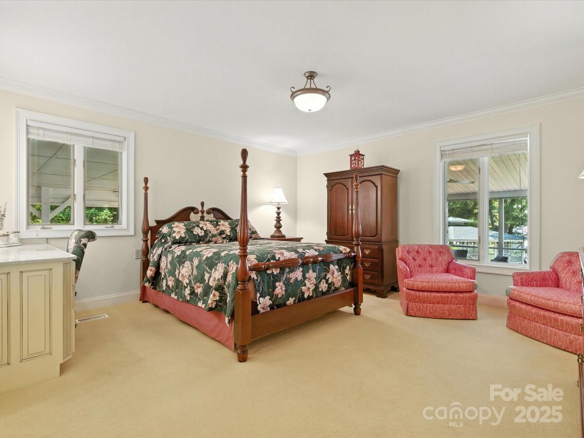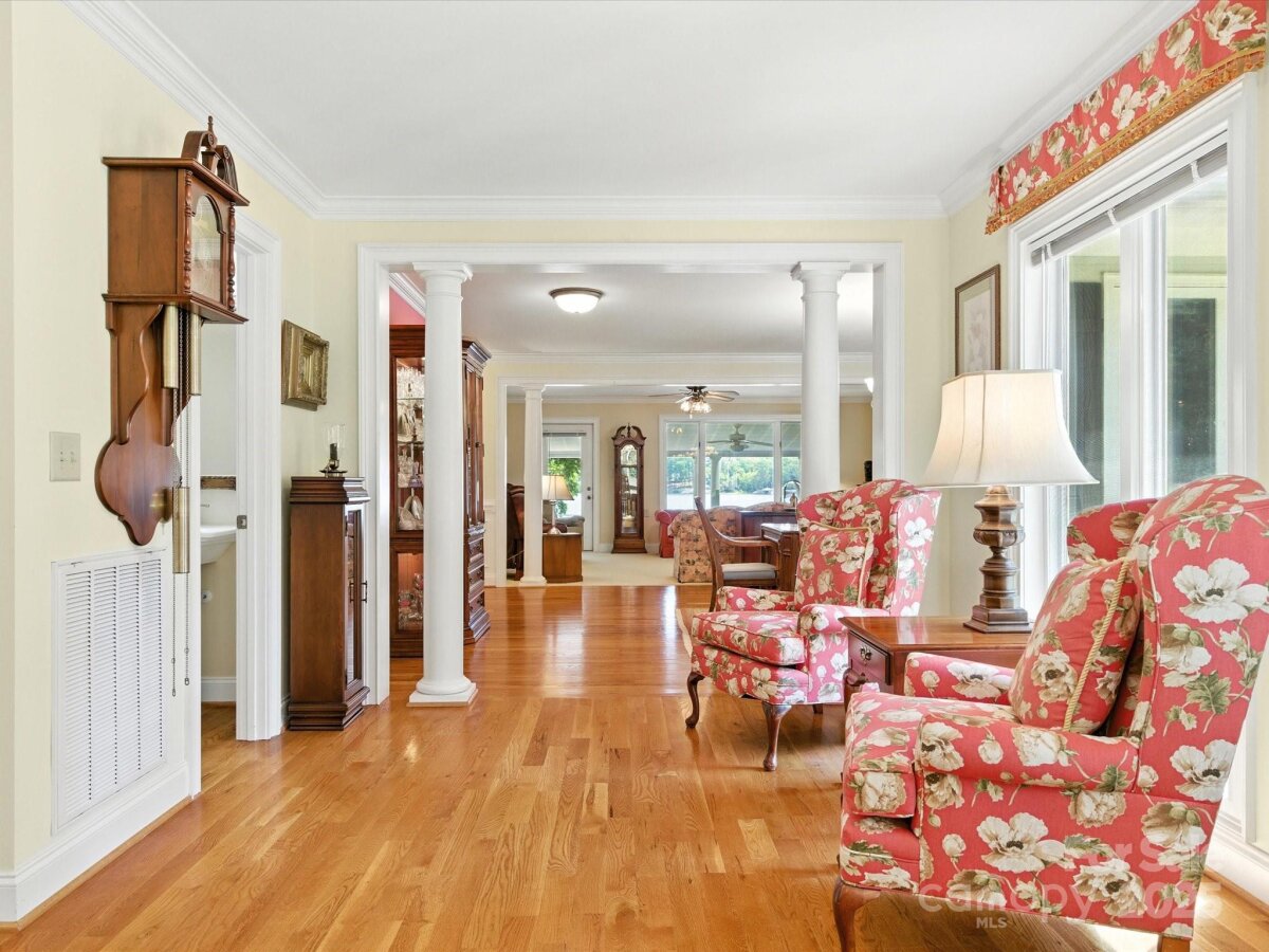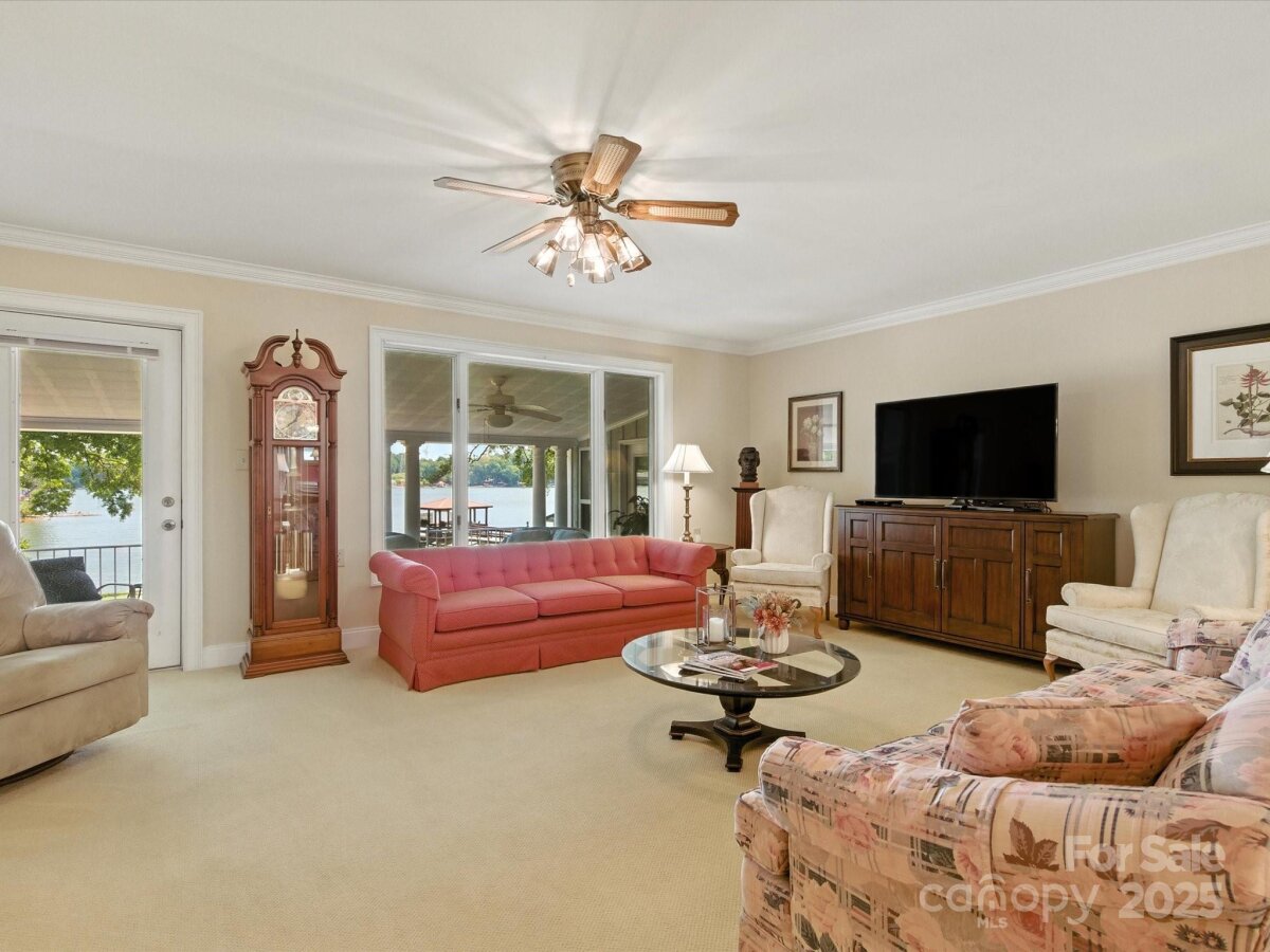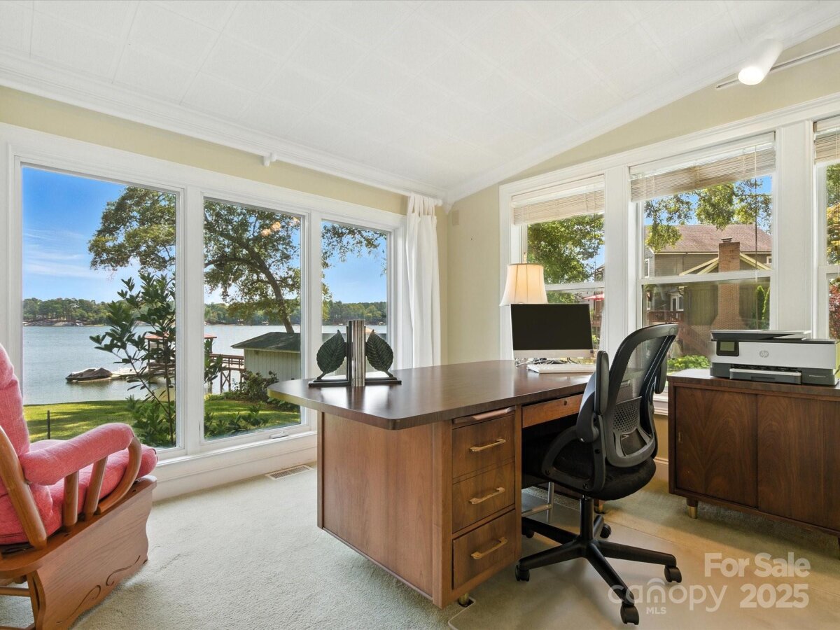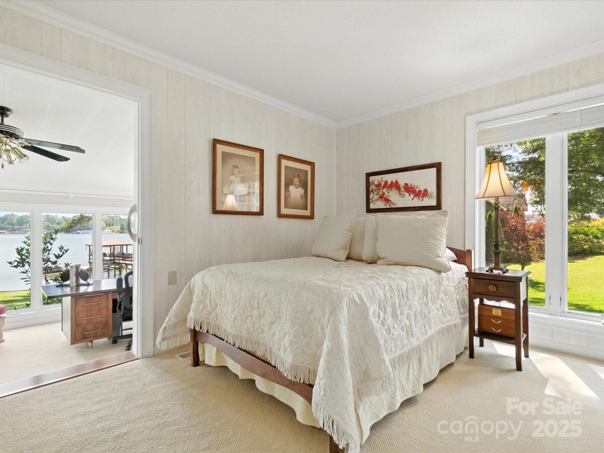 THE RARE WATERFRONT GEM YOU’VE BEEN WAITING FOR! This beautiful, one of a kind ranch is tucked away on a private road with only 5 homes, situated on .91 acres with magnificent waterfront views and expansive outdoor living spaces! Nestled in a quiet cove with 174 ft of shoreline and wide main channel views, this property offers the perfect blend of privacy, charm, and lake living. The welcoming open floor plan has large windows throughout with inviting natural light and gorgeous views from every room. Spacious kitchen features an abundance of custom cabinetry, large island, granite countertops, stainless steel appliances, and gleaming hardwood floors. Large family and dining room has picturesque lake views. Lovely wide custom moldings and large columns throughout. The office/flex space provides gorgeous panoramic views. Enjoy morning coffee on the private, southern style back porch, while admiring serene views of the lake and wildlife. Relax on the cozy screen porch with your favorite book. Brick pavers lead to a charming gazebo, with built in countertop, sink, refrigerator, and grilling area, making it the perfect area for entertaining friends and family. Composite pier, covered boat slip, boat lift, and floating dock. Huge workshop/garage has electricity, outside water, roll up garage door, and attic storage with 7 ft ceilings. Property is surrounded by preserved natural habitat, protected by the Mt Island Educational State Forest. Home was completely remodeled and permitted in 2008. Recent updates include house roof 2023, HVAC 2023, boat house roof 2024, gazebo roof 2018, composite dock 2017, dishwasher 2023, microwave 2023, water heater 2022. Close to shopping & restaurants, 15 min to Uptown Charlotte & CLT Douglas Intl. Airport. Close to I485, I85, and I77.
