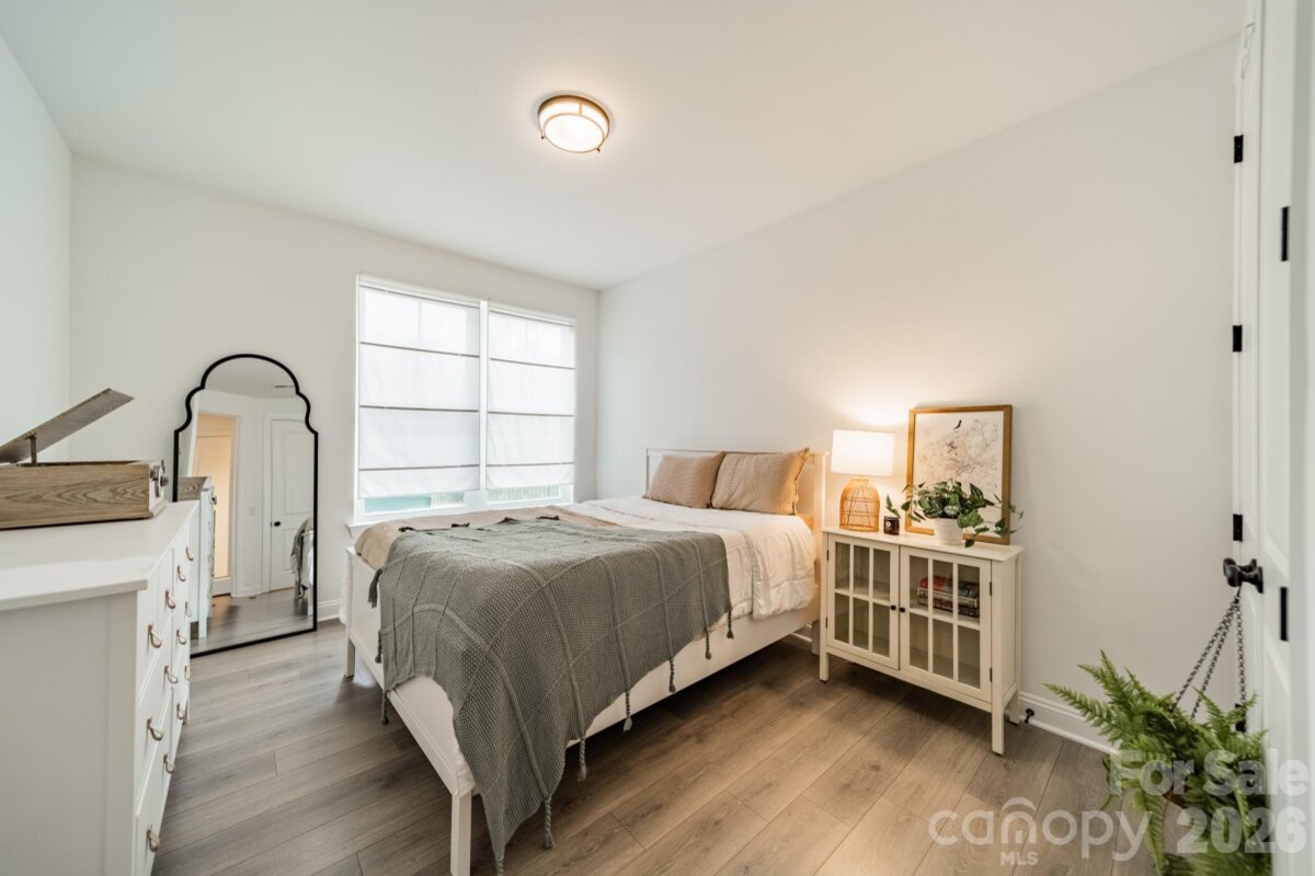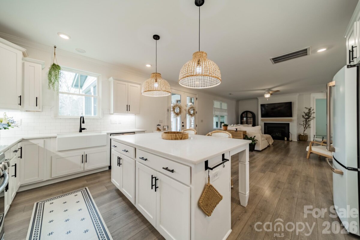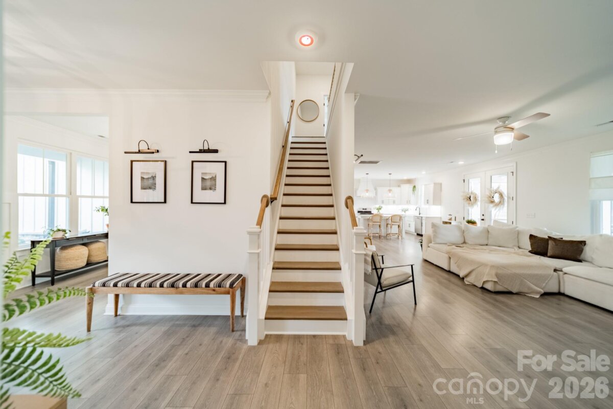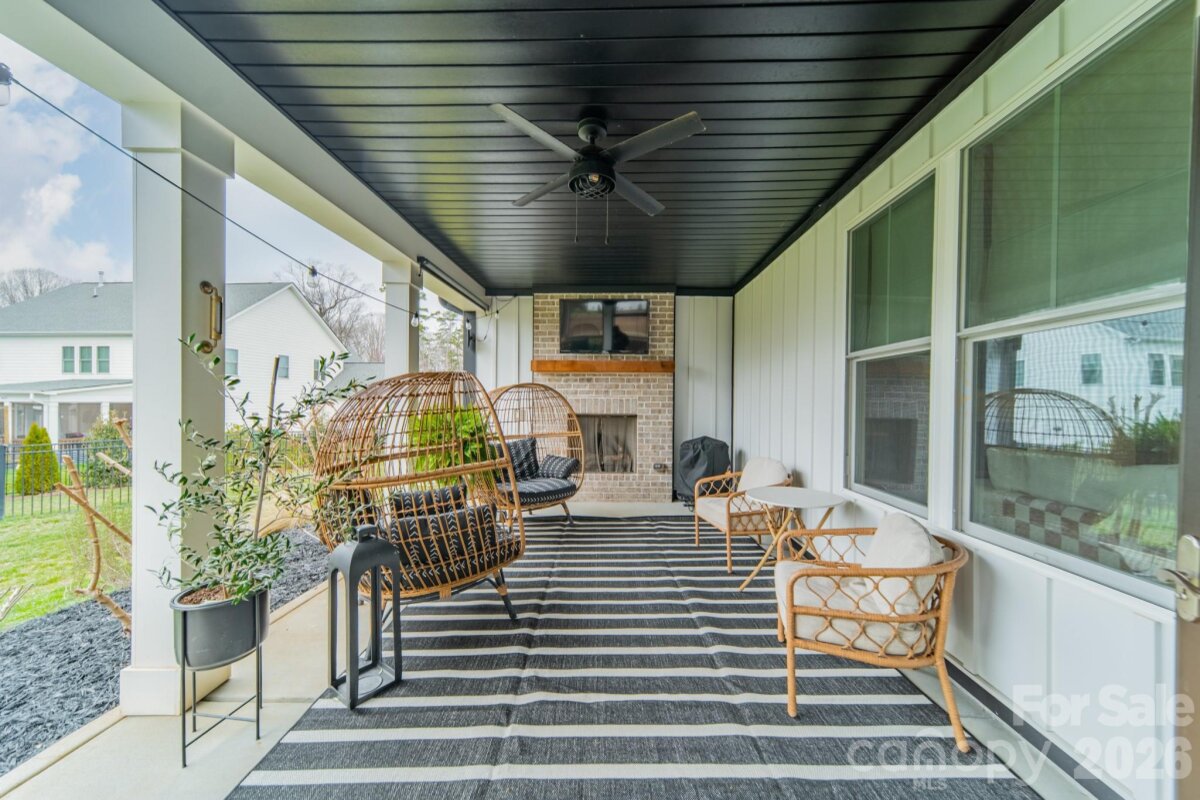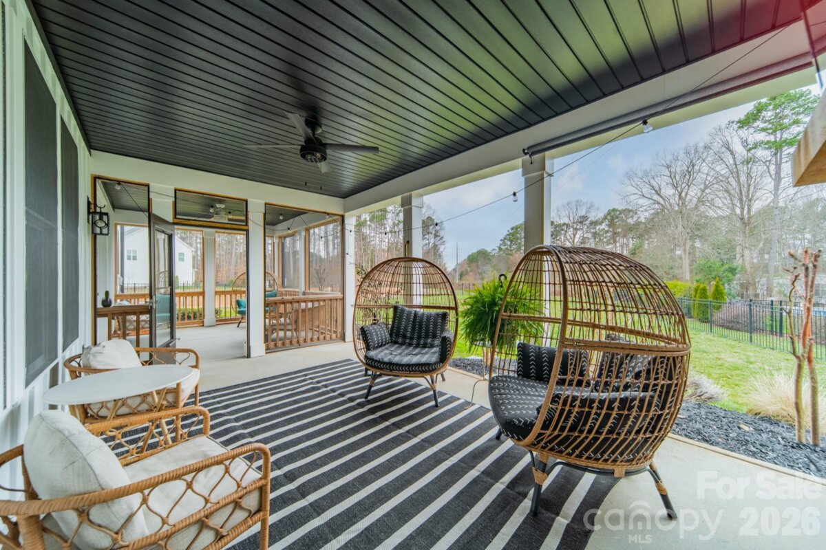 Built in 2021 and maintained in like-new condition, this five-bedroom, three-bath residence offers 3,355 square feet of living space on a 0.50-acre homesite in the Mountain Glen community. A custom arched front door welcomes you into a spacious foyer that introduces the home’s open layout. The main living area connects the kitchen and family room, creating a functional flow designed for everyday living and entertaining. The kitchen has been updated and features Café appliances, a custom wood hood vent, a large island and a generously sized pantry for storage. The kitchen area flows seamlessly into the family room, anchored by a custom fireplace and mantel. Throughout the home, tasteful interior design is complemented by upgraded chandeliers, pendant lighting and Hunter ceiling fans installed in both interior and outdoor living spaces. The main level includes a guest bedroom with an attached full bath along with a private office with French doors and a dedicated dining area featuring judges paneling. This desirable floorplan provides flexibility for work, family gatherings and multigenerational living. Upstairs, the primary bedroom features tray ceilings, a spacious walk-in closet and an large, updated bath with a well-designed layout. A large bonus room provides additional gathering space, while custom modifications to the home create a two-bedroom suite with a shared full bath. The laundry room is conveniently located on the second floor. The outdoor living area includes a screened porch plus a covered patio with fireplace overlooking the private, flat, fully fenced backyard with custom landscaping and upgraded landscape lighting Additional improvements include extensive lighting upgrades throughout the home and a dedicated 220-volt outlet. This home offers modern construction, thoughtful upgrades and convenient access to nearby shopping, restaurants and healthcare facilities in the Charlotte area.