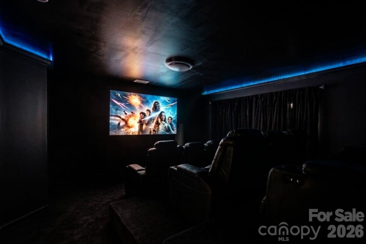 Luxury Lake Community Home w/ Epic In-Home Movie Theater!! Our two-story foyer opens to an inviting layout. Enjoy the marble fireplace with stone accent in your relaxing Livingroom. The open kitchen includes brand new stainless steel appliances with ample space for gatherings. Main level includes an office with coffered accent wall, large formal dining room and a guest bedroom with ensuite bathroom. Upstairs you will find the 5th oversized room has been converted into a boutique-style private movie theater that creates an unforgettable experience (all theater seating and sound system included). The expansive primary suite features a trey ceiling and an impressive layout large enough to accommodate an oversized custom grand bed plus additional seating with a spacious bathroom featuring a separate shower/garden tub and double vanity creating a true retreat; leaving two bedrooms with a Jack-and-Jill bath. Updates: New roof, New water heater, Interior paint, concrete pad in backyard, smart garage opener and fence. BONUS: Most furniture available for purchase separately.