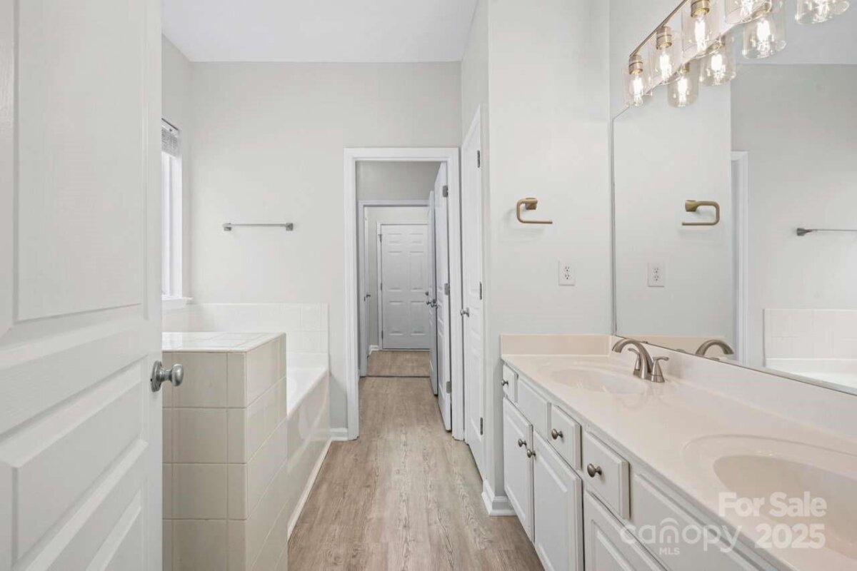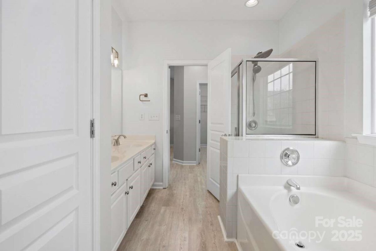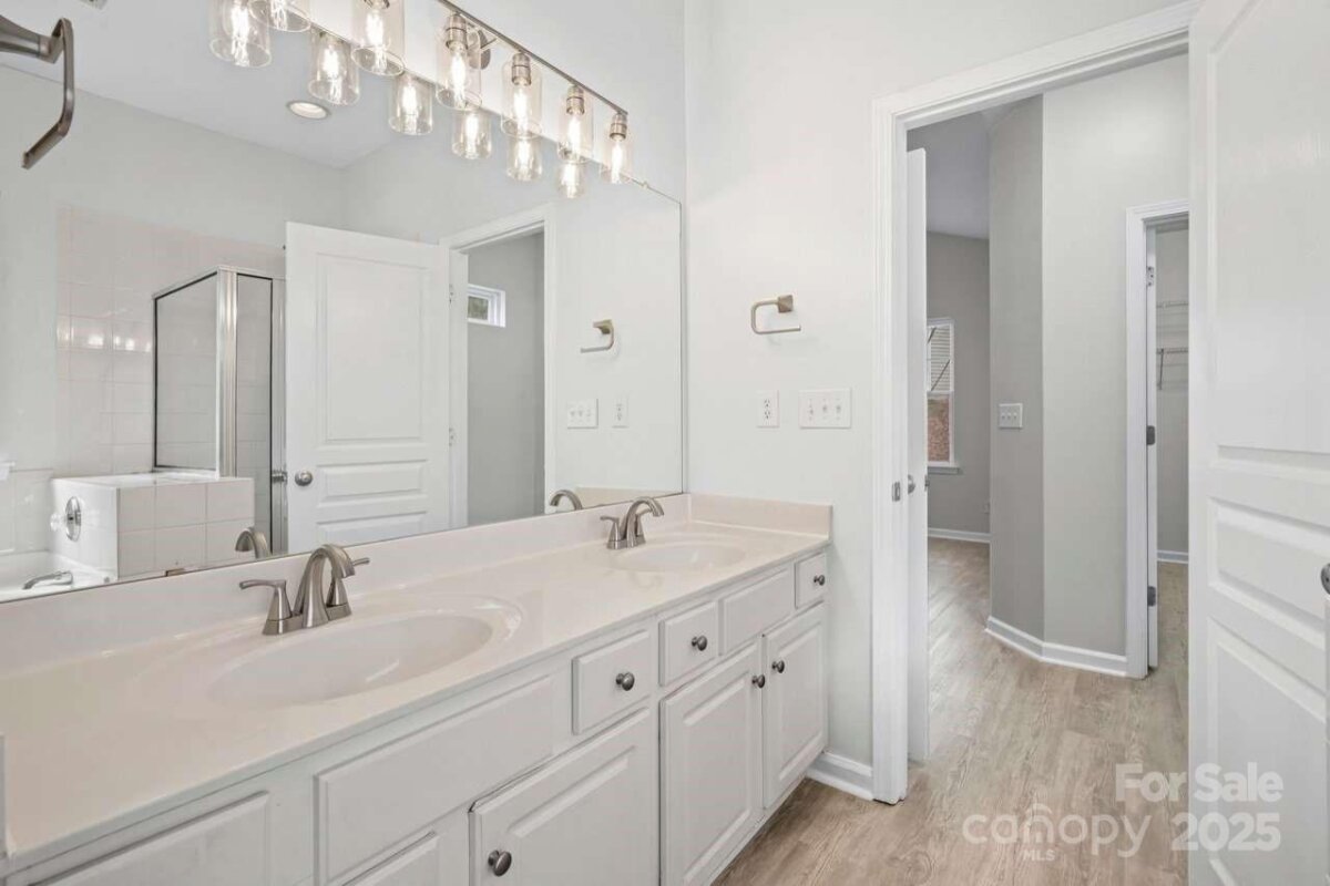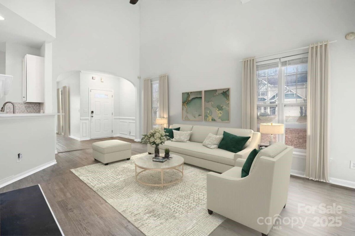 This freshly painted 3-bedroom, 2 ½ -bathroom home on a corner lot in a Cul-da-sac, with an attached garage includes a shed, LED lighting, new doors, vinyl windows and Luxury Vinyl Plank flooring throughout. The primary bedroom is located on the 1st floor, the guest 1/2 bathroom is also located on the 1st floor. Upstairs is a loft/flex space joins two secondary bedrooms, ideal for an office, playroom, or media area. The Kitchen has Calcutta quartz counter tops, tiled backsplash. All new stainless-steel appliances are included (refrigerator, stove, microwave, and dishwasher). Bathrooms have rain shower heads and quartz vanities. Living room and Bedrooms have remote control ceiling fans. The HVAC unit was installed in 2024. Smart devices to include a smart door lock and installed Ring spotlight security camera are included. Community amenities include a pool and playground area. Home is Virtually Staged