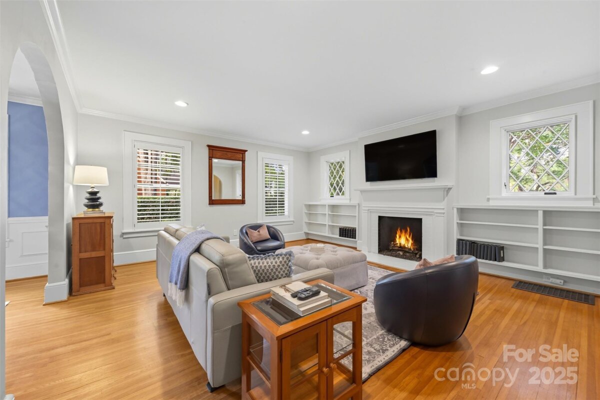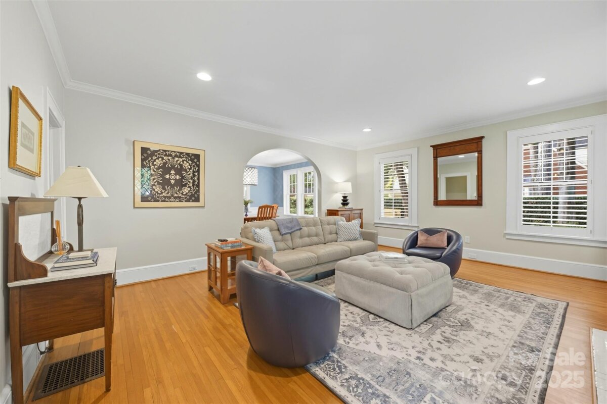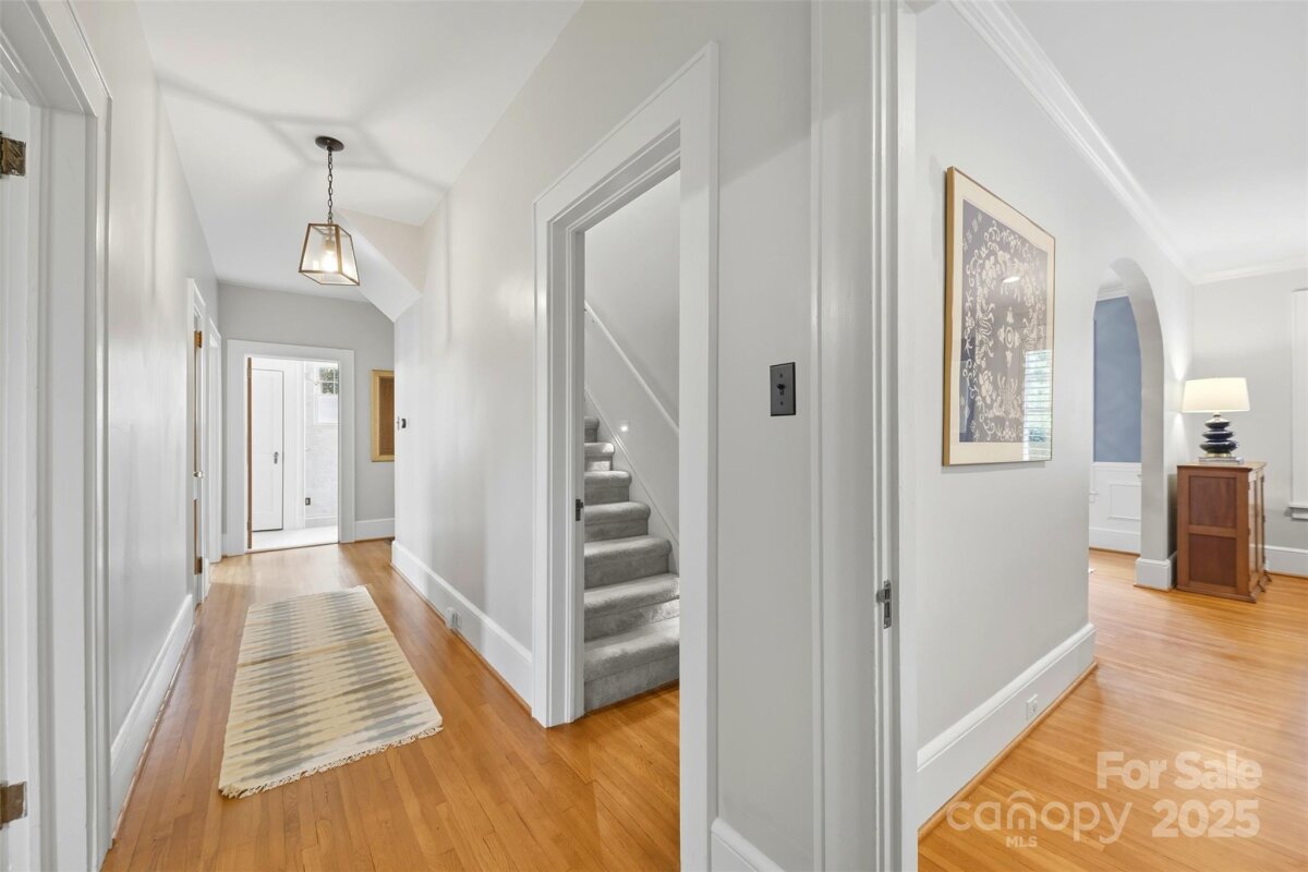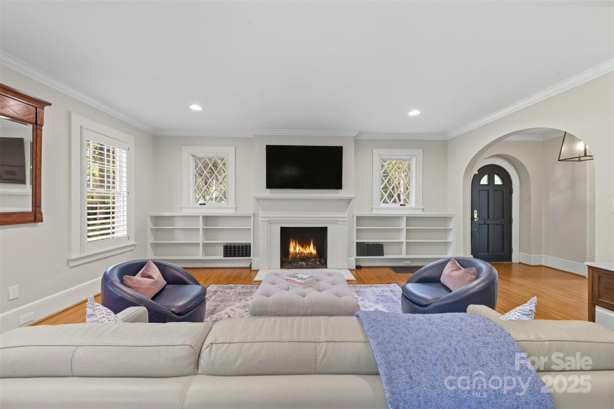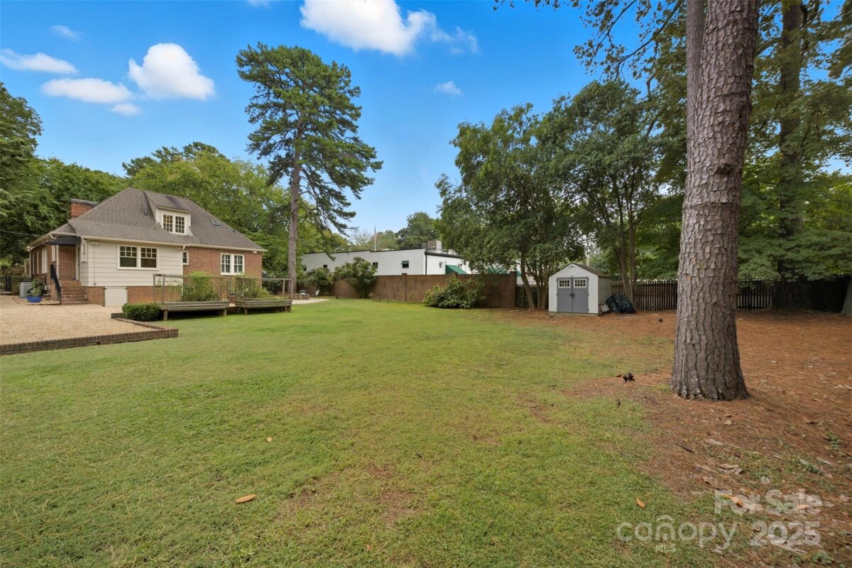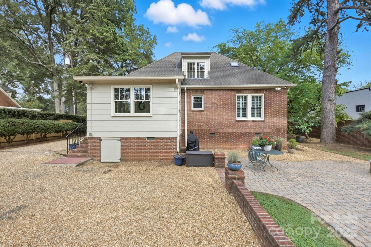 Welcome home to this charming Myers Park Tudor! This 3-bedroom, 3-bath home with an office sits on nearly half an acre, offering both privacy and convenience in one of Charlotte’s most desirable neighborhoods. No detail was missed—step inside through the custom Clark Hall front door to find arched doorways, original hardwood floors, plantation shutters, crown molding, and custom Pella windows, all paired seamlessly with thoughtful modern updates. The kitchen is a chef’s dream with stainless steel appliances, custom cabinetry, a large island, and granite countertops. Upstairs, the expansive primary suite includes an oversized walk-in closet, beautifully updated bath, and new carpet with original hardwoods underneath. Recent upgrades add comfort and peace of mind, including a new HVAC (2024) for the downstairs, electrical enhancements, new lighting and fans in the lower-level bedrooms, cozy gas logs in the fireplace, and a new sump pump. Outdoor living is equally impressive with fresh landscaping, a new 6’ privacy fence and 8' black gate, a custom handrail at the back steps, a Leaf Guard system, tree improvements, and updates to the driveway gate including new optical sensors and back up batteries. With a spacious mud/laundry room, abundant storage, and a walkable location near Providence Road Sundries, Pasta Provisions, Harris Teeter, and the best of Myers Park dining and retail, this home is the perfect blend of timeless character and modern convenience.