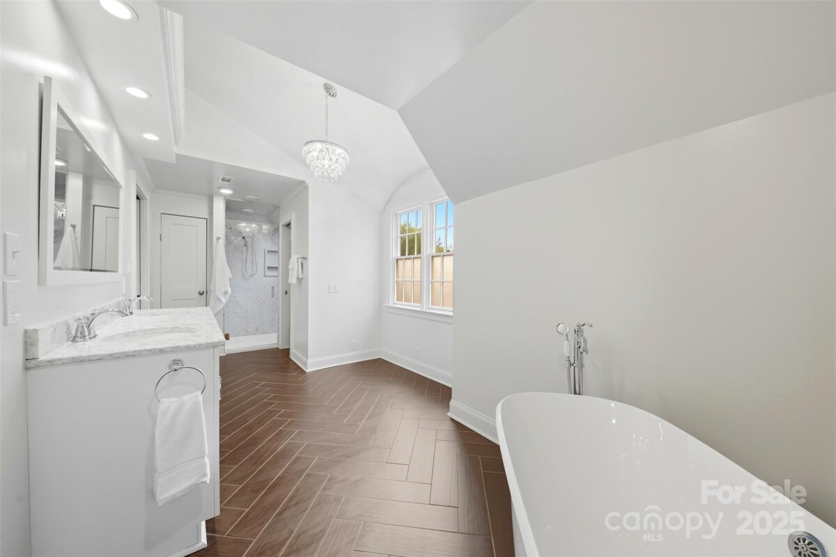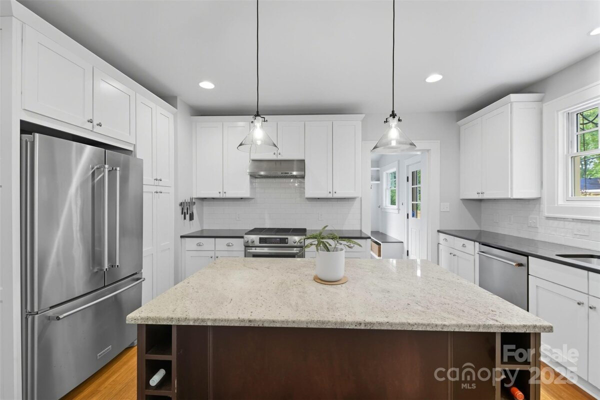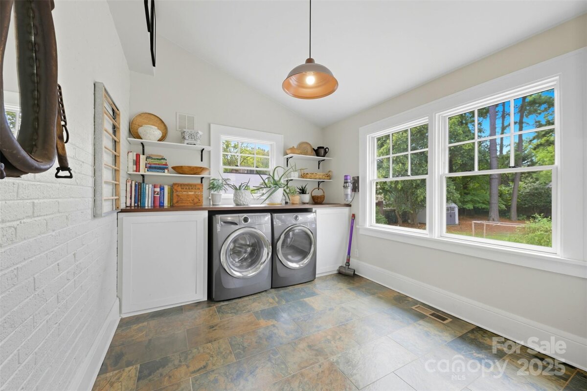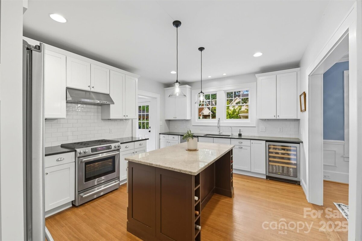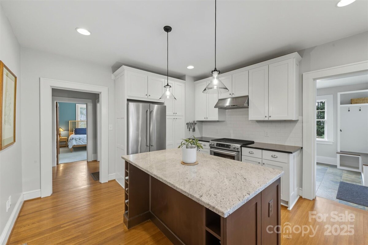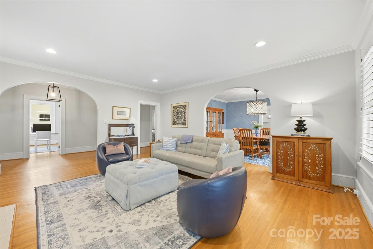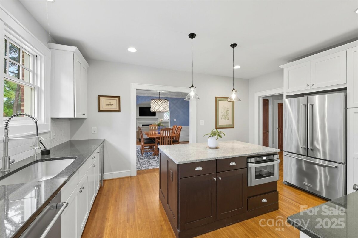 Welcome home to this charming Myers Park Tudor! This 3-bedroom, 3-bath home with an office sits on nearly half an acre, offering both privacy and convenience in one of Charlotte’s most desirable neighborhoods. No detail was missed—step inside through the custom Clark Hall front door to find arched doorways, original hardwood floors, plantation shutters, crown molding, and custom Pella windows, all paired seamlessly with thoughtful modern updates. The kitchen is a chef’s dream with stainless steel appliances, custom cabinetry, a large island, and granite countertops. Upstairs, the expansive primary suite includes an oversized walk-in closet, beautifully updated bath, and new carpet with original hardwoods underneath. Recent upgrades add comfort and peace of mind, including a new HVAC (2024) for the downstairs, electrical enhancements, new lighting and fans in the lower-level bedrooms, cozy gas logs in the fireplace, and a new sump pump. Outdoor living is equally impressive with fresh landscaping, a new 6’ privacy fence and 8' black gate, a custom handrail at the back steps, a Leaf Guard system, tree improvements, and updates to the driveway gate including new optical sensors and back up batteries. With a spacious mud/laundry room, abundant storage, and a walkable location near Providence Road Sundries, Pasta Provisions, Harris Teeter, and the best of Myers Park dining and retail, this home is the perfect blend of timeless character and modern convenience.