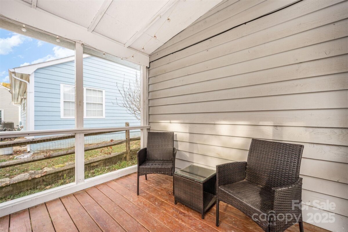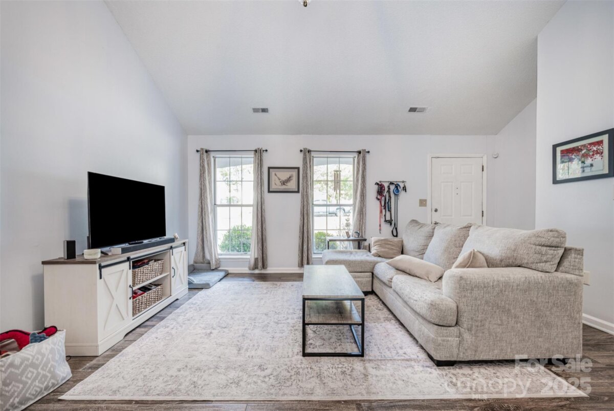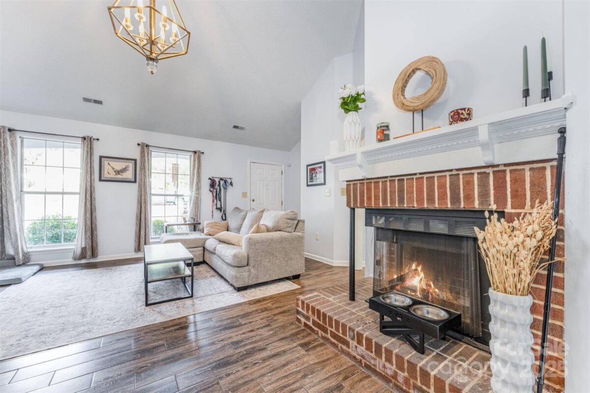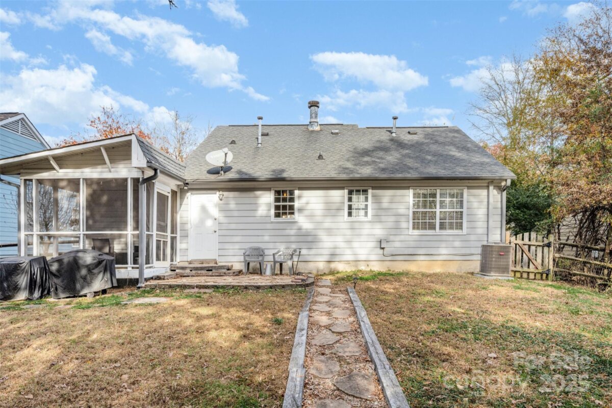 Nestled in the desirable Danby community, this charming 2-bedroom, 2-bathroom home welcomes you with an airy living and dining area featuring vaulted ceilings and a cozy fireplace that adds warmth and character to the space. The screened-in porch feels like an extension of the home—an ideal spot to unwind—opening to a fully fenced backyard with a firepit perfect for relaxed evenings or casual gatherings. The refrigerator, washer, and dryer will remain with the home, and the new HVAC system installed in 2025 is a great added perk. Just minutes from the popular Ballantyne Bowl and charming downtown Pineville, as well as offering quick access to I-485, this home pairs an excellent location with inviting indoor and outdoor living spaces. Come see it today!