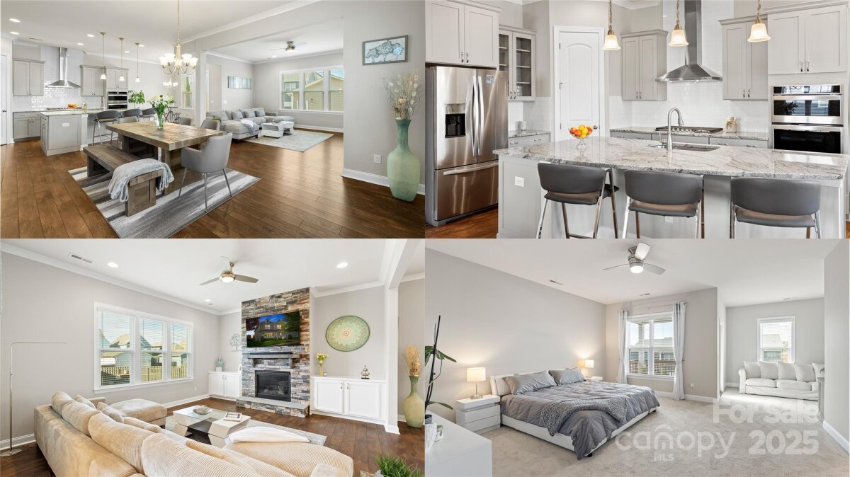 Beautifully updated and situated on a corner lot in the desirable McCullough neighborhood - welcome home to this 4 bedroom, 3.5 bathroom, offering a great floor plan with all upstairs bedrooms offering an en-suite bathroom! The main level offers an open floor plan with towering 10-foot ceilings, laminate wood flooring, and a bright living room with a cozy gas fireplace. The chef’s kitchen boasts an oversized granite island featuring stunning counter tops, ample cabinetry, stainless steel appliances, a dedicated pantry, and an extra storage room waiting for your personal touch. The bonus/bedroom on the main level offers an amazing flex space that can be used in so many ways! Upstairs the primary suite features a private balcony, lounge area, soaking tub, large shower and dual granite vanities. The secondary bedrooms also offer a walk in closet and en suite bathroom each, which provides even further flexibility and usability of this home! Recent updates include: fresh paint on the inside and outside, new carpet, new fan/lights in all rooms, and in-ground irrigation. Enjoy outdoor living with a fenced backyard, with a detached 2 car garage for parking and extra storage. Community amenities include pools, tennis, gym, playgrounds, dog park, and walking paths with Greenway access—just minutes from Ballantyne, Uptown, and easy access to CLT Airport, I77 and I485
