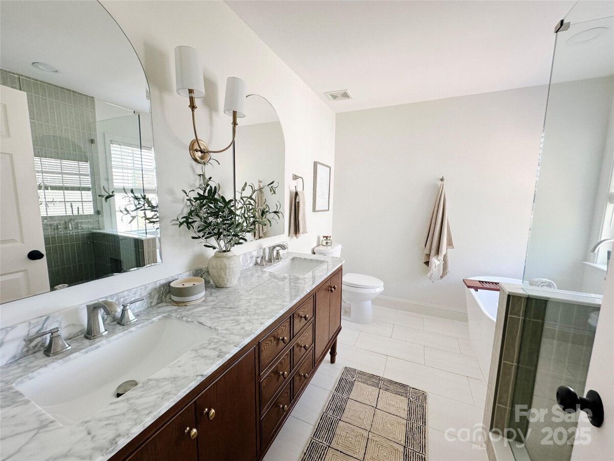 Step into luxury with this beautifully updated 5bdrm 4bthrm home just minutes away from the Ballantyne bowl! Enjoy an expansive open floor plan perfect for entertaining. The family room boasts a soaring ceiling with a custom gas fireplace that seamlessly integrates into a gourmet kitchen that features stainless steel appliances and quartz countertops. This home also features primary suites on both the 1st and 2nd floor. The 1st floor also offers a bonus room that could be used as a playroom, gaming room or an extra office! Enjoy the cozy back deck overlooking a fenced in yard and neatly manicured fire pit. The second floor features an expansive primary suite (along with 3 other bedrooms) with a spa like remodeled ensuite bathroom. Don’t forget to check out the hidden bonus room off the spacious master closet that can be used as your private workout room! A gem of a house in a great school district, this is one you won't want to miss.