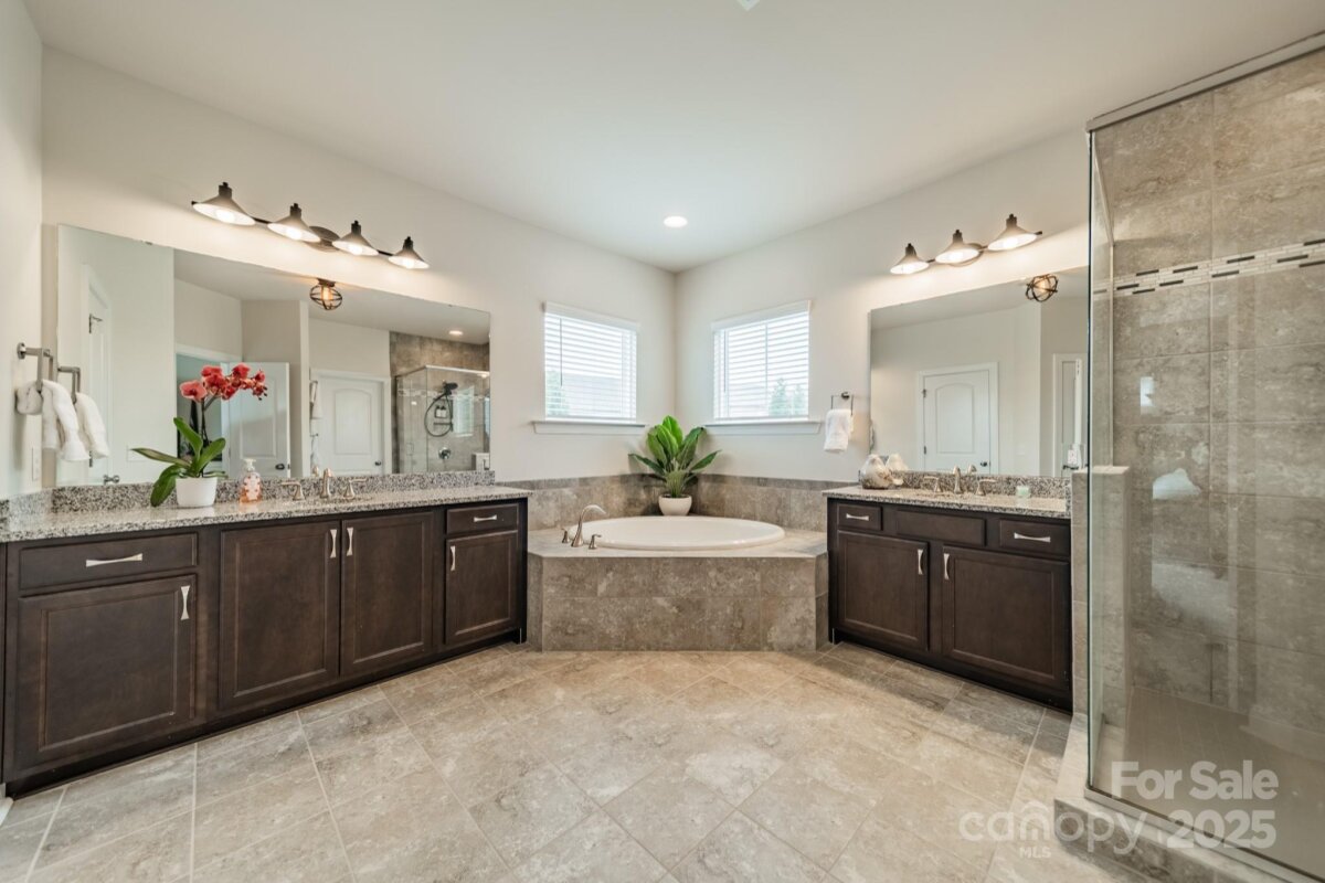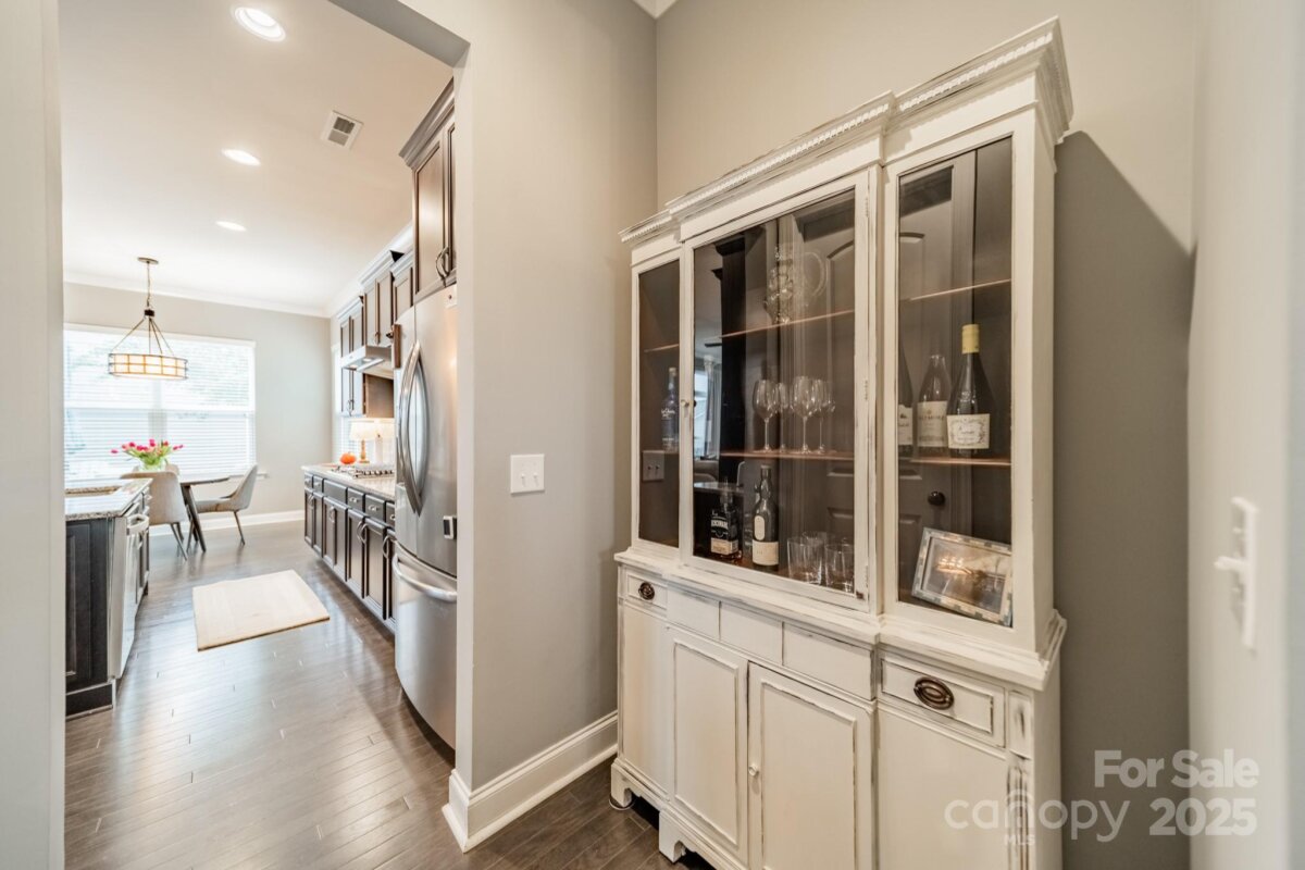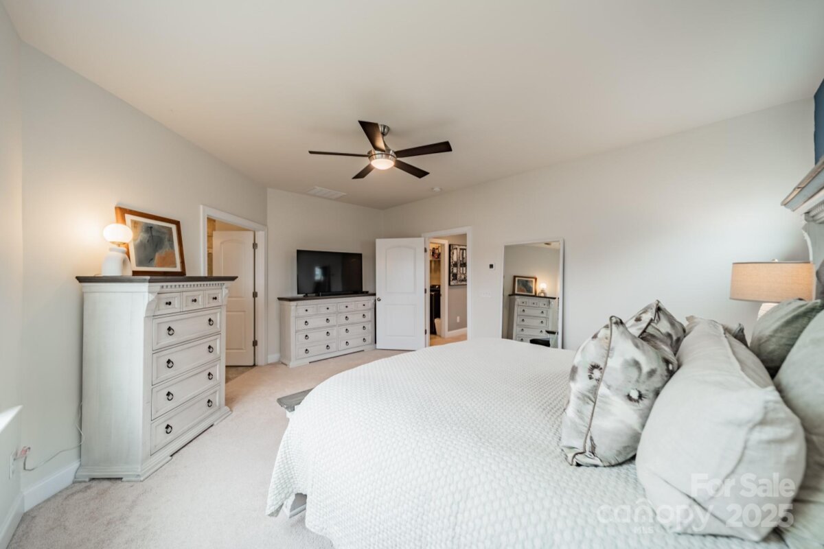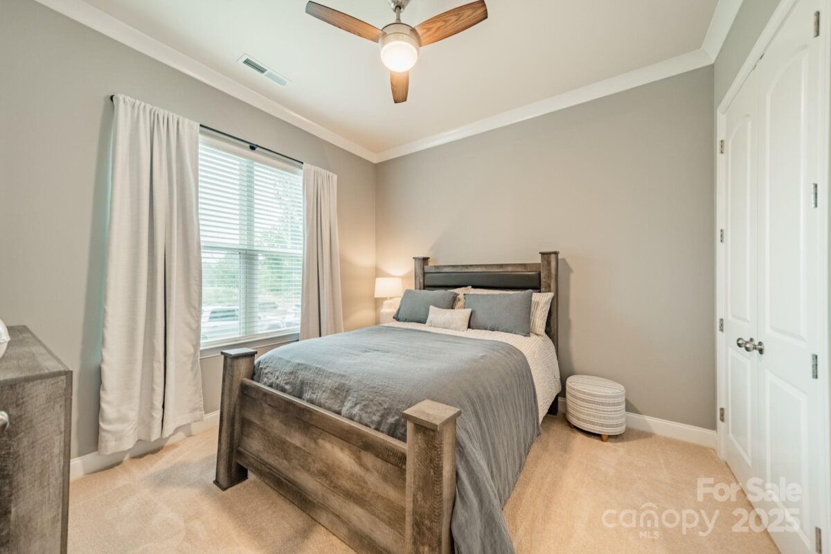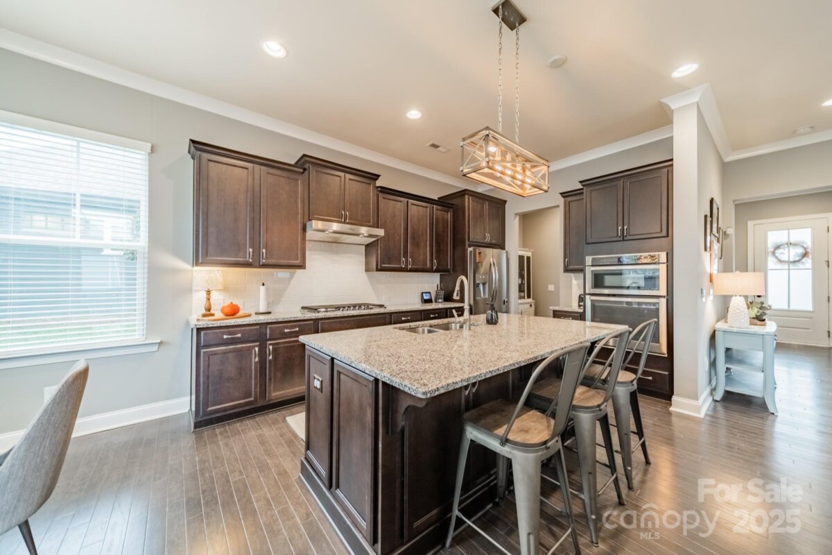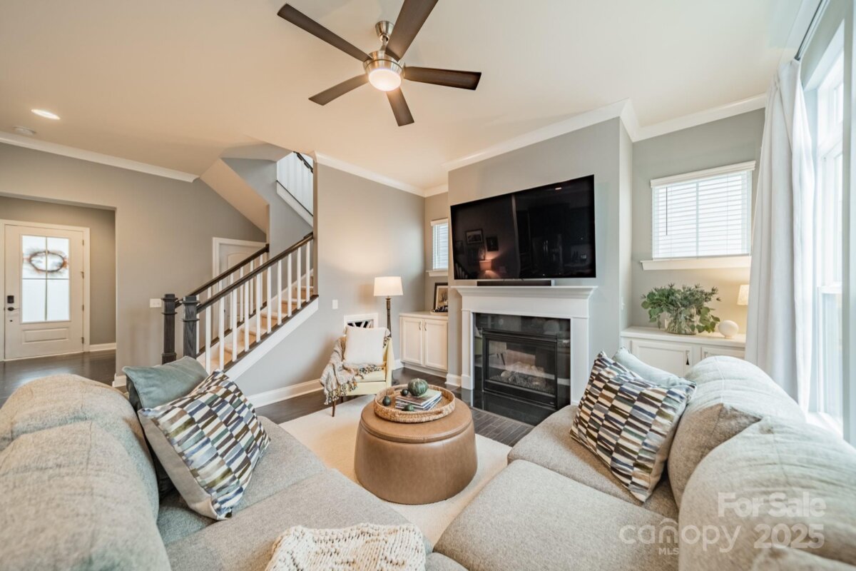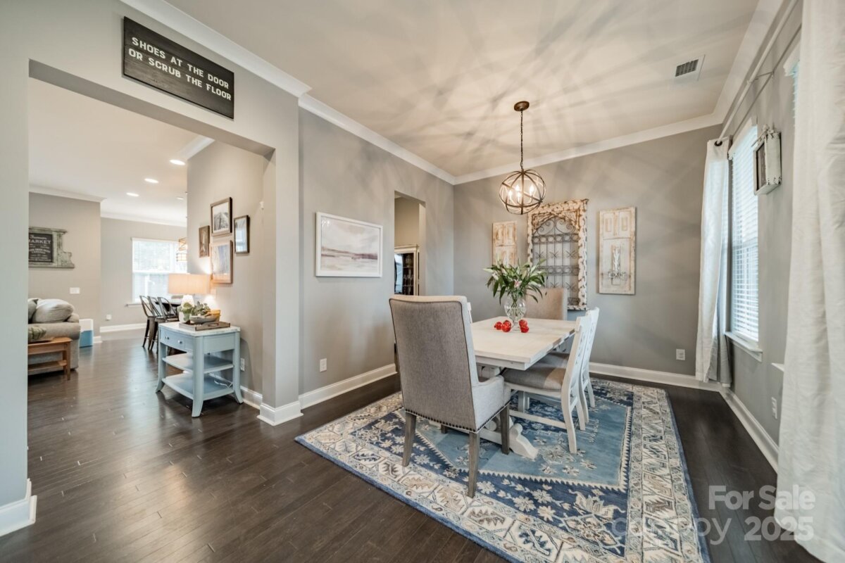 This inviting home in the highly sought-after McCullough neighborhood greets you with a spacious front porch and timeless curb appeal. Inside, the open floor plan features wood flooring, 10’ ceilings on the main level, and 9’ ceilings upstairs. A gracious foyer leads to the dining room and a main level guest suite for added convenience. The light-filled kitchen offers an island, gas cooktop, stainless steel appliances, a walk-in pantry, and a breakfast room. It opens into the great room with a fireplace and built-ins—an ideal space for everyday living and entertaining. A drop zone at the back door completes the main level. Upstairs, the luxurious primary suite features dual vanities, a soaking tub, separate shower, and a generous walk-in closet. Two additional bedrooms, a full hall bath, and a laundry room complete the second floor. Outdoors, the fenced backyard provides privacy for relaxing on the custom patio and lawn, while the HOA includes front yard maintenance for truly easy living. The McCullough community has it all—two pools, playgrounds, clubhouse, pickleball and tennis courts, dog parks, a fitness center, charming pocket parks and walking trails link the neighborhood to parts of the Greenway system. Zoned for the brand-new Ballantyne Ridge High School and just minutes from Downtown Pineville’s shopping, dining, and conveniences, this home combines comfort, community, and location in one remarkable opportunity. Come see for yourself what makes this home—and McCullough living—so special. Welcome home!
