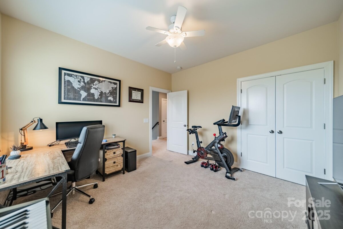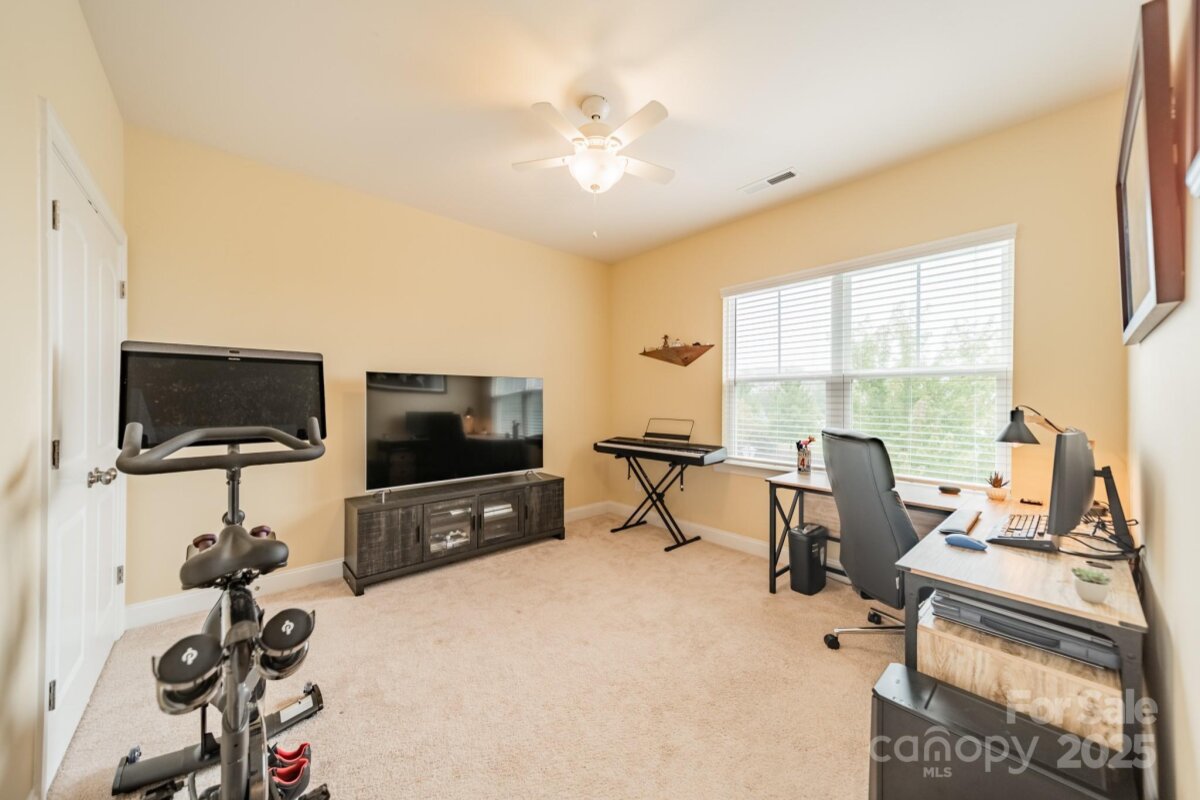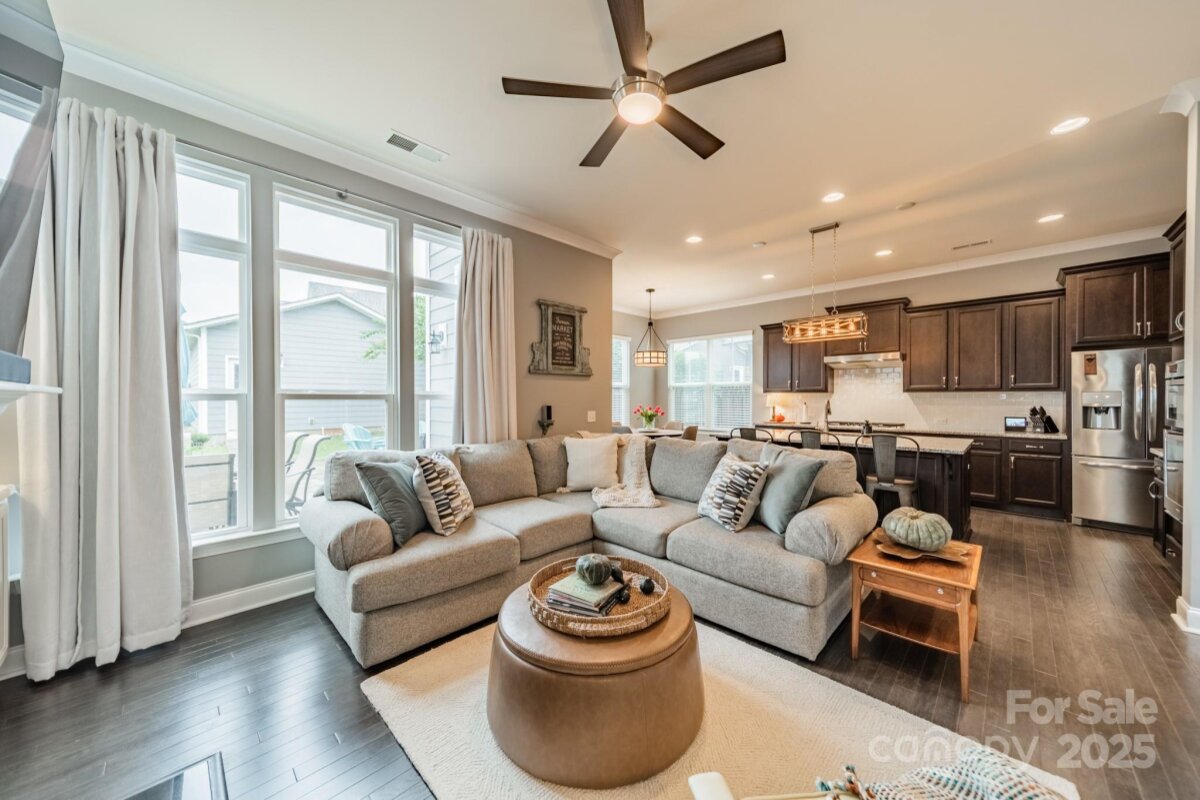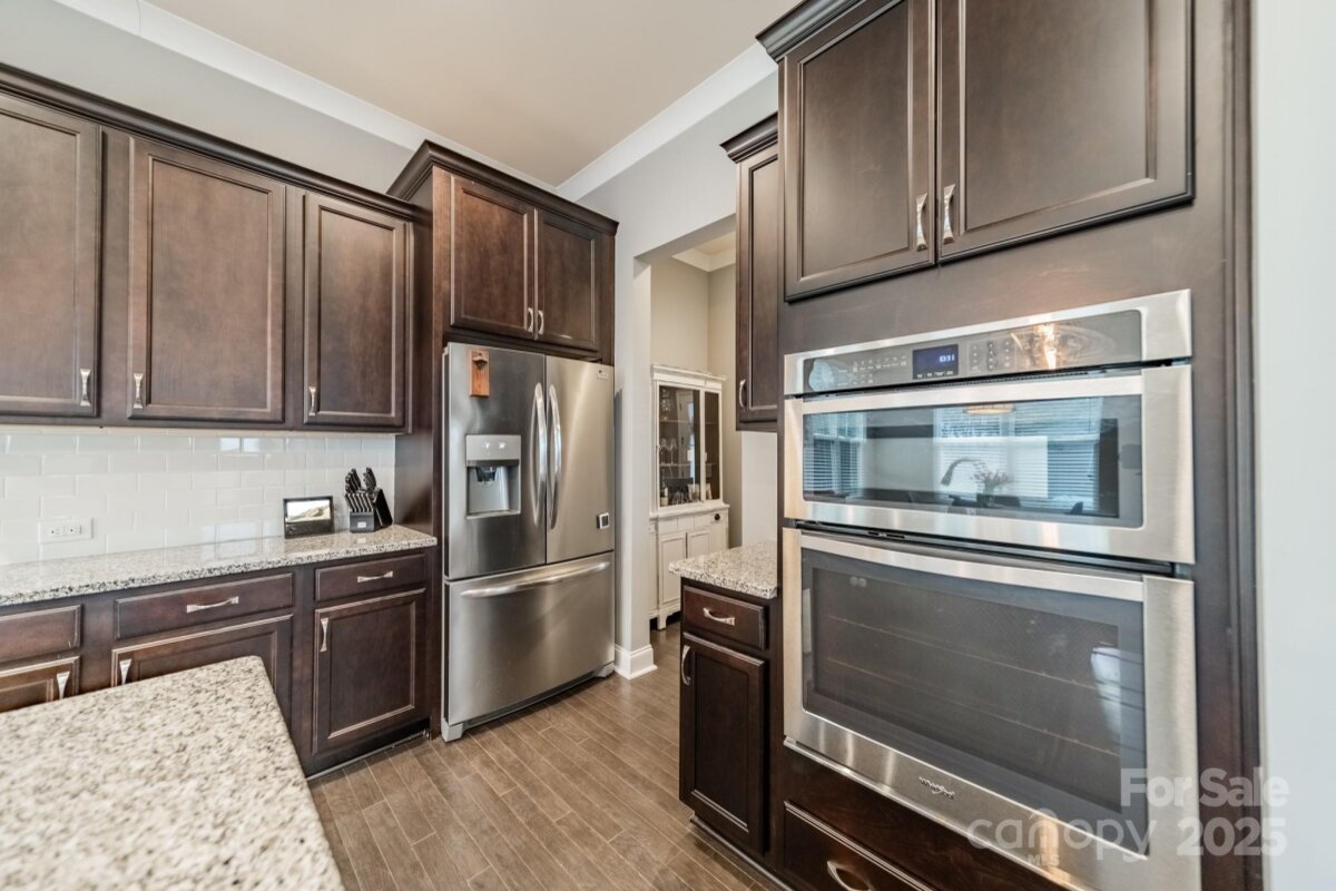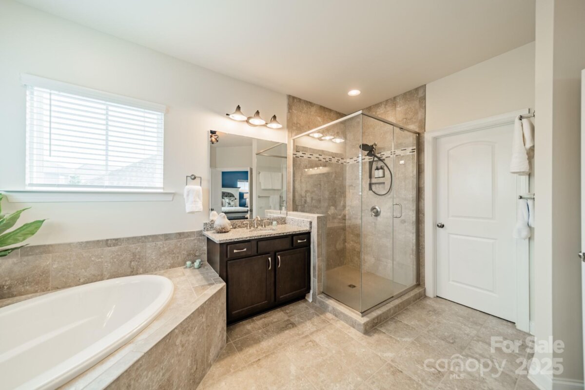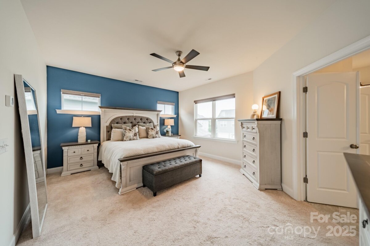This inviting home in the highly sought-after McCullough neighborhood greets you with a spacious front porch and timeless curb appeal. Inside, the open floor plan features wood flooring, 10’ ceilings on the main level, and 9’ ceilings upstairs. A gracious foyer leads to the dining room and a main level guest suite for added convenience. The light-filled kitchen offers an island, gas cooktop, stainless steel appliances, a walk-in pantry, and a breakfast room. It opens into the great room with a fireplace and built-ins—an ideal space for everyday living and entertaining. A drop zone at the back door completes the main level. Upstairs, the luxurious primary suite features dual vanities, a soaking tub, separate shower, and a generous walk-in closet. Two additional bedrooms, a full hall bath, and a laundry room complete the second floor. Outdoors, the fenced backyard provides privacy for relaxing on the custom patio and lawn, while the HOA includes front yard maintenance for truly easy living. The McCullough community has it all—two pools, playgrounds, clubhouse, pickleball and tennis courts, dog parks, a fitness center, charming pocket parks and walking trails link the neighborhood to parts of the Greenway system. Zoned for the brand-new Ballantyne Ridge High School and just minutes from Downtown Pineville’s shopping, dining, and conveniences, this home combines comfort, community, and location in one remarkable opportunity. Come see for yourself what makes this home—and McCullough living—so special. Welcome home!