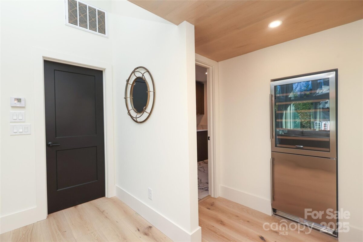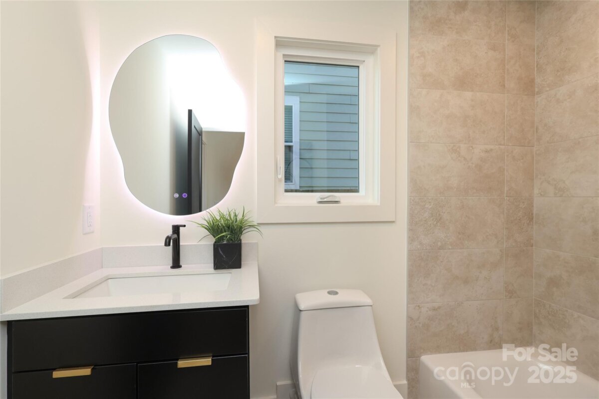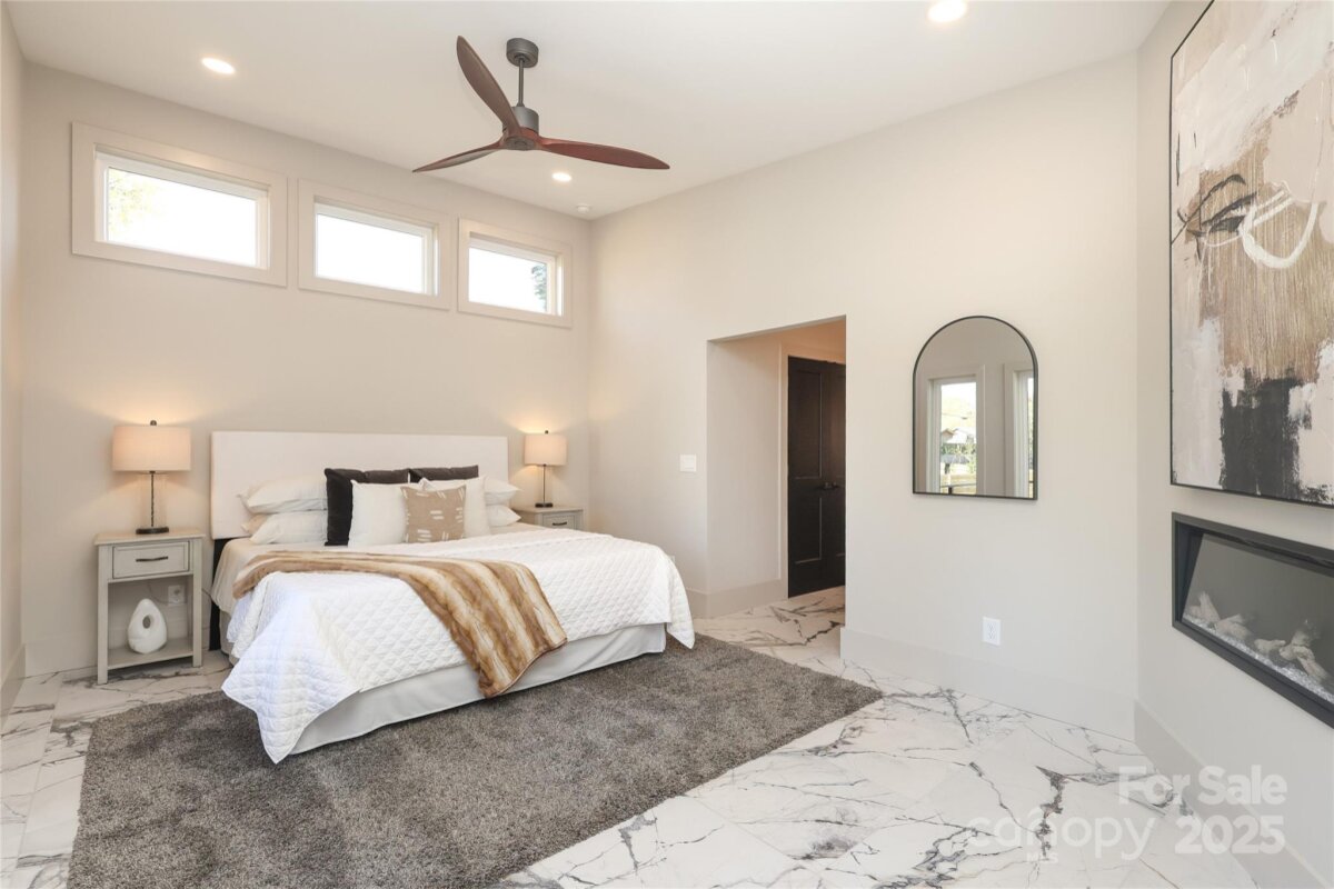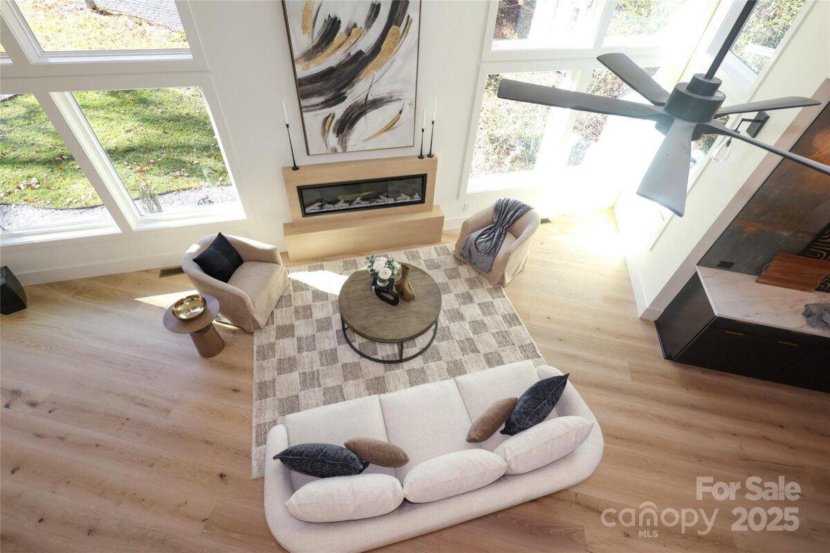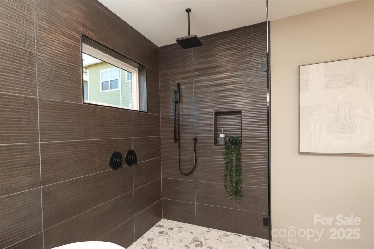 ARCHITECTURAL SANCTUARY ON THE CREEK • ULTRA-MODERN CUSTOM BUILD • VILLA HEIGHTS Discover true privacy and architectural significance in Villa Heights. Tucked back from the street alongside a year-round creek (non-flood zone), this residence offers a serene, nature-immersed experience just minutes from Uptown. The exterior makes an immediate statement with its striking "triple-roof" profile, deep overhanging soffits, standing seam metal roofing, and warm cedar accents that blend sophisticated modernism with the natural landscape. The interior is a masterclass in calm luxury. Massive windows flood the open floor plan with natural light, highlighting matte finishes and intentional sightlines. The space is anchored by a true architectural centerpiece: a custom floating staircase with powder-coated steel railings. The chef’s galley kitchen balances function and style, featuring sleek quartz surfaces, a walk-in pantry, and a premium black stainless appliance suite (beverage cooler included). The seller is offering a $5,000 allowance for a refrigerator and/or custom closet systems to complete your vision. The primary suite rivals a boutique hotel, featuring the home’s second electric fireplace and a show-stopping "Wet Room" ensuite with a zero-entry rain shower and soaking tub. Upstairs features a second full suite and a dedicated media loft, while the sun-filled front bedroom on the main level serves as an ideal home office. Outdoor living is where this property truly shines. Side and rear decks overlook the creek, providing a lush, green backdrop and the soothing sound of running water—a complete escape from city noise. Enjoy the rare luxury of a deep yard, ample off-street parking, and a location that is just steps from the Blue Line Light Rail, Cordelia Park, and the vibrant breweries of NoDa. Located less than 3 miles from Uptown Charlotte, this is the perfect blend of modern architecture and nature. Welcome home.