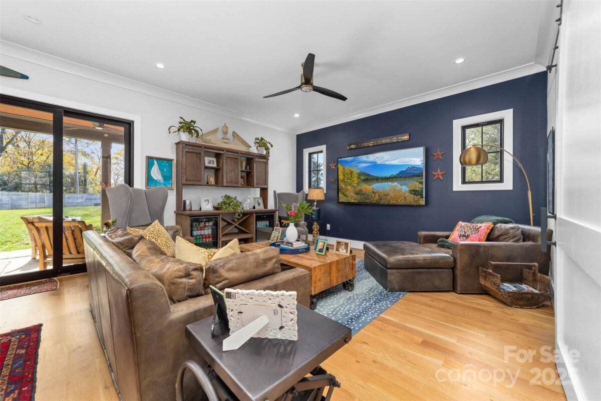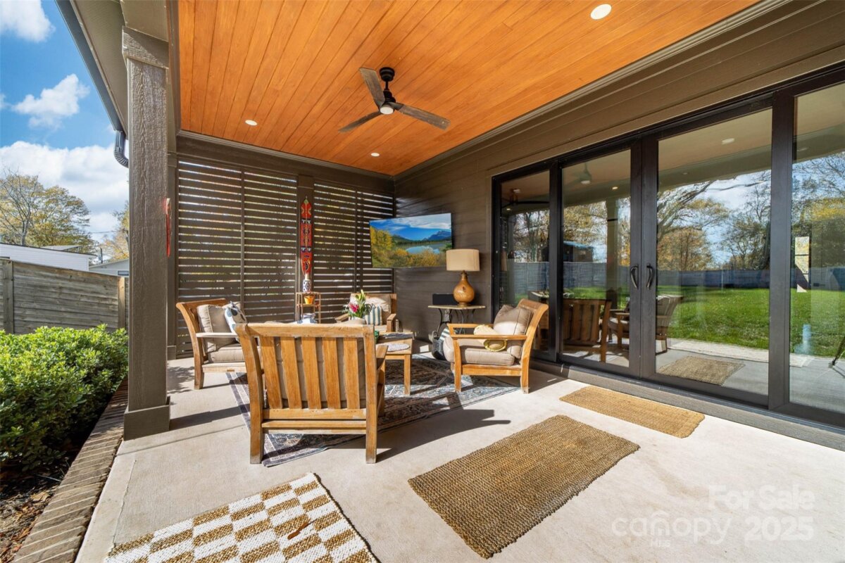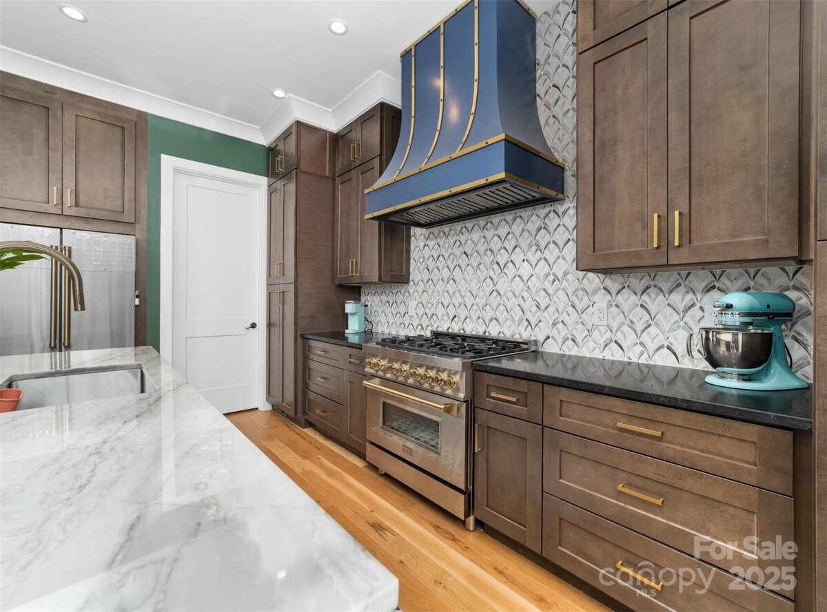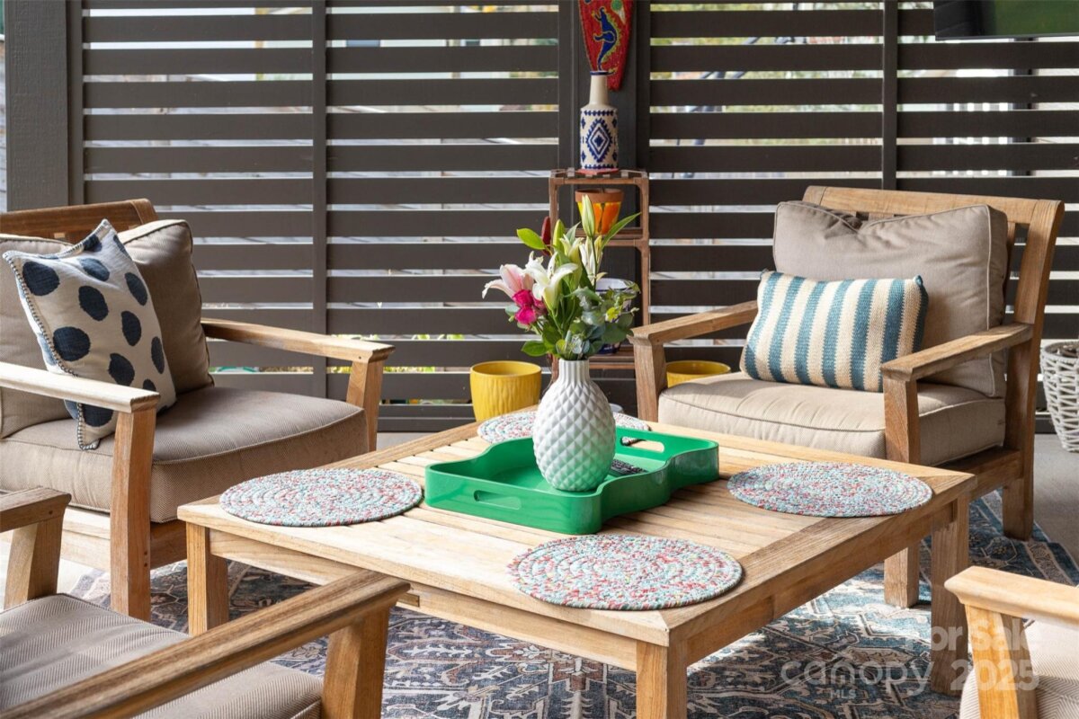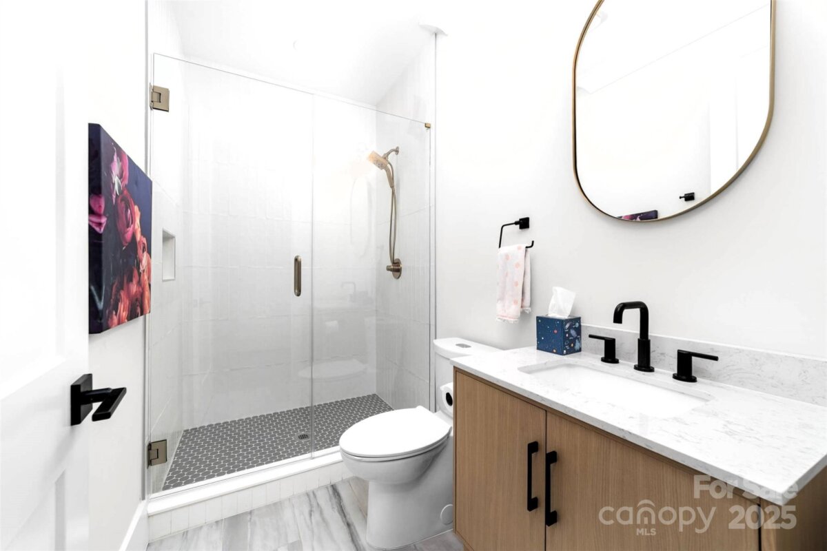 Custom built home by Carolina Serenity Homes that blends upscale design with modern comfort. You will be greeted with a large covered front porch at this stunning 5 bedroom, 4 bath home. Features include an open concept layout flooded with natural light. The main level offers a wet bar, gourmet kitchen, walk in pantry/prep area, dining area, family room, flex space/office, mud room, full bathroom and a bedroom/study. A chef's dream with this gourmet kitchen that features a walk in pantry/prep area, custom hood, 36 inch duel fuel range, oversized kitchen island with quartz countertops and premium stainless steel appliances. Located off the den is a private flex space that can be utilized as an office or study area. The bedroom on the main level has an ensuite bathroom. This bedroom is versatile and can also be used as an office or playroom. Don't miss the hidden play area located in the closet underneath the stairs! Upstairs you will find 4 additional bedrooms with custom designed closets. Retreat to the luxurious primary bedroom which features a large ensuite bathroom and closet/dressing room. The spa inspired primary bathroom has a large soaking tub, oversized shower, dual vanities and an adjoining closet/dressing room. In the closet/dressing room you will find custom built shelves and room for a vanity. This thoughtfully designed home has the laundry room adjoining to the primary closet/dressing room. Two additional bedrooms upstairs share a bathroom with a separate water closet and tub. An additional bedroom upstairs can be utilized as a bonus room as well. Outside you can catch glimpses of the city skyline from the private fenced backyard or covered back porch. Quality craftsmanship shows throughout the home with hardwood floors, custom tile and cedar accents. There is spacious room for entertaining in this home and ample parking for guests as the driveway can accommodate several cars. This home delivers high end living in Villa Heights, one of Charlotte's most vibrant neighborhoods. Close to Optimist Hall, NoDa, Cordelia Park, Uptown and the light rail. No HOA or restrictions for short term rental