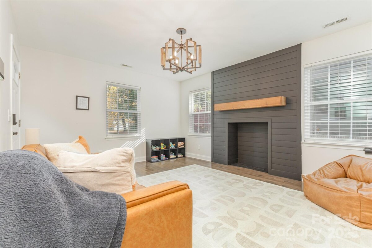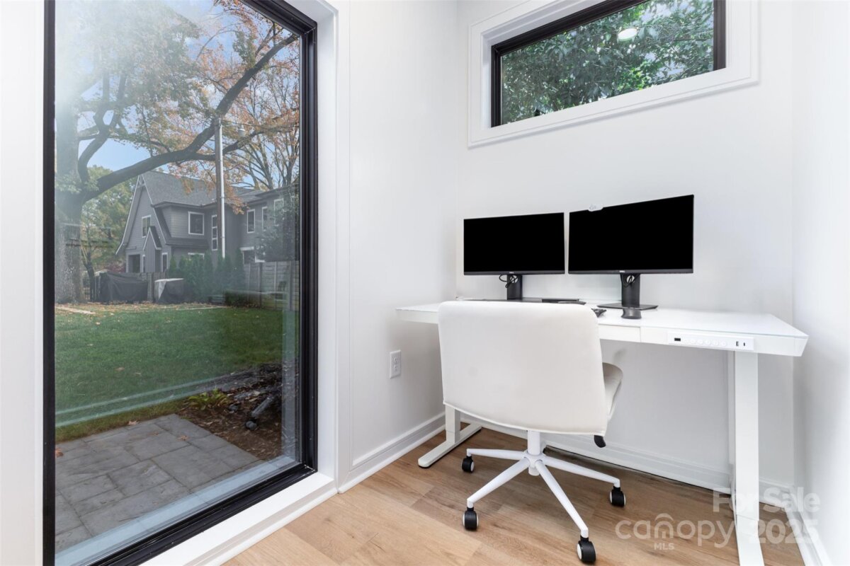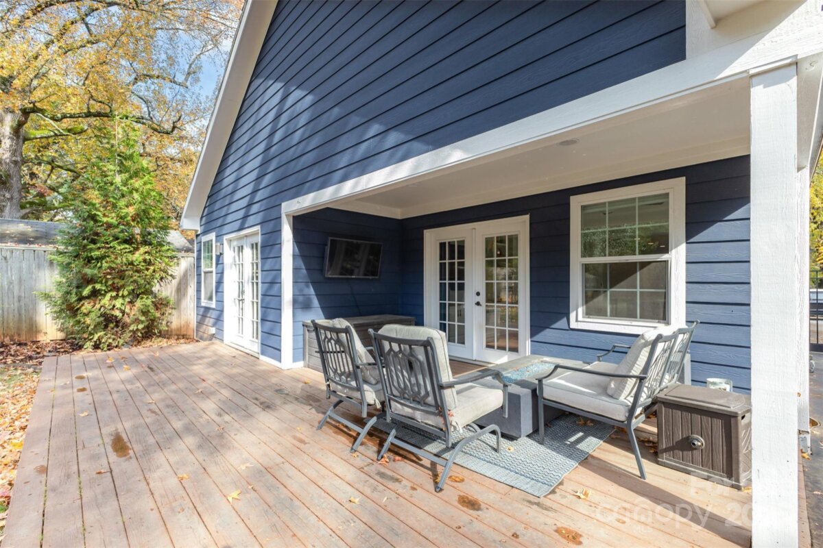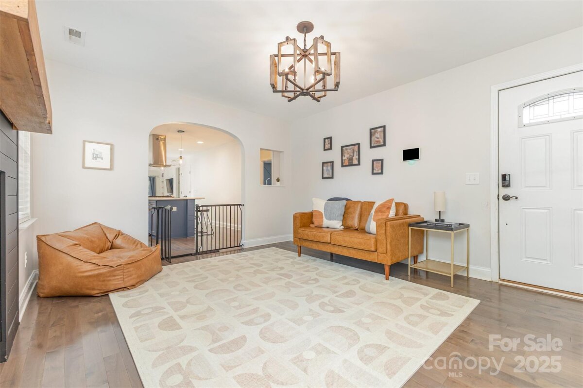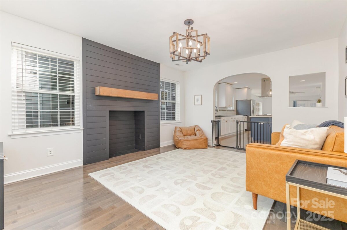 Welcome to this beautifully updated home in the heart of NoDa! Remodeled in 2016, this home blends classic charm with modern design. You'll love the professional exterior painting that was completed in 2024, and the automatic gate across the driveway for added privacy. Enjoy an open floor plan with 10’ tray ceilings, custom built-ins in the living room, a wet bar, and a chef’s kitchen featuring an 8’ island—perfect for entertaining. The inviting front flex room with faux fireplace and hardwoods sets the tone for the home’s warmth and style. The light-filled primary suite offers a walk-in closet and a spa-like en-suite with soaking tub and oversized shower. Two additional bedrooms share a Jack-and-Jill bath, plus a separate half bath for guests. Out back, you'll find a covered patio and a spacious, flat yard. A $94,000 custom-built 335 sq ft outdoor gym/office/ flex space with seamless CAT6 wiring and a dedicated WiFi network brings next-level functionality and connectivity. Convenient additional finished storage is attached to this flex space. Just steps from local favorites, shops, dining, and the light rail—this NoDa home truly has it all!