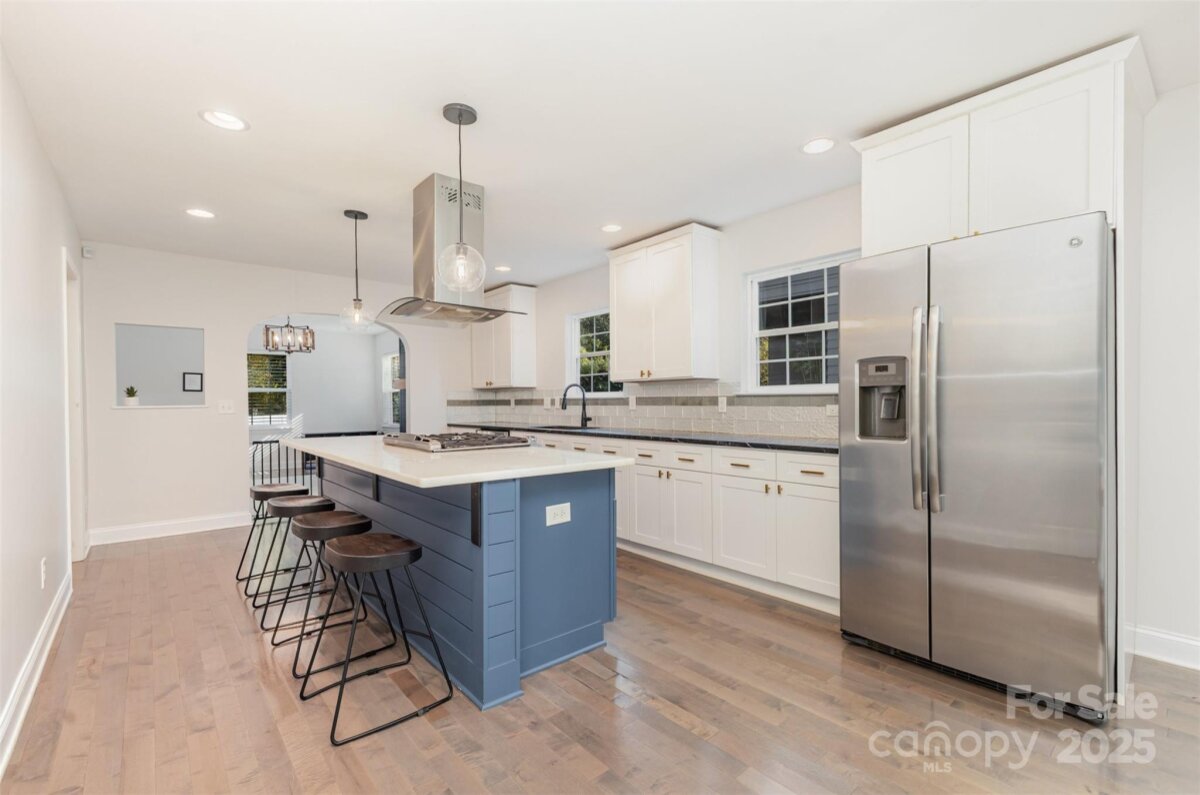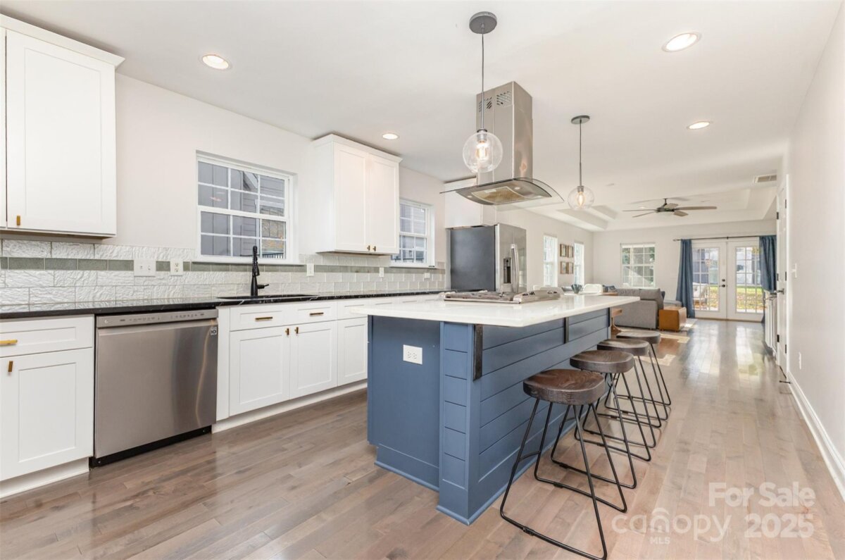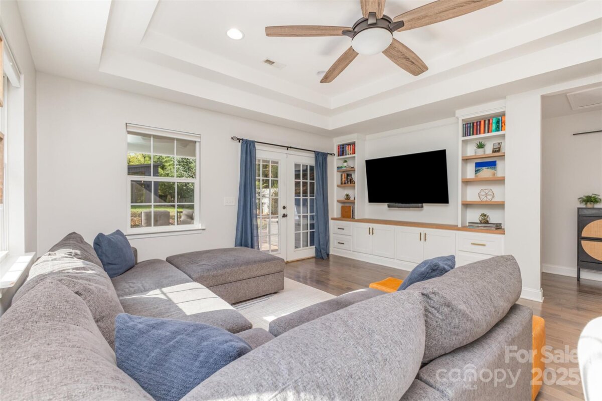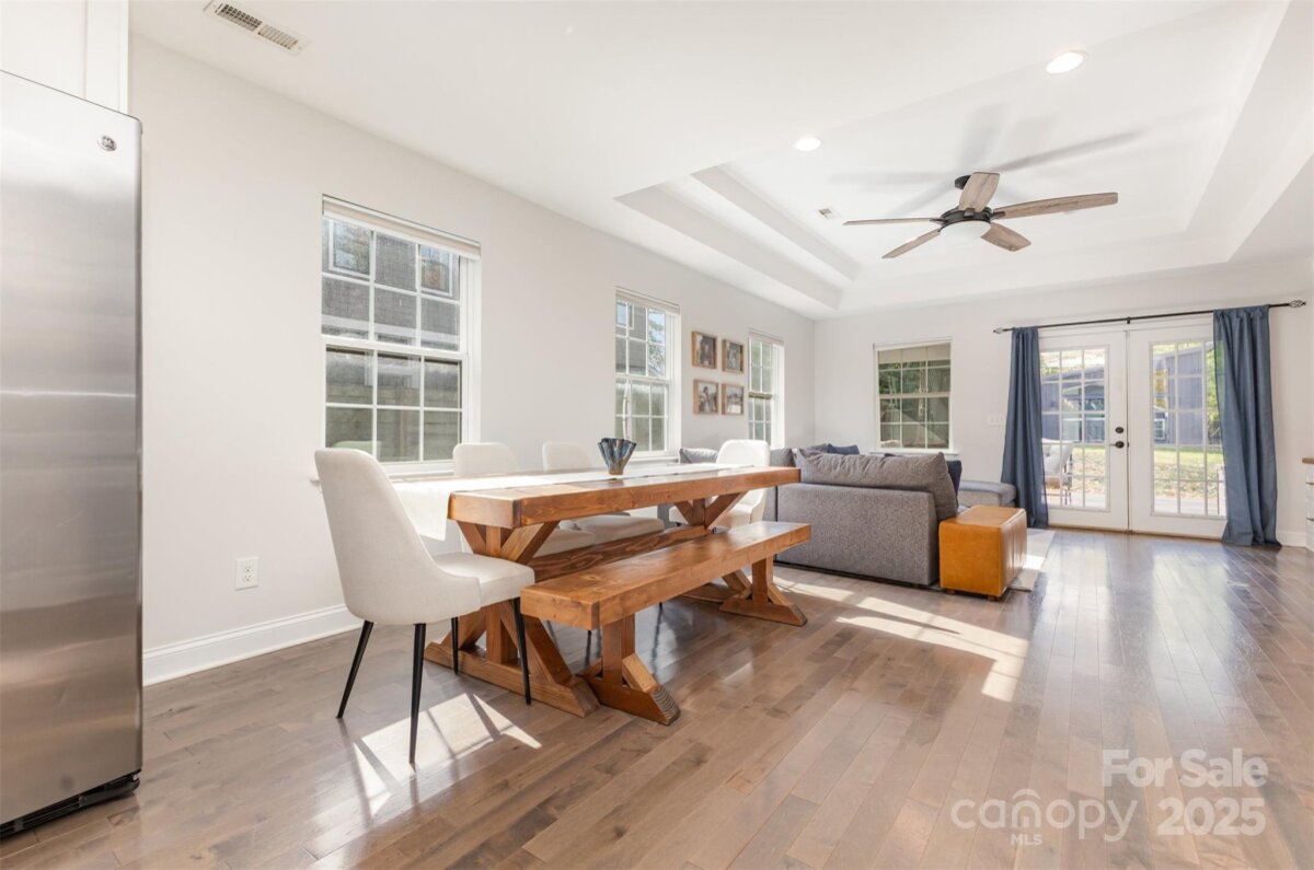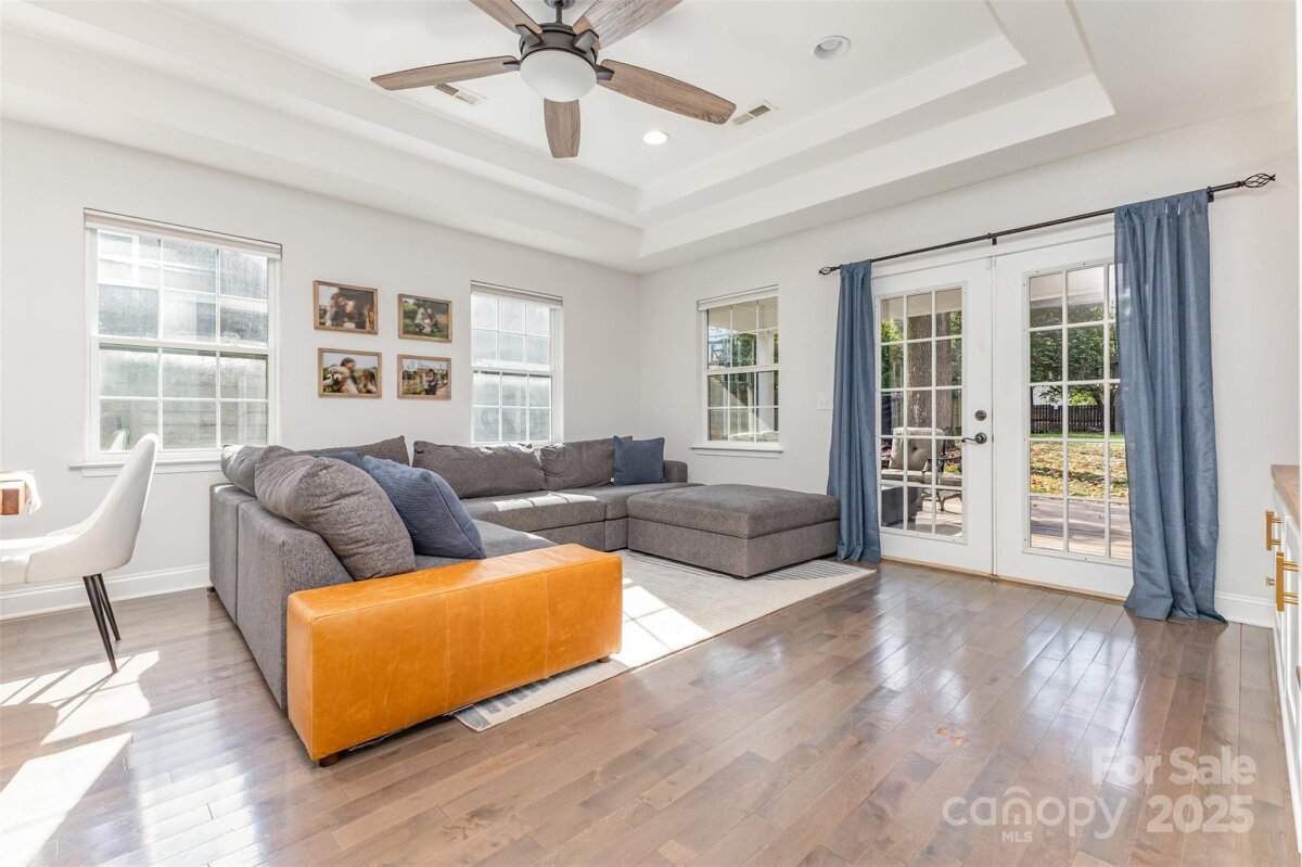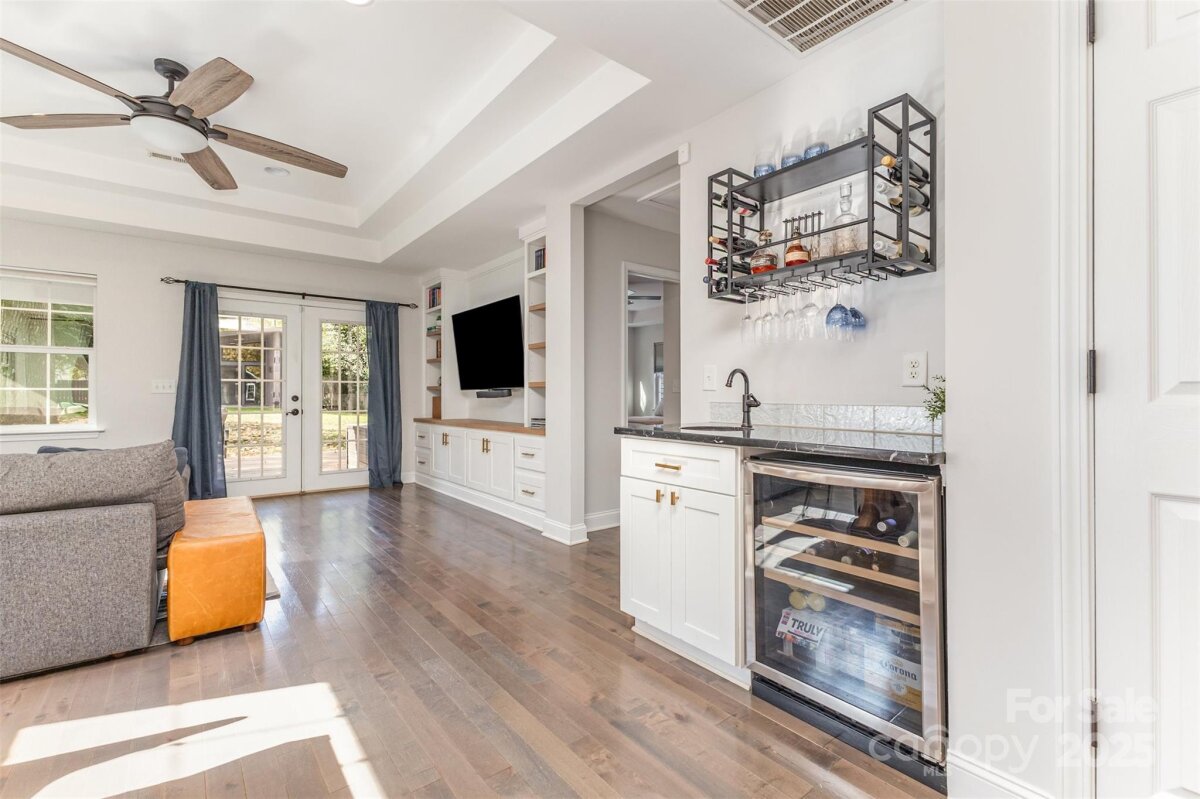 Welcome to this beautifully updated home in the heart of NoDa! Remodeled in 2016, this home blends classic charm with modern design. You'll love the professional exterior painting that was completed in 2024, and the automatic gate across the driveway for added privacy. Enjoy an open floor plan with 10’ tray ceilings, custom built-ins in the living room, a wet bar, and a chef’s kitchen featuring an 8’ island—perfect for entertaining. The inviting front flex room with faux fireplace and hardwoods sets the tone for the home’s warmth and style. The light-filled primary suite offers a walk-in closet and a spa-like en-suite with soaking tub and oversized shower. Two additional bedrooms share a Jack-and-Jill bath, plus a separate half bath for guests. Out back, you'll find a covered patio and a spacious, flat yard. A $94,000 custom-built 335 sq ft outdoor gym/office/ flex space with seamless CAT6 wiring and a dedicated WiFi network brings next-level functionality and connectivity. Convenient additional finished storage is attached to this flex space. Just steps from local favorites, shops, dining, and the light rail—this NoDa home truly has it all!