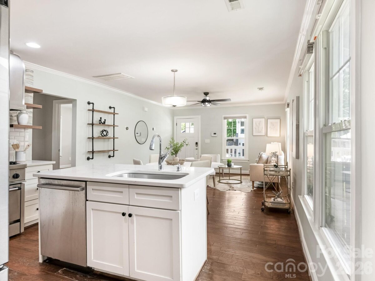 Welcome to this beautifully updated bungalow in the highly sought-after Belmont neighborhood. A spacious, covered front porch sets a warm and inviting tone as you enter the home. Inside, you’ll find an open-concept layout with generous space for living, dining, and entertaining. The updated kitchen is a standout feature, complete with a premium Thermador range, crisp white cabinetry, classic stone countertops, a large eat-in island, and stylish faux copper backsplash and stainless steel appliances. The primary suite offers a relaxing retreat with a large walk-in closet and a spa-inspired bathroom featuring dual vanities, an oversized shower, and elegant updated tilework. Secondary bedrooms are generously sized and include ample closet space. Adding even more versatility, two detached bonus rooms provide endless possibilities - perfect for a home office, gym, studio, or additional storage. This home combines charm, functionality, and modern updates in one of the area’s most desirable locations.