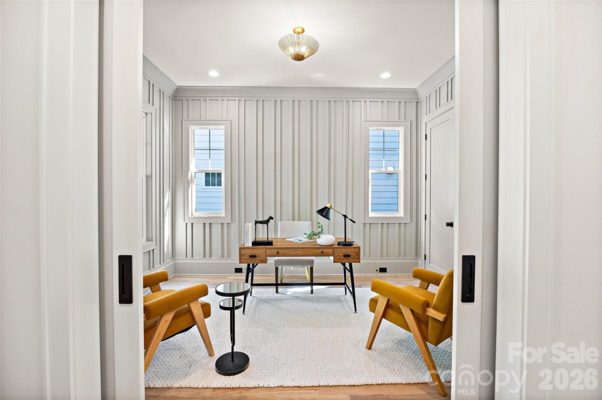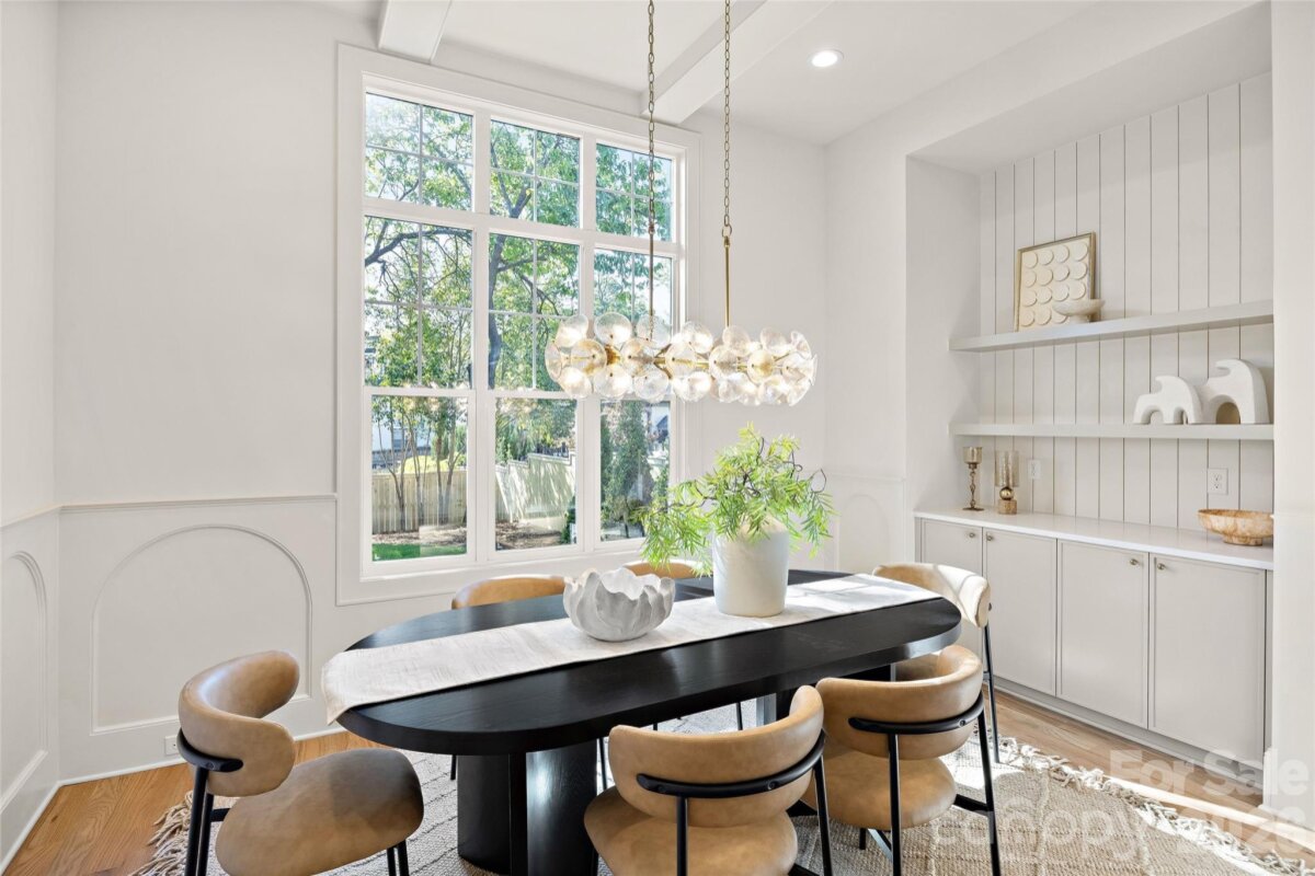 Luxury new construction by esteemed Alenky Signature Homes in the heart of Plaza Midwood. This thoughtfully designed residence offers approximately 3,644 square feet with 4 bedrooms plus a flexible 5th bedroom or study and 3.5 baths, blending timeless architecture such as cedar corbels and custom cedar wood garage door with elevated modern finishes throughout. A welcoming entry introduces refined details including arched openings, custom wall trim, and site-finished hardwood floors. The open-concept layout is ideal for both everyday living and entertaining, anchored by a designer kitchen featuring premium JennAir appliances, custom cabinetry, oversized island, and seamless connection to an expansive scullery with additional sink, dishwasher, refrigerator, and a clever pass-through counter to the drop zone to the scullery - allowing for easy unloading of groceries and perfect for hosting with ease. A thoughtfully designed drop zone with built-in seating adds everyday functionality with style. The living room is a true showpiece with custom built-ins, a fireplace with cast stone façade, and a striking coffered ceiling. The dining room impresses with arched judge’s paneling and a built-in dry bar, creating a sophisticated setting for gatherings large and small. A set of retracting glass doors allow the living spaces to flow effortlessly outdoors to a covered porch with fireplace, offering year-round enjoyment and access to the beautiful and gracious fenced rear yard. The primary suite is a private retreat featuring a spa-inspired bath with oversized curbless shower, soaking tub, double vanities, and a custom walk-in closet. Each secondary bedroom enjoys direct access to a bathroom, ensuring comfort and privacy throughout. Exceptional construction highlights include a brick veneer exterior, architectural roof, sealed conditioned crawlspace, poured concrete driveway, energy-efficient systems, tankless water heater, high-performance HVAC, LED lighting, Cat6 wiring, and EV-charging pre-wire—reflecting both quality craftsmanship and forward-thinking design. Perfectly situated on a prime Plaza Midwood lot just moments from neighborhood restaurants, breweries, parks, shops, and schools, this is a rare opportunity to secure a luxury home by one of Charlotte’s most respected builders in one of the city’s most vibrant neighborhoods.