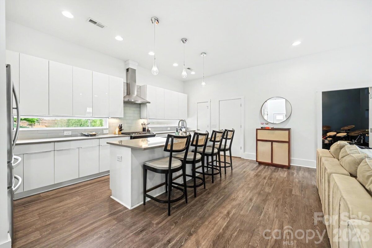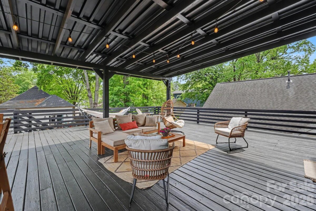 Welcome to 1704 Pegram, a modern standalone home in a prime Charlotte location! The main level is bright and open, centered around a beautiful white kitchen with a large island, tons of cabinet space, and an easy flow into the living area. A main level bedroom with a full bath is perfect for guests, and a private flex room works beautifully as a home office, gym, or playroom. Upstairs, you will find a secondary bedroom filled with natural light, along with updated bathrooms throughout. The landing features double nooks that are ideal for a desk setup or a cozy reading spot. The primary suite is a true retreat with plenty of space and direct access to a large private deck — perfect for morning coffee, evening drinks, or soaking up some sun. Outside, the fully fenced backyard offers a great grass area and a lower deck ideal for outdoor dining, entertaining, or simply unwinding. Whether you are hosting a crowd or enjoying a quiet night in, this outdoor space truly delivers. Additional highlights include an attached two car garage with side entry, a privacy fence, and no HOA. Major updates include a new roof in 2024 and a new HVAC in 2023. Refrigerator, washer, and dryer are all included, so it is move-in ready. The location really cannot be beat. You are less than a mile to Optimist Hall, Plaza Midwood, and just minutes to NoDa and Uptown. Sidewalk-lined streets make it easy to get out and enjoy everything nearby!