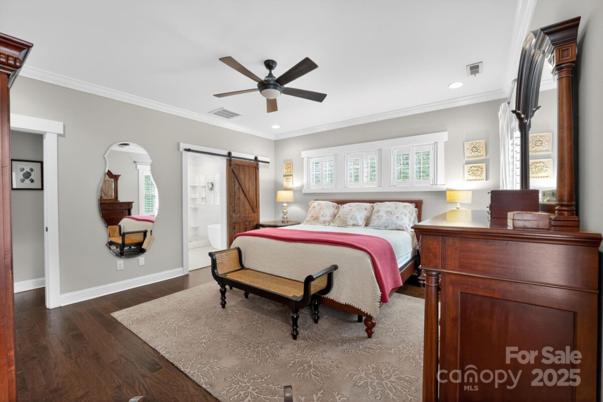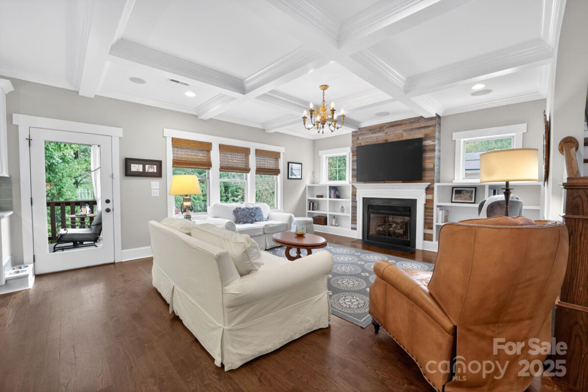 Nestled in the heart of one of Charlotte's most cherished historic neighborhoods, this home offers exquisite detailing throughout with an expansive & welcoming front porch, gracious light filled open & flowing spaces, judges paneling, coffered ceilings, archways, and hardwood floors throughout the entire home. This home has been featured on the Plaza Midwood Home & Garden tour. Kitchen offers shaker cabinets topped with quartz counters/SS appliances and farm sink, and an island with built in beverage fridge. Built in custom dog bowl and hidden nook under the stairs, perfect for furry friends or little ones! Living room features gas fireplace. Master has large closet & spa bath w/free standing tub/oversized shower/double quartz topped vanity, Oversized attached garage, and incredible back patio space with TV and built in grill, fully fenced in front yard and privacy fence in the back. Right next to Midwood park, and an easy stroll to all that vibrant Plaza Midwood has to offer!