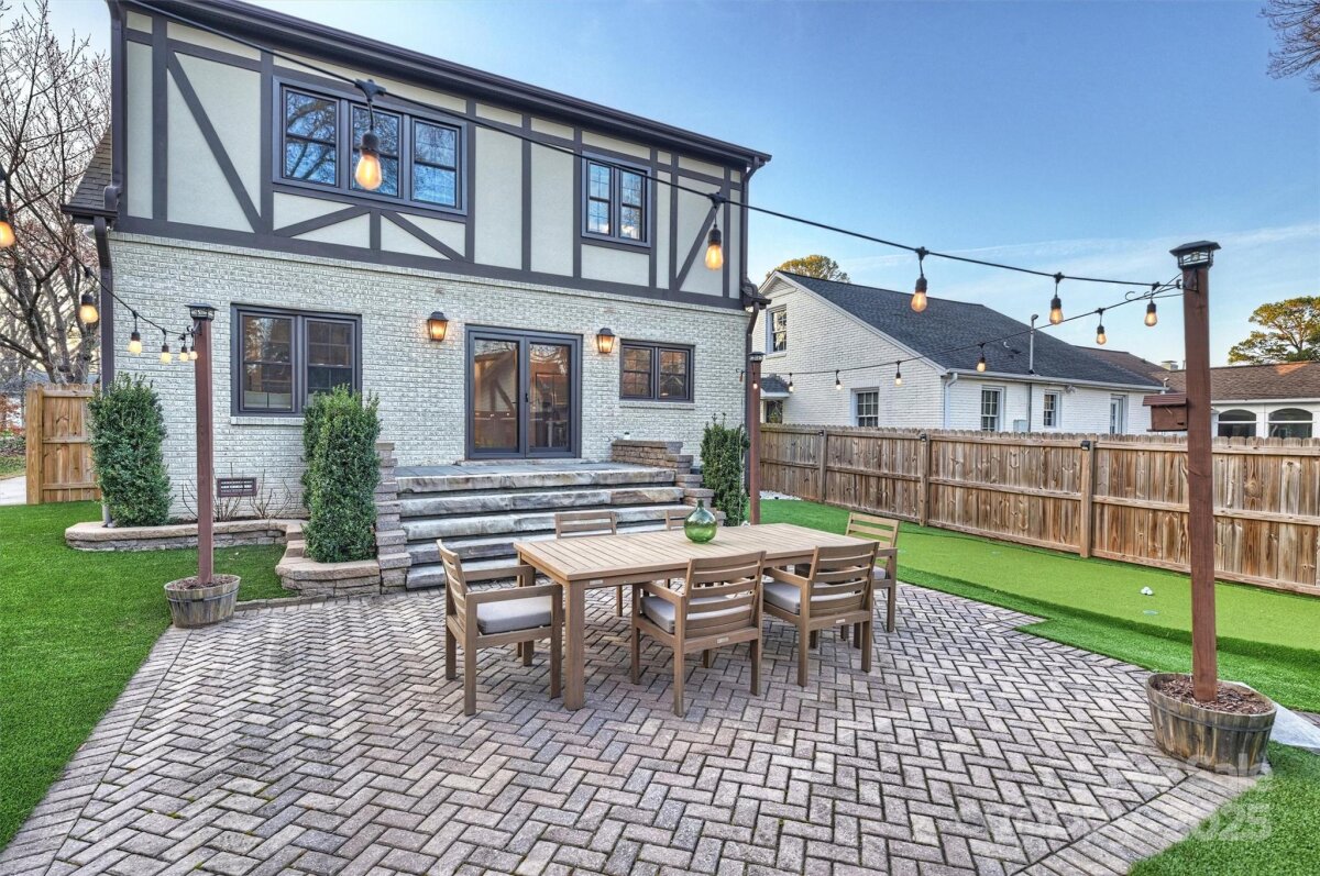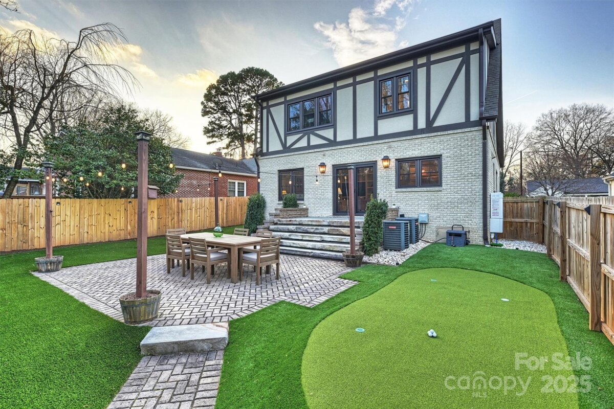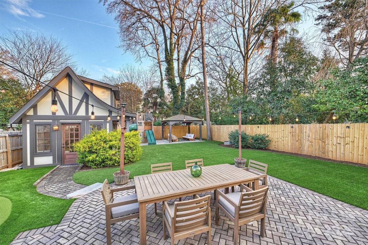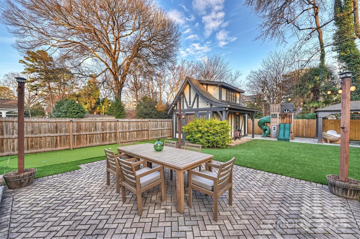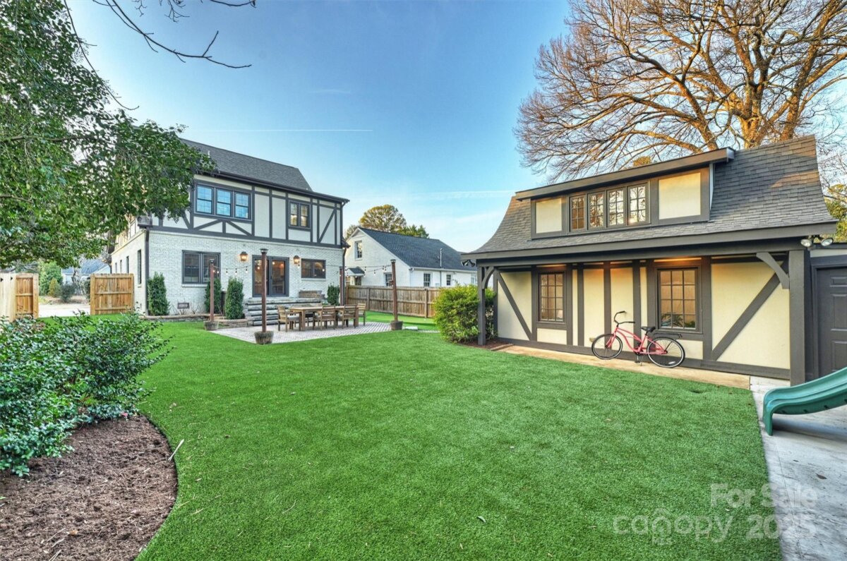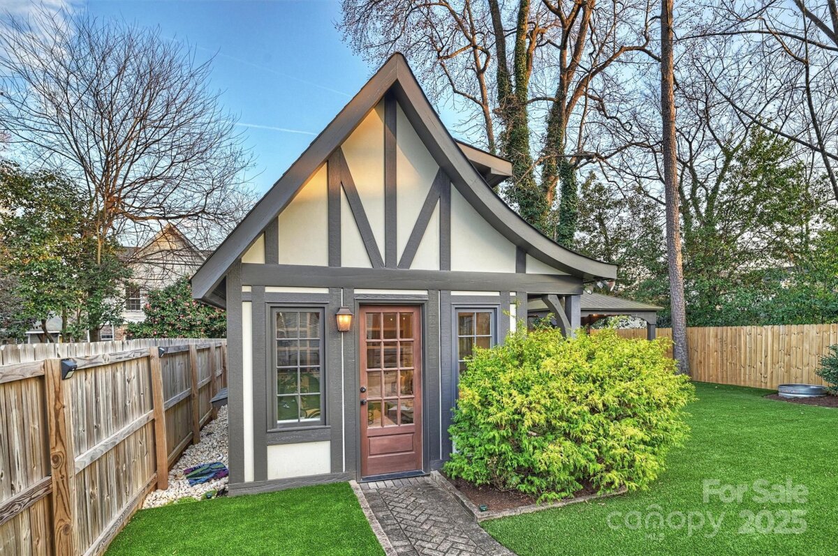 Set on one of Plaza Midwood’s charming sidewalk-lined streets, this classic 1948 Tudor blends enduring architectural charm with thoughtful, high-end updates. Inside, original character shines through 9-foot ceilings, hardwood floors throughout, graceful arched openings, detailed moldings, and an abundance of natural light. The main level offers a beautifully balanced layout with a cozy living and dining rooms, family room with tons of windows, custom built-in and off the kitchen. With a full bath and bedroom down, this is a versatile main-level room perfect for guests, home office, or playroom. The heart of the home is the kitchen—both functional and inviting—featuring custom cabinetry, honed black granite countertops, a generous wooden butcher-block island, new light & plumbing fixtures, and a 48" commercial-style gas range. The kitchen flows seamlessly into a spacious family room, creating a natural gathering place for everyday life and entertaining. Upstairs, the generous primary suite offers a peaceful retreat with hardwood floors, a walk-in closet, and a well-appointed bath featuring marble countertops, a pedestal soaking tub, and glass shower. Two additional bedrooms with new custom closets, a Jack/Jill full bath, and a conveniently located laundry complete the upper level. Outdoors, the private rear yard has been thoughtfully redesigned to create a serene extension of the home: new turf grass, a gazebo wired with string lights, new 6ft wooden privacy fence, gorgeous natural stone steps, a large paver patio—perfect for quiet evenings, playtime, or hosting friends. A charming detached cottage provides 240 additional heated square feet, ideal for a home office, creative studio, or flexible bonus space. The ADU has hardwood floors, vaulted ceilings and custom-built desk/bookshelves. Well maintained and rich in character, this home offers a rare opportunity to enjoy timeless architecture, functional living spaces, and walkable access to Plaza Midwood’s beloved breweries, coffee shops, dining, and Midwood Park —an exceptional setting for those drawn to the energy and community of this iconic neighborhood. *Open House Sat. 1/10 from 11am-1pm*