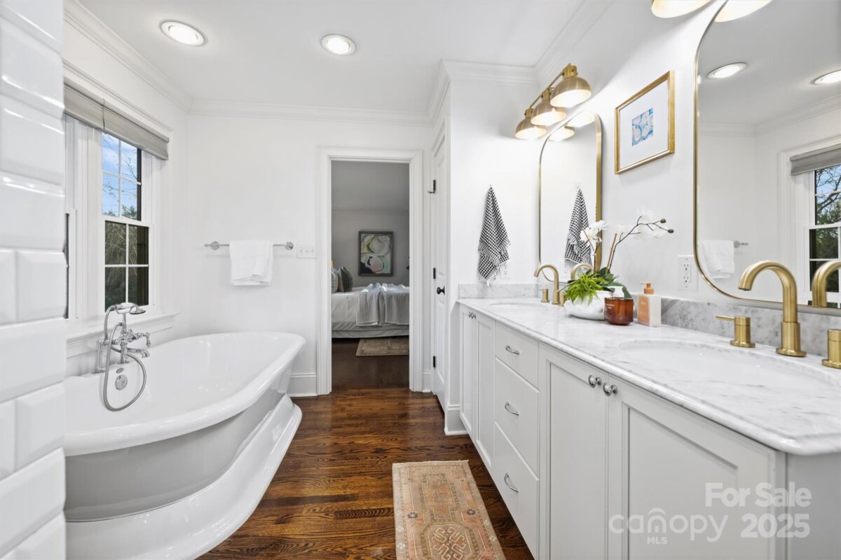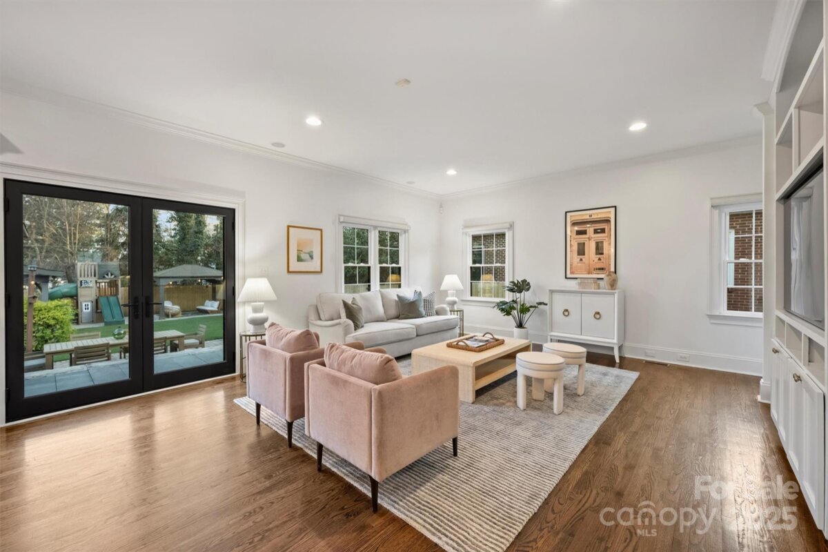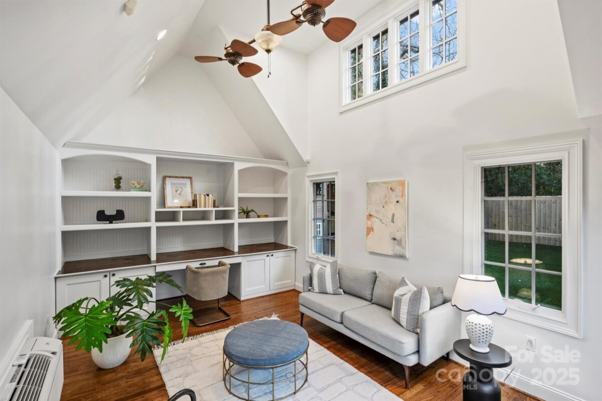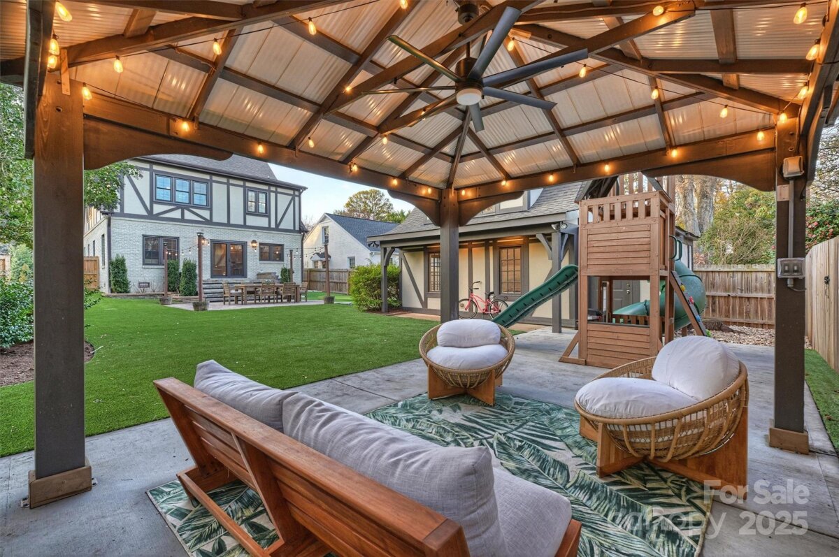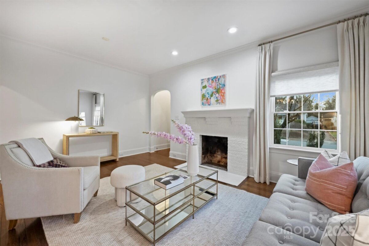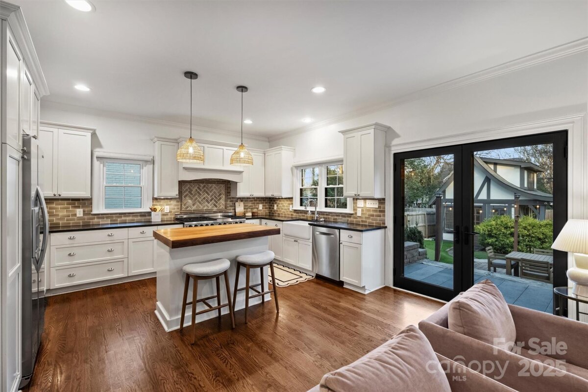 Set on one of Plaza Midwood’s charming sidewalk-lined streets, this classic 1948 Tudor blends enduring architectural charm with thoughtful, high-end updates. Inside, original character shines through 9-foot ceilings, hardwood floors throughout, graceful arched openings, detailed moldings, and an abundance of natural light. The main level offers a beautifully balanced layout with a cozy living and dining rooms, family room with tons of windows, custom built-in and off the kitchen. With a full bath and bedroom down, this is a versatile main-level room perfect for guests, home office, or playroom. The heart of the home is the kitchen—both functional and inviting—featuring custom cabinetry, honed black granite countertops, a generous wooden butcher-block island, new light & plumbing fixtures, and a 48" commercial-style gas range. The kitchen flows seamlessly into a spacious family room, creating a natural gathering place for everyday life and entertaining. Upstairs, the generous primary suite offers a peaceful retreat with hardwood floors, a walk-in closet, and a well-appointed bath featuring marble countertops, a pedestal soaking tub, and glass shower. Two additional bedrooms with new custom closets, a Jack/Jill full bath, and a conveniently located laundry complete the upper level. Outdoors, the private rear yard has been thoughtfully redesigned to create a serene extension of the home: new turf grass, a gazebo wired with string lights, new 6ft wooden privacy fence, gorgeous natural stone steps, a large paver patio—perfect for quiet evenings, playtime, or hosting friends. A charming detached cottage provides 240 additional heated square feet, ideal for a home office, creative studio, or flexible bonus space. The ADU has hardwood floors, vaulted ceilings and custom-built desk/bookshelves. Well maintained and rich in character, this home offers a rare opportunity to enjoy timeless architecture, functional living spaces, and walkable access to Plaza Midwood’s beloved breweries, coffee shops, dining, and Midwood Park —an exceptional setting for those drawn to the energy and community of this iconic neighborhood. *Open House Sat. 1/10 from 11am-1pm*