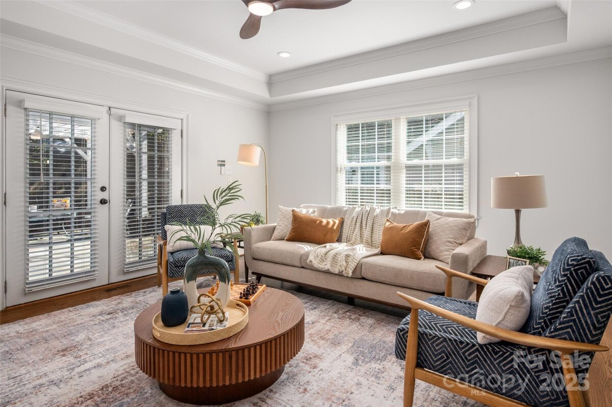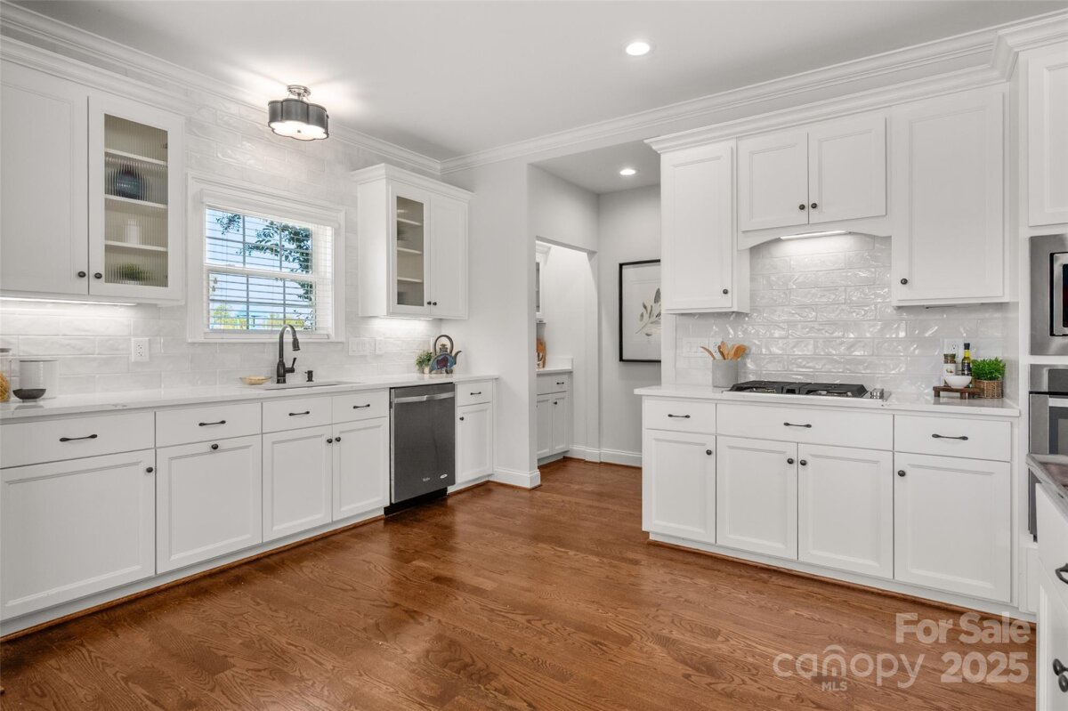 Price Improvement! Beautifully updated home nestled in the heart of sought-after Villa Heights! From the moment you step in, soaring 9' ceilings and rich hardwood floors welcome you into a space that feels both stylish and warm. The interior is freshly painted adding brightness throughout. The stunning kitchen is complete with wet bar, new quartz countertops and a brand-new gas range & wine cooler — ready for your lively dinner parties. The low-maintenance backyard consists of a slate patio & pergola - a nice retreat for relaxing outside with a good book or for entertaining your guests under the stars. Upstairs all 4 bedrooms are generously sized - 3 with ensuite baths. The completely renovated primary suite bath is designed for total comfort. Good storage is available in the garage. Tankless water heater. With a walkability score of 7/10, you have unbeatable access to the 25th St Light Rail Station & Cordelia Park. Nearby are your favorite local hot spots: The Hobbyist, Rhino Market, Summit Coffee, Optimist Hall & all the energy the NoDa Arts District has to offer! Take a Virtual Tour https://www.youtube.com/watch?v=X57knDuKUFE.