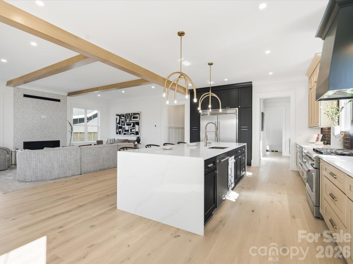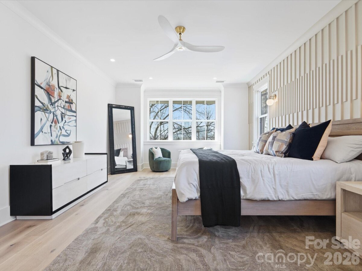Impeccable and chic, this new-build Charlotte residence is the epitome of modern elegance! Experience, thoughtful design, combined with luxury living in this stunning home. Upon entry into your 2 story 23 foot grand foyer, you will discover a sophisticated 4-bedroom, 4-bath interior complete with tall ceilings/doors and custom millwork throughout. Undoubtedly The 1st thing you will notice in the drop zone is your complete doggy day spa. Show off your skills in the entertainer’s kitchen, featuring a massive multi-seater quartz waterfall island, high-end stainless steel appliances, custom range hood, and beverage fridge. Off the main kitchen your skullery and walk in pantry hide all of your necessities including a stand-alone icemaker, stunning leathered granite and custom built open shelving. In the light and bright main living area the heart of the home boasts custom white oak beam ceilings, gorgeous 7.25 inch white oak engineered hardwood floors that are throughout the whole house, accordion style sliding doors to your covered screened porch which allows a seamless flow from the warmth of the living room’s sleek linear gas fireplace to the chandelier-lit dining area. Among the comfortable bedrooms, the primary suite steals the show with a sun-soaked soaking tub area, breathtaking custom walk-in closet, and spa-like ensuite showcasing a rainfall shower with city skyline views. With a screened-in porch and 8 foot tall fully fenced yard, you’ll have plenty of privacy and space for outdoor celebrations while enjoying the Charlotte skyline views. Premium perks include a versatile office/BR with its own full bath, 2nd floor loft area perfect for a secondary office space or play area, and an attached 2-car garage with epoxy floors, this home offers unmatched sophistication, and comfort. Come take a tour of this Iconic Builders home before it’s too late!
