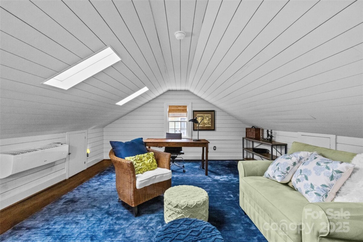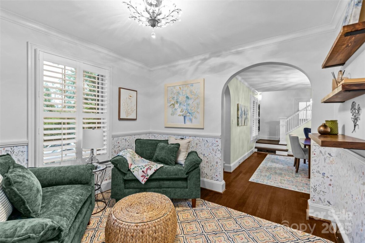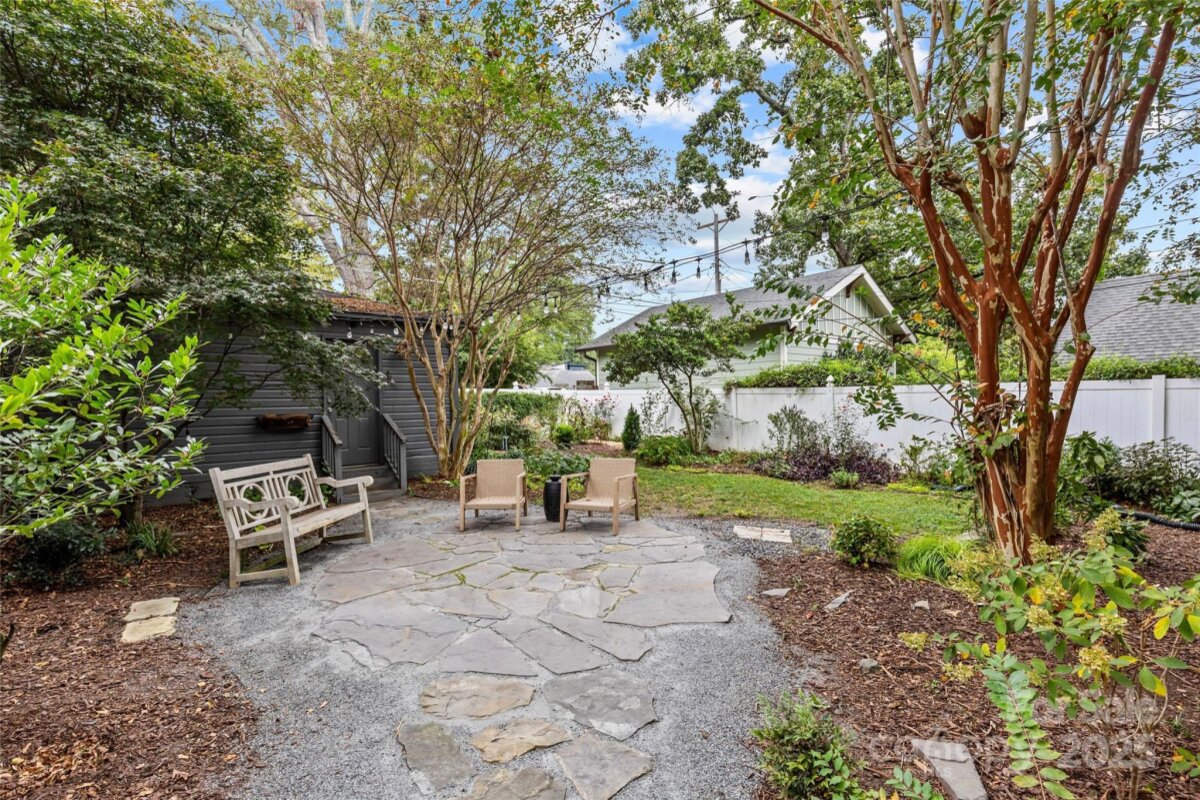 Welcome to the most enchanting cottage in the heart of Plaza Midwood! Overflowing with character, this home effortlessly blends timeless details—like real movable wood shutters and classic arched openings—with thoughtful modern updates, including replaced double-hung windows, a GE Monogram gas stove and the most charming garden. The open floor plan makes entertaining a delight, anchored by two cozy fireplaces and complemented by both formal dining and living rooms. The kitchen shines with updated quartz counters and a farmhouse sink, pairing classic style with modern function. Upstairs, the loft-style suite offers a dreamy retreat—perfect for guests, a creative studio, or a quiet work-from-home escape. Outdoors, the storybook front porch sets the stage for lazy mornings with coffee, while the mature, landscaped garden in the backyard provides a lush private oasis for relaxing or entertaining. Practicality meets charm with a highly coveted garage—an uncommon luxury in Midwood. Nestled on one of the neighborhood’s most beloved streets and just half a mile from Midwood Park, this home offers an ideal balance of historic character, modern comfort, and everyday convenience. Please note: less than 50% of the upstairs finished conditioned space (346 SF) falls below 7' height.