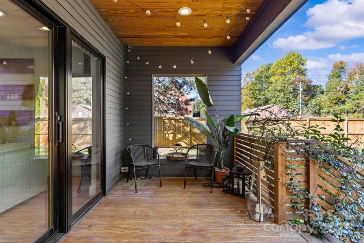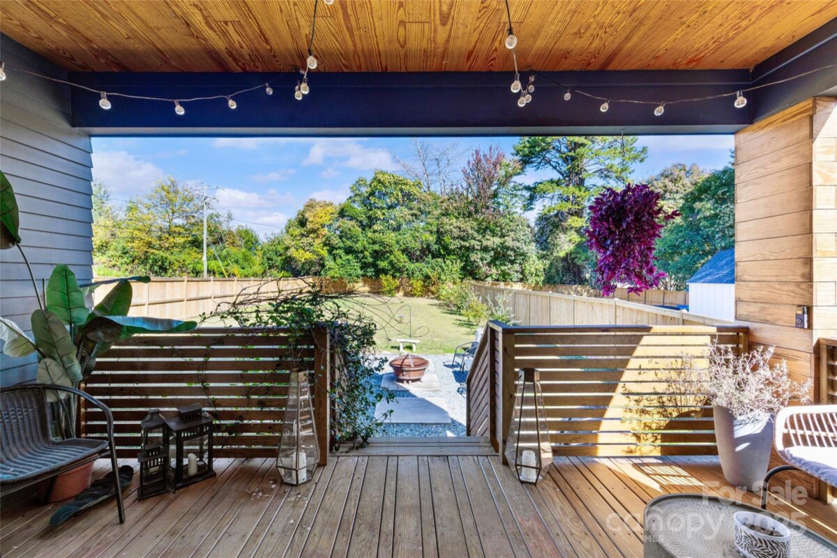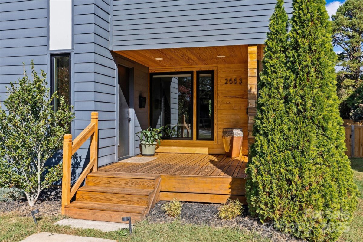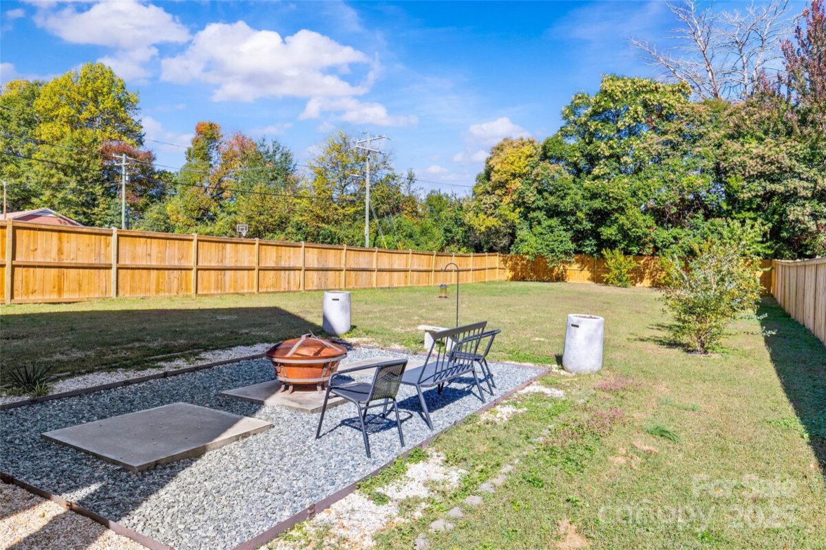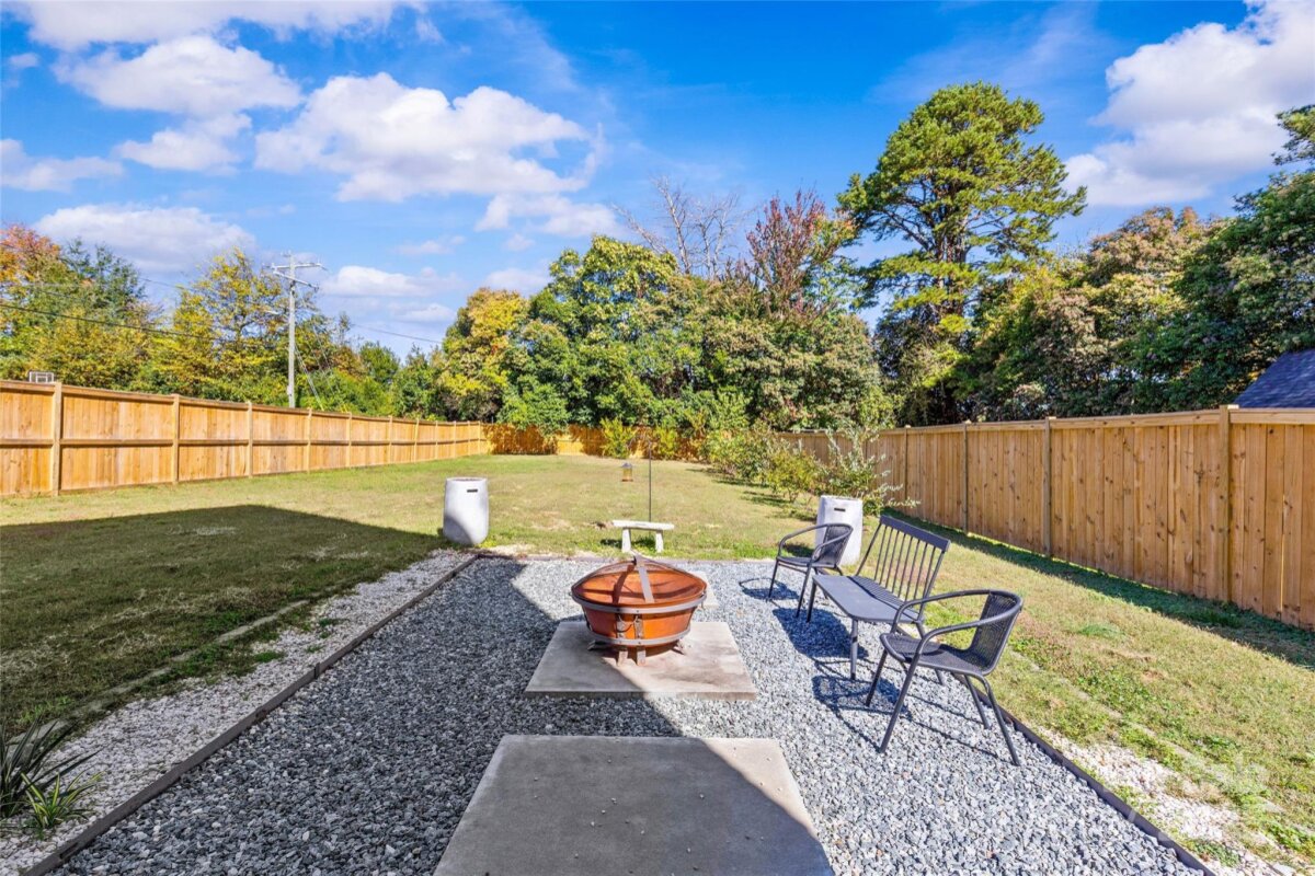 Modern Farmhouse Chic in 28205! Welcome to 2553 Elkwood Avenue, where soaring ceilings and beautiful finishes make an immediate impression. Natural light floods the open-concept main floor, designed with effortless entertaining in mind. The kitchen features a striking statement island with contrast cabinetry and flows seamlessly into the spacious living room, complete with built-ins and extra storage. A half bathroom completes the first floor. Upstairs, the generous primary suite offers excellent closet space and an ensuite bath with a contemporary tiled shower. Two additional bedrooms and another stylish full bath complete the second floor. Step outside to enjoy the covered back porch and stone patio with a firepit. The large backyard is a true urban oasis, highlighted by fruit-bearing trees and bushes including peaches, persimmons, blueberries and more. A Juliet balcony overlooks the serene outdoor space. Located just minutes from Plaza Midwood, NoDa, and local favorites like Lang Van — welcome home!