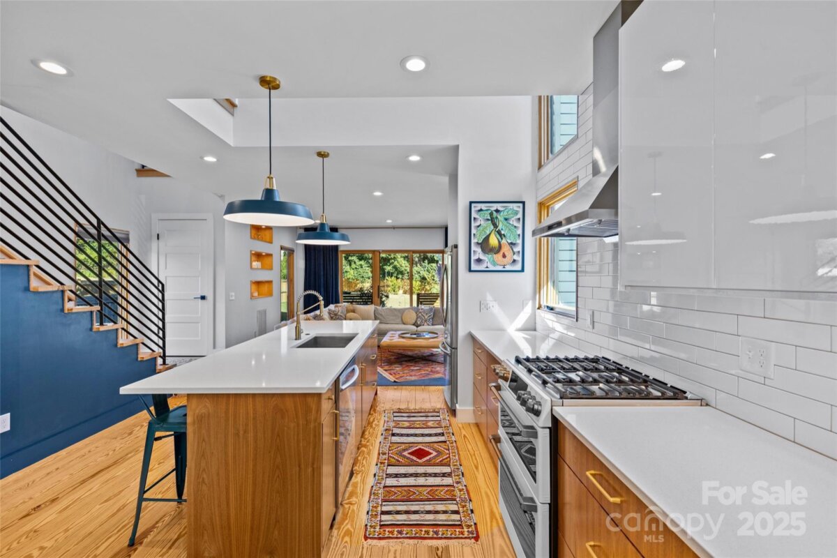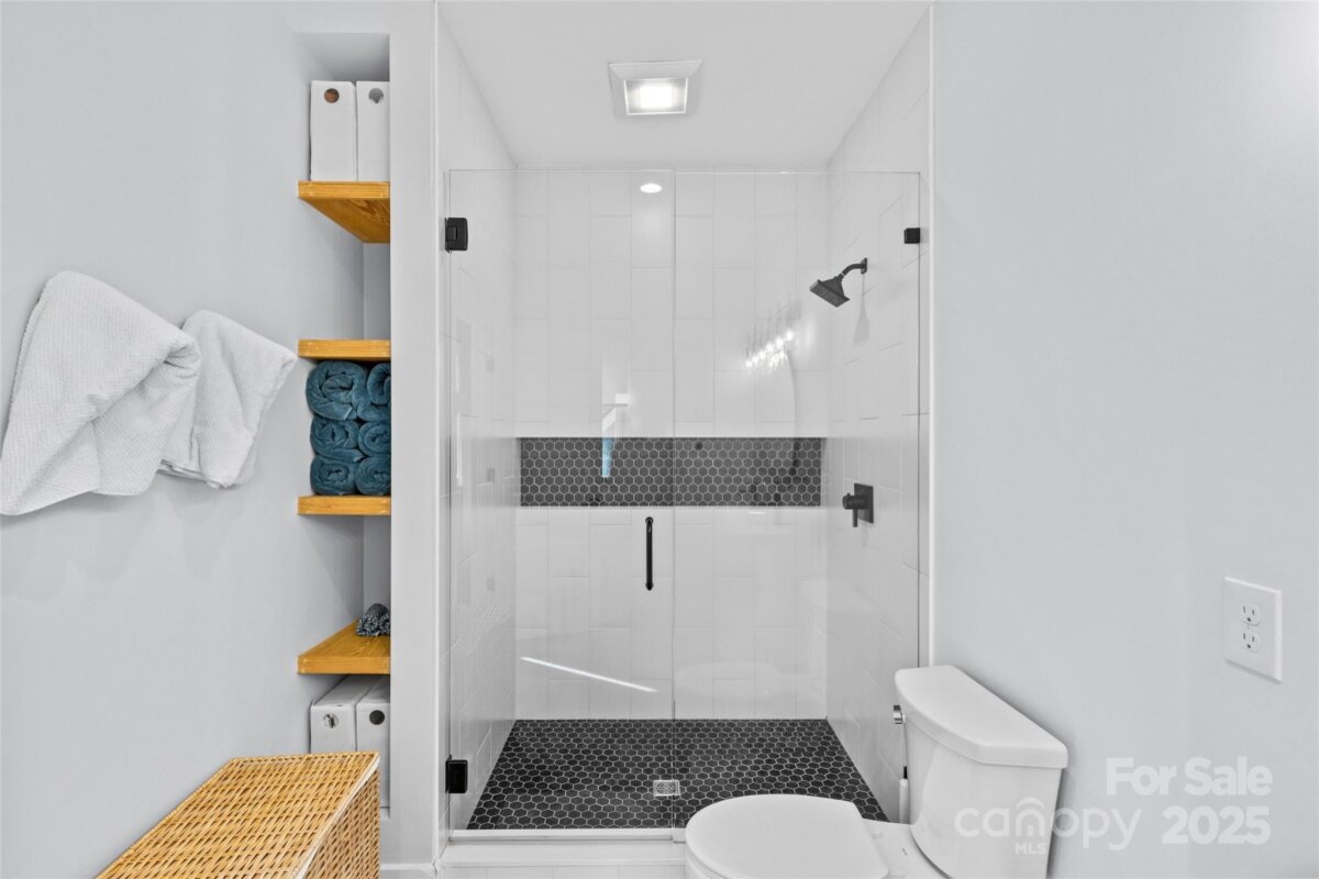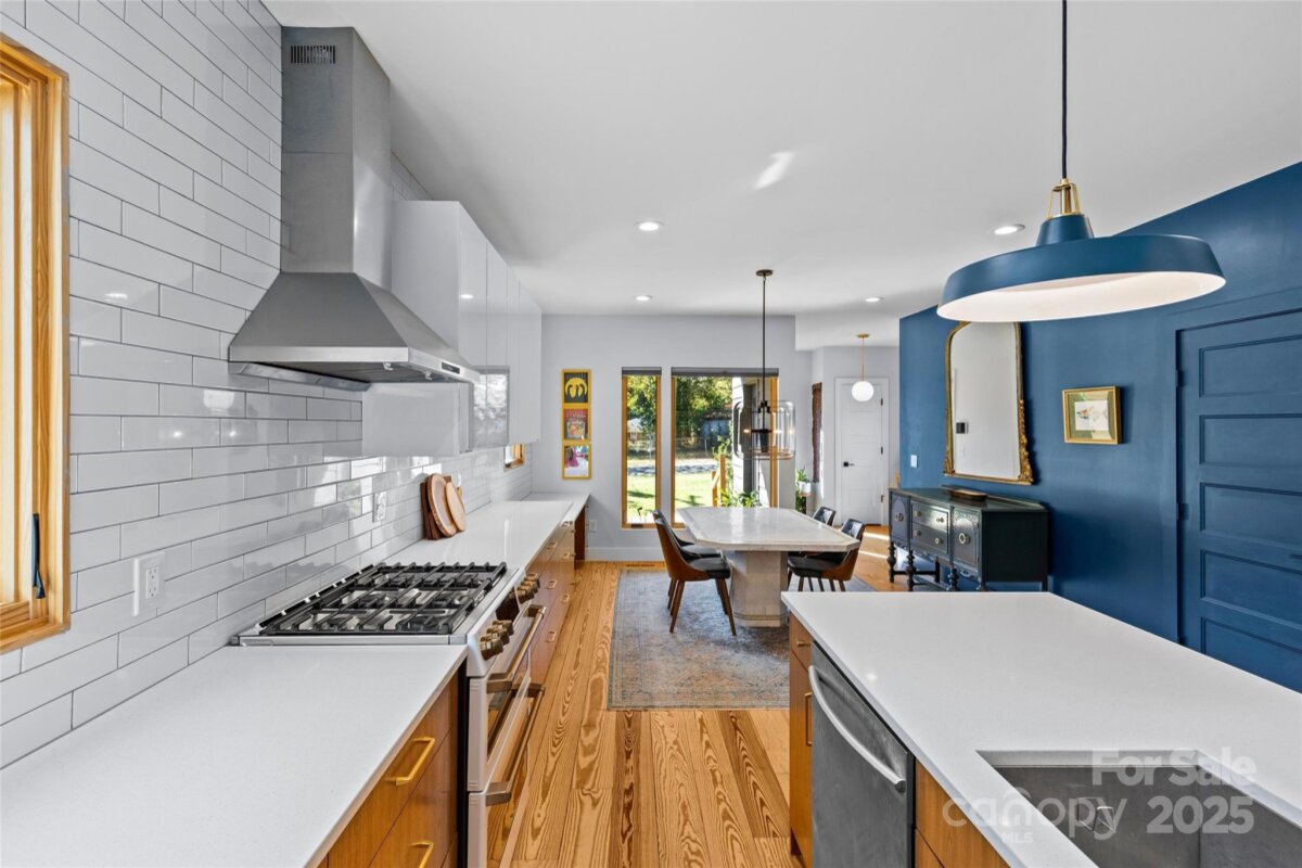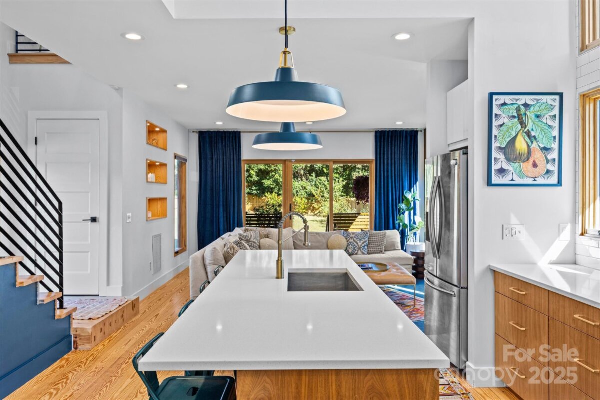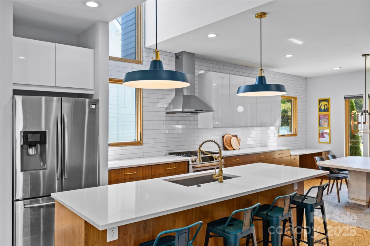 Modern Farmhouse Chic in 28205! Welcome to 2553 Elkwood Avenue, where soaring ceilings and beautiful finishes make an immediate impression. Natural light floods the open-concept main floor, designed with effortless entertaining in mind. The kitchen features a striking statement island with contrast cabinetry and flows seamlessly into the spacious living room, complete with built-ins and extra storage. A half bathroom completes the first floor. Upstairs, the generous primary suite offers excellent closet space and an ensuite bath with a contemporary tiled shower. Two additional bedrooms and another stylish full bath complete the second floor. Step outside to enjoy the covered back porch and stone patio with a firepit. The large backyard is a true urban oasis, highlighted by fruit-bearing trees and bushes including peaches, persimmons, blueberries and more. A Juliet balcony overlooks the serene outdoor space. Located just minutes from Plaza Midwood, NoDa, and local favorites like Lang Van — welcome home!
