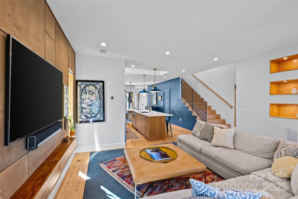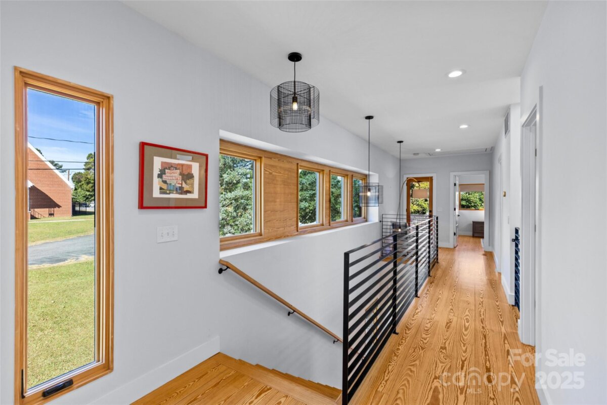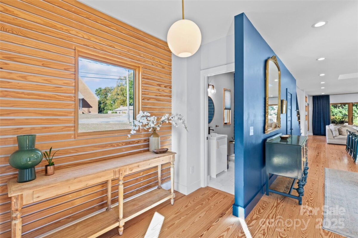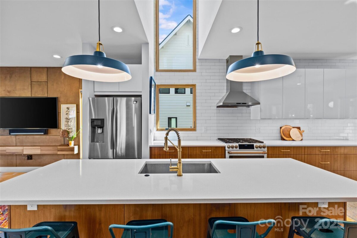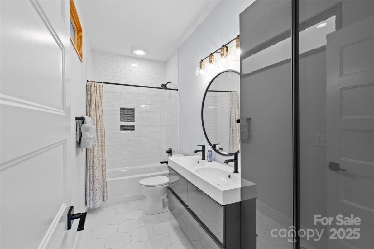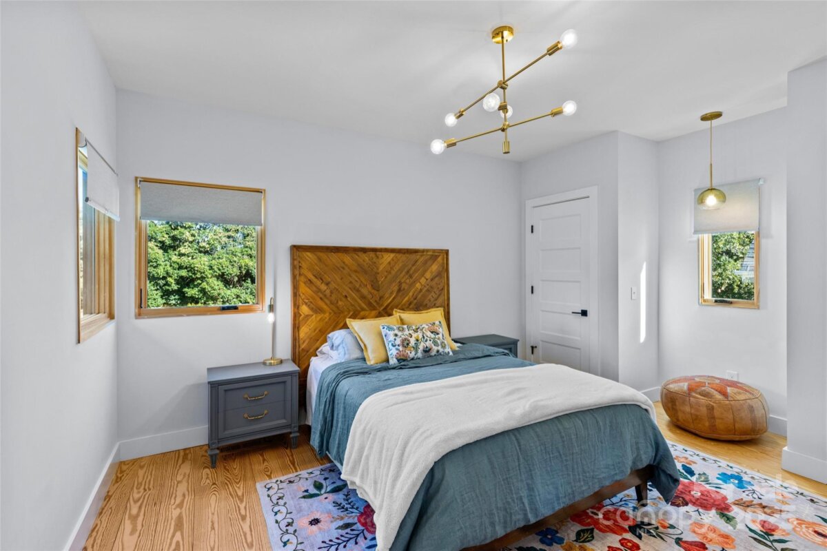 Modern Farmhouse Chic in 28205! Welcome to 2553 Elkwood Avenue, where soaring ceilings and beautiful finishes make an immediate impression. Natural light floods the open-concept main floor, designed with effortless entertaining in mind. The kitchen features a striking statement island with contrast cabinetry and flows seamlessly into the spacious living room, complete with built-ins and extra storage. A half bathroom completes the first floor. Upstairs, the generous primary suite offers excellent closet space and an ensuite bath with a contemporary tiled shower. Two additional bedrooms and another stylish full bath complete the second floor. Step outside to enjoy the covered back porch and stone patio with a firepit. The large backyard is a true urban oasis, highlighted by fruit-bearing trees and bushes including peaches, persimmons, blueberries and more. A Juliet balcony overlooks the serene outdoor space. Located just minutes from Plaza Midwood, NoDa, and local favorites like Lang Van — welcome home!