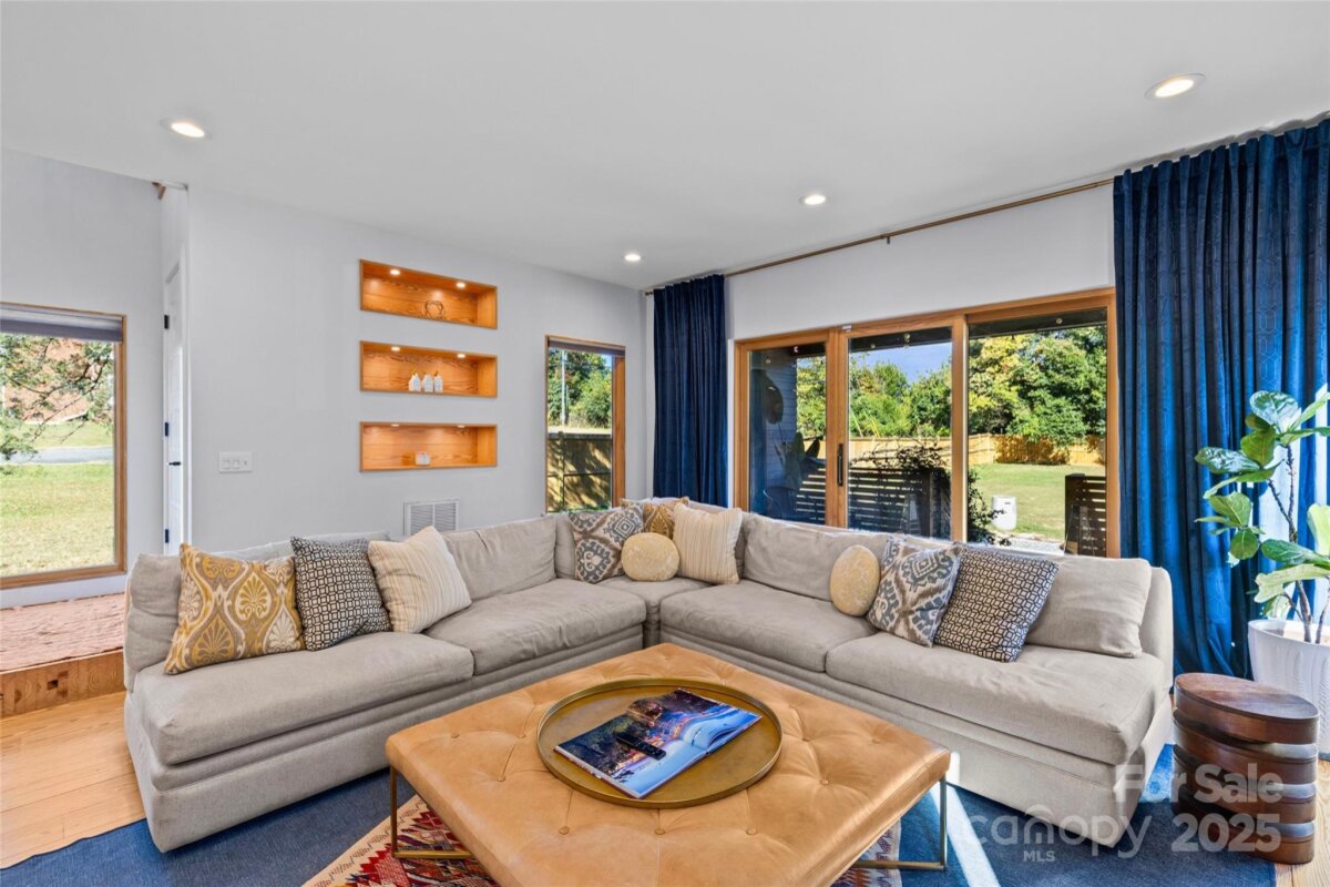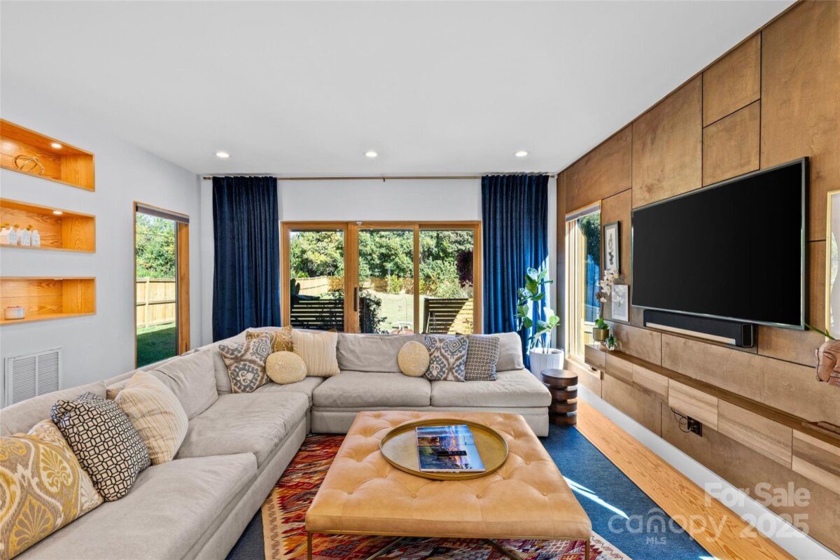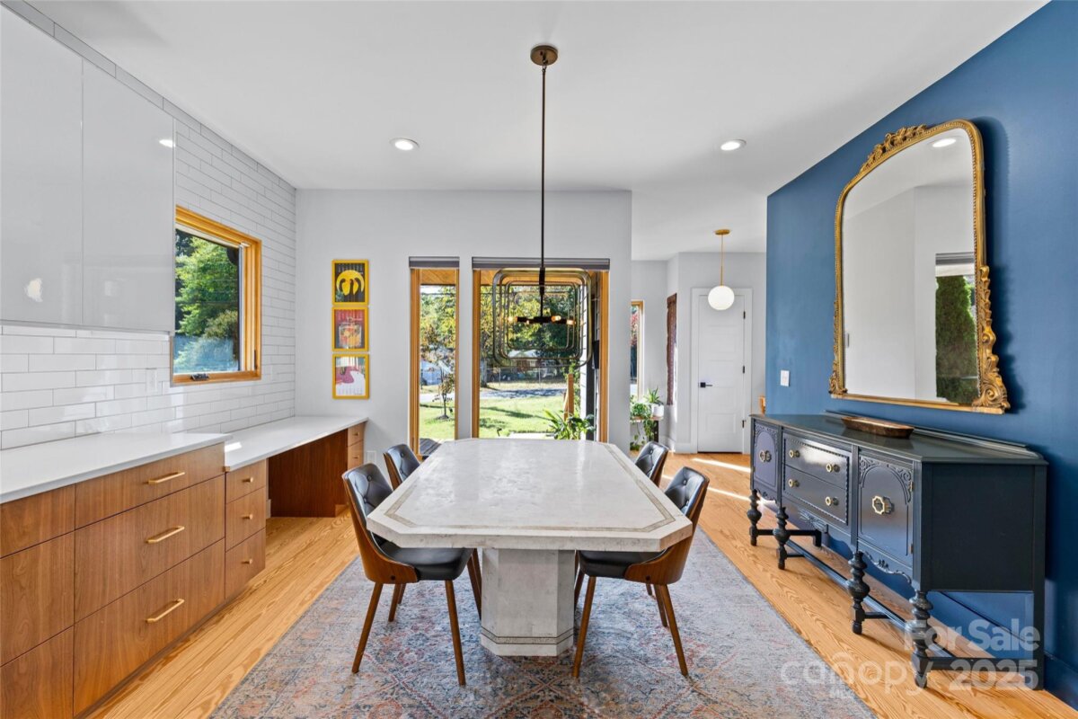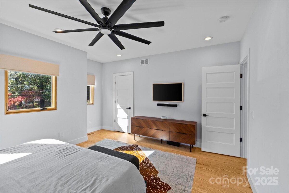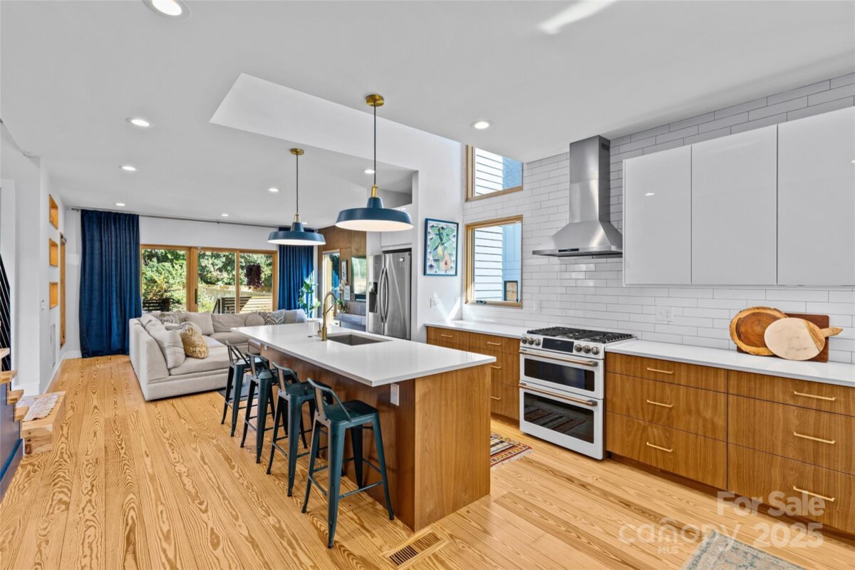 Modern Farmhouse Chic in 28205! Welcome to 2553 Elkwood Avenue, where soaring ceilings and beautiful finishes make an immediate impression. Natural light floods the open-concept main floor, designed with effortless entertaining in mind. The kitchen features a striking statement island with contrast cabinetry and flows seamlessly into the spacious living room, complete with built-ins and extra storage. A half bathroom completes the first floor. Upstairs, the generous primary suite offers excellent closet space and an ensuite bath with a contemporary tiled shower. Two additional bedrooms and another stylish full bath complete the second floor. Step outside to enjoy the covered back porch and stone patio with a firepit. The large backyard is a true urban oasis, highlighted by fruit-bearing trees and bushes including peaches, persimmons, blueberries and more. A Juliet balcony overlooks the serene outdoor space. Located just minutes from Plaza Midwood, NoDa, and local favorites like Lang Van — welcome home!