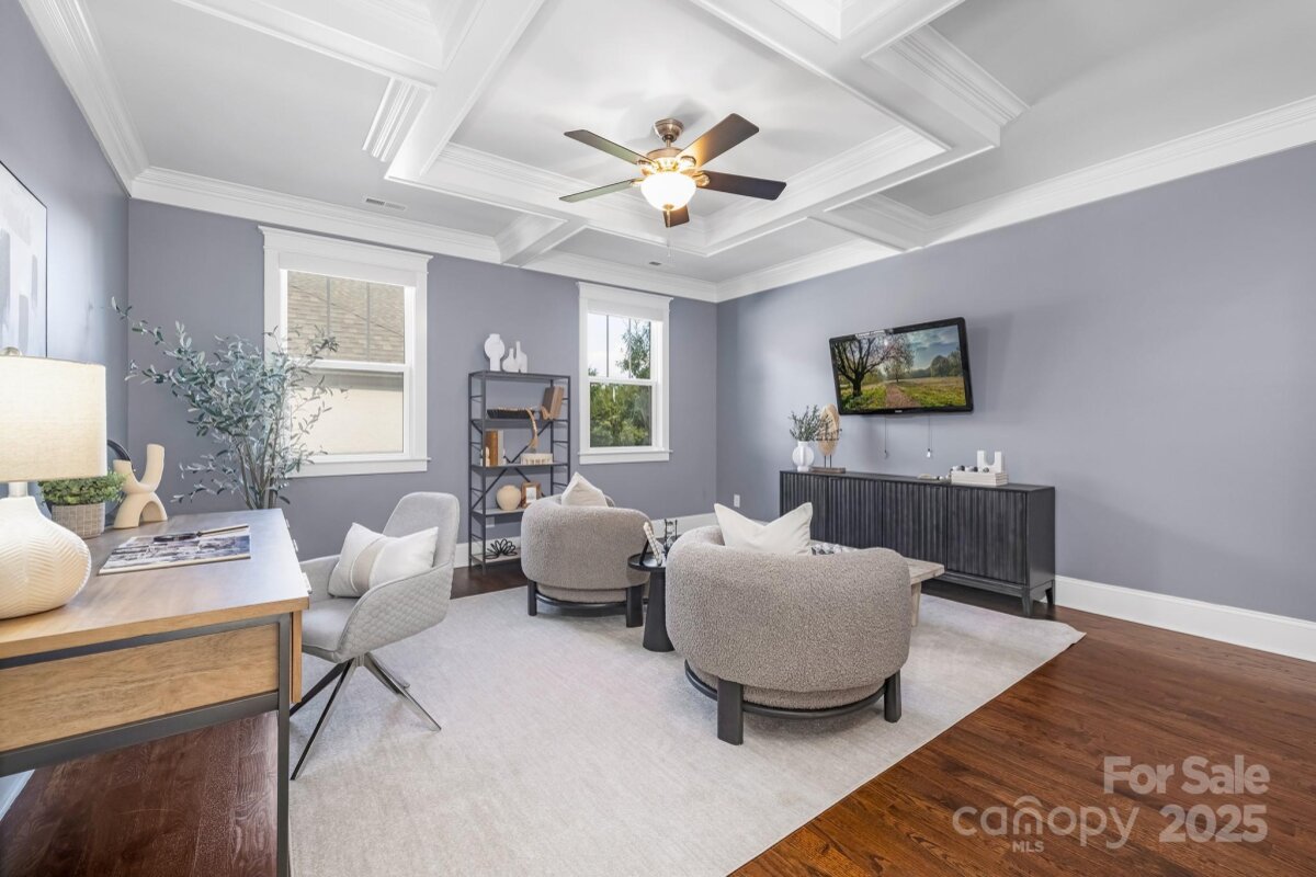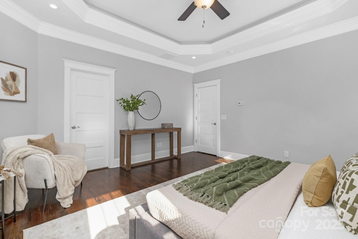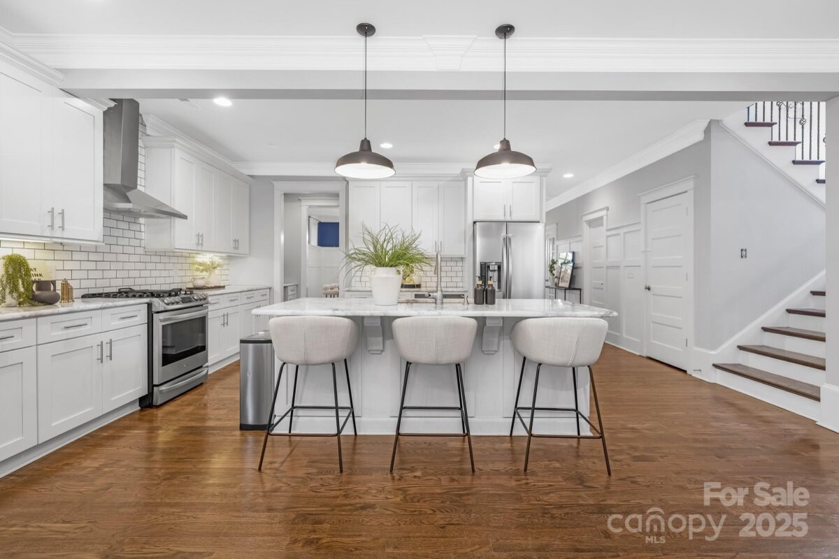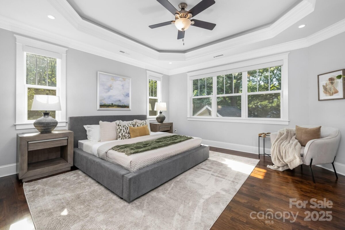 Welcome to Plaza Midwood! Built in 2016, this 4-bedroom, 3-bath Craftsman-style Colonial offers timeless charm with modern convenience and is truly move-in ready. Inside, you’ll find rich hardwood floors, coffered ceilings, crown molding, and elegant marble countertops. The chef’s kitchen boasts a spacious island with seating for three, a walk-in pantry with custom shelving, and a built-in butler’s pantry/dry bar—perfect for entertaining. A main-level guest suite / 2nd primary bedroom with a full bath provides comfort and flexibility, while upstairs you’ll discover the luxurious primary suite with a custom bath, two additional bedrooms with a shared hall bath, and a generous laundry room. The upstairs loft offers endless possibilities—as a kids playroom, home office, or game room. The dramatic open staircase connecting the two levels is a true showpiece. Outdoor living is just as impressive with a large covered front porch featuring ceiling fans and a heated, screened-in back porch for year-round enjoyment. The wooden fenced in backyard includes a custom aluminum metal decorative driveway gate leading to the Detached 2-Car Garage & backyard. Keys at close. Immediate occupancy. All of this is just a few minutes drive to both Midwood Park and NoDa, and less than a 15 minute drive to Uptown Charlotte.