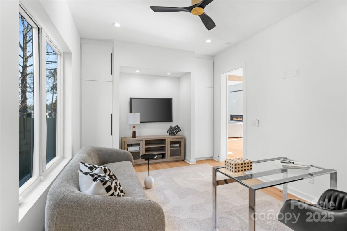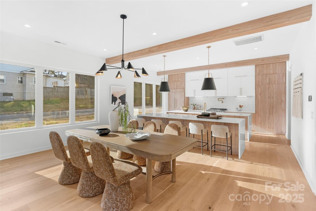 Stunning new construction home offering exceptional design and space across three levels. Enter into a breathtaking three-story open great room that seamlessly flows into the dining area and chef’s kitchen, all accented by elegant beamed ceilings. The kitchen is a showstopper with dual islands, wall-to-ceiling cabinetry, a gas stove with pot filler, and a designer tile backsplash. A built-in desk area features custom shelving and wine storage, perfect for both function and style. The main level includes a private office or secondary bedroom with an ensuite bath. The luxurious primary suite boasts beamed ceilings, a ceiling fan, and a sliding door that opens to the patio. The spa-inspired bath features a dual-sink vanity and an expansive wet area with a soaking tub and walk-in shower. Spacious secondary bedrooms each offer private baths for added comfort and privacy. The third floor is ideal for entertaining or relaxing, featuring a large, light-filled loft with abundant cabinetry, a small sink, and a wine refrigerator. A generous fourth bedroom with direct bath access completes this level. Step out onto the third-floor deck to enjoy beautiful views and outdoor living. This exceptional home combines thoughtful design, upscale finishes, and versatile spaces throughout.