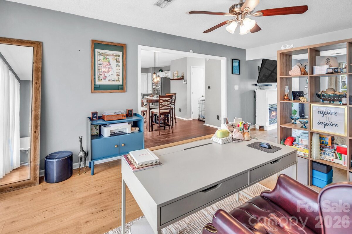 Welcome home to this beautiful property nestled in a quiet, established neighborhood with no HOA and no cut-through traffic. Enjoy the perfect blend of privacy and convenience with a short walk to the Greenway and close proximity to Reedy Creek Park, local shops, restaurants, and quick access to I-85 and I-485. Step inside to an inviting, easy-living floor plan featuring a stunning two-story foyer and a spacious great room with a cozy fireplace—perfect for relaxing or entertaining. The kitchen has been thoughtfully updated with new stainless steel appliances and flows seamlessly into the breakfast area, overlooking the backyard deck and private pool. A formal dining room provides the ideal setting for gatherings and special occasions. Upstairs, you’ll find a desirable split-bedroom layout, including a spacious primary suite with a vaulted ceiling. The primary bath offers a garden tub and tile shower surround, creating a comfortable retreat at the end of the day. Convenient upstairs laundry adds to the home’s functionality. Outdoor living shines with a generous deck—perfect for entertaining or unwinding poolside. The two-car garage is a standout feature, complete with built-in shelving, cabinets, and workbenches—ideal for storage, projects, or hobbies. This home offers the space, features, and location buyers are looking for—don’t miss your opportunity to make it yours!