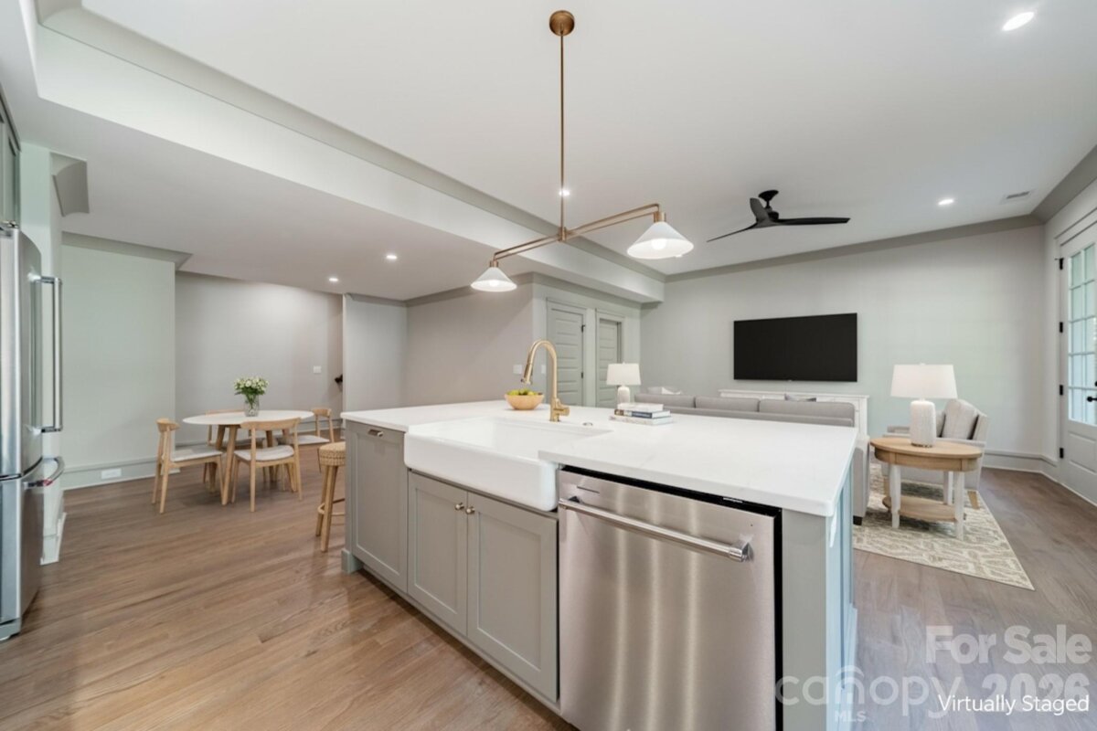 Welcome to 839 Drummond Ave — a modern craftsman home with over 4665 sf nestled in vibrant Villa Heights, just a short walk from local shops, dining, and entertainment. A contemporary interpretation of the classic Arts & Crafts style, this home showcases Carolina Craftsman Builders’ signature architectural details and timeless craftsmanship and includes a thoughtfully designed walkout basement featuring 2 bedrooms, 1 bath, a full kitchen, dining area, and family room, providing endless flexibility for a live/work setup, guest suite, studio, Au Pair Suite or rental opportunity. Park-like rear yard with charming bridge over small creek area. Experience the perfect balance of modern comfort and traditional charm in one of Charlotte’s most dynamic neighborhoods.