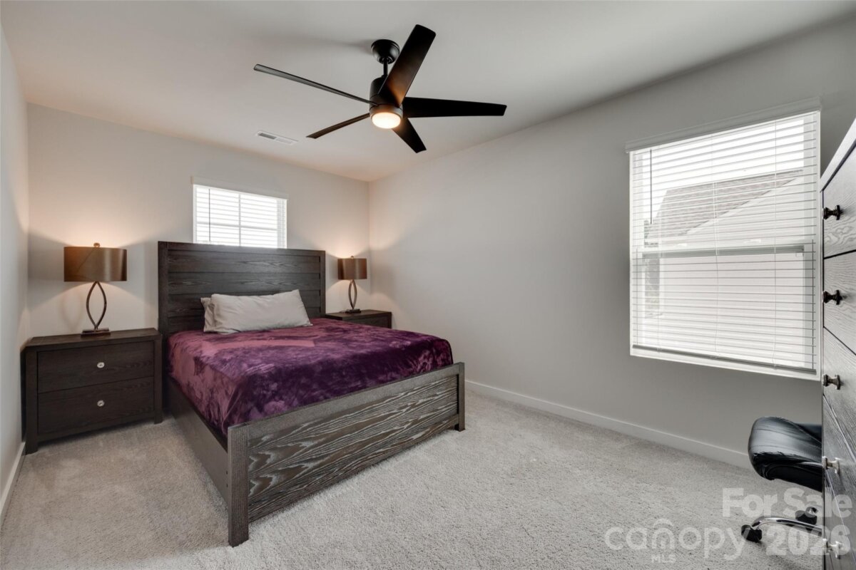 Nestled in a tranquil neighborhood, this nearly new home offers style and flexibility. The open-concept layout centers around a bright kitchen with spacious island, walk-in pantry, and stainless-steel appliances, seamlessly adjoining the inviting family room with stacked stone gas fireplace—perfect for gatherings or daily life. On the main floor, French doors open to a dedicated office ideal for remote work or study, while a private guest suite suits visitors or multigenerational living. Upstairs, the primary suite boasts a luxurious ensuite bath, complemented by three additional bedrooms, a full bath, and a versatile loft for play, relaxation, or recreation. Outdoors, a fenced backyard and deck invite quiet mornings or lively get-togethers. True move-in readiness and just minutes from shopping, dining, and major thoroughfares.