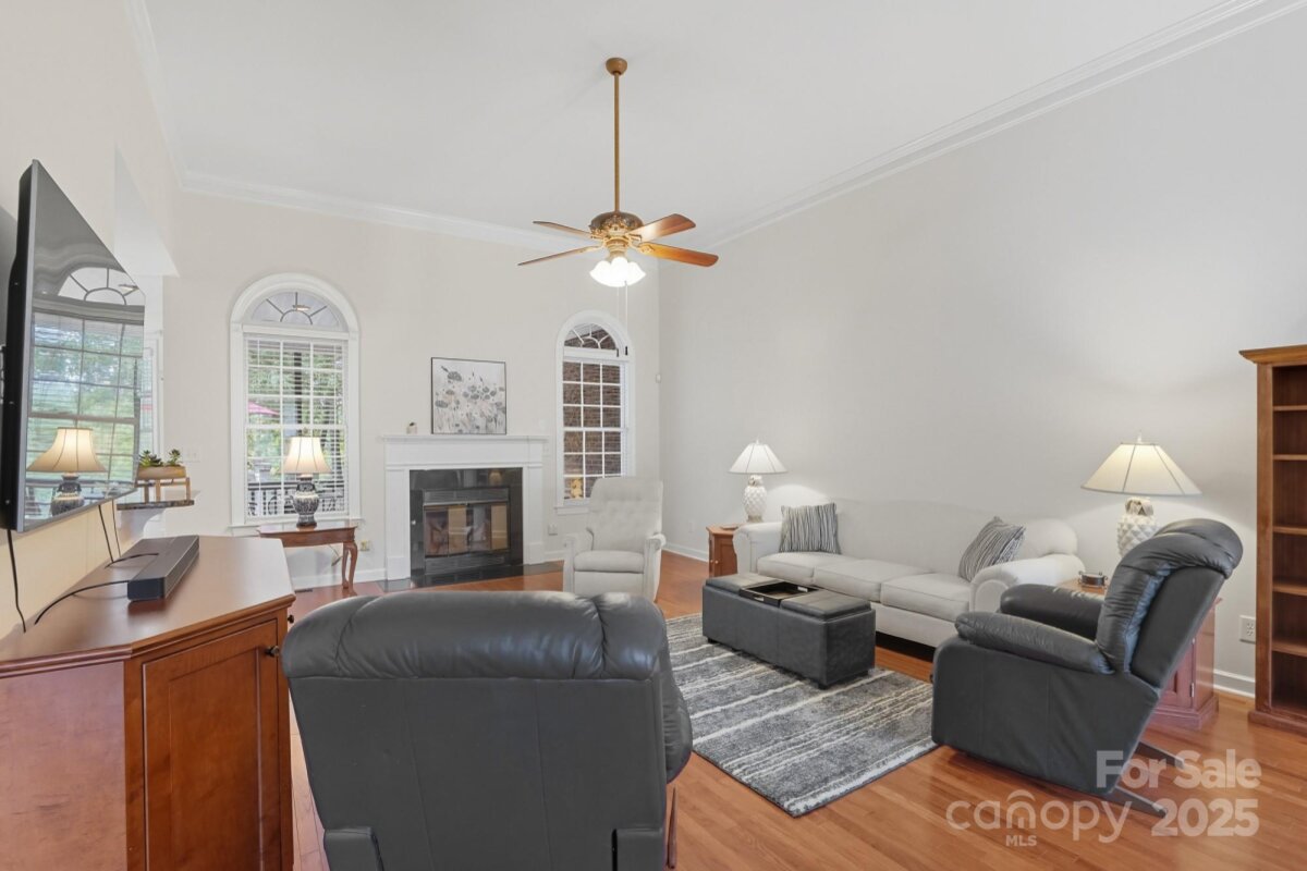 Golf course living, newly up-dated floors, HVAC and roof! This stunning, all-brick home on Waterford's 14th hole is ready for you to move in. Loaded with brand NEW main level wood flooring, NEW roof (2023), and NEW Trane HVAC (2024). The spacious, well designed kitchen features plenty of cabinets, classic granite counter tops, and a breakfast bar that is open to the eat-in area and easily flows into the formal dining room with plenty of room for large gatherings. Enjoy the newly painted living room with gas log fireplace or hang out in the flex/bonus room with plenty of space and floor support for a pool table. The luxurious main level Primary Suite is a true retreat with the bath featuring double vanities and two walk-in closets. The split-bedroom floor plan includes 2 additional bedrooms with full bath on the main floor opposite side of the primary. A light-filled study/office is on the main level. Upstairs is a 4th bedroom with its own private bath. Main level laundry room with sink and cabinets. Outdoor living is exceptional with a cozy, private screened in porch, deck with unparalleled golf course views and patio. Oversized garage with room for golf cart. Walk-in attic storage. Irrigation system. Highly desirable neighborhood with pool, sidewalks and streetlamps. Minutes to I77 and Rock Hill's premier shopping and dining. Don't miss this one!