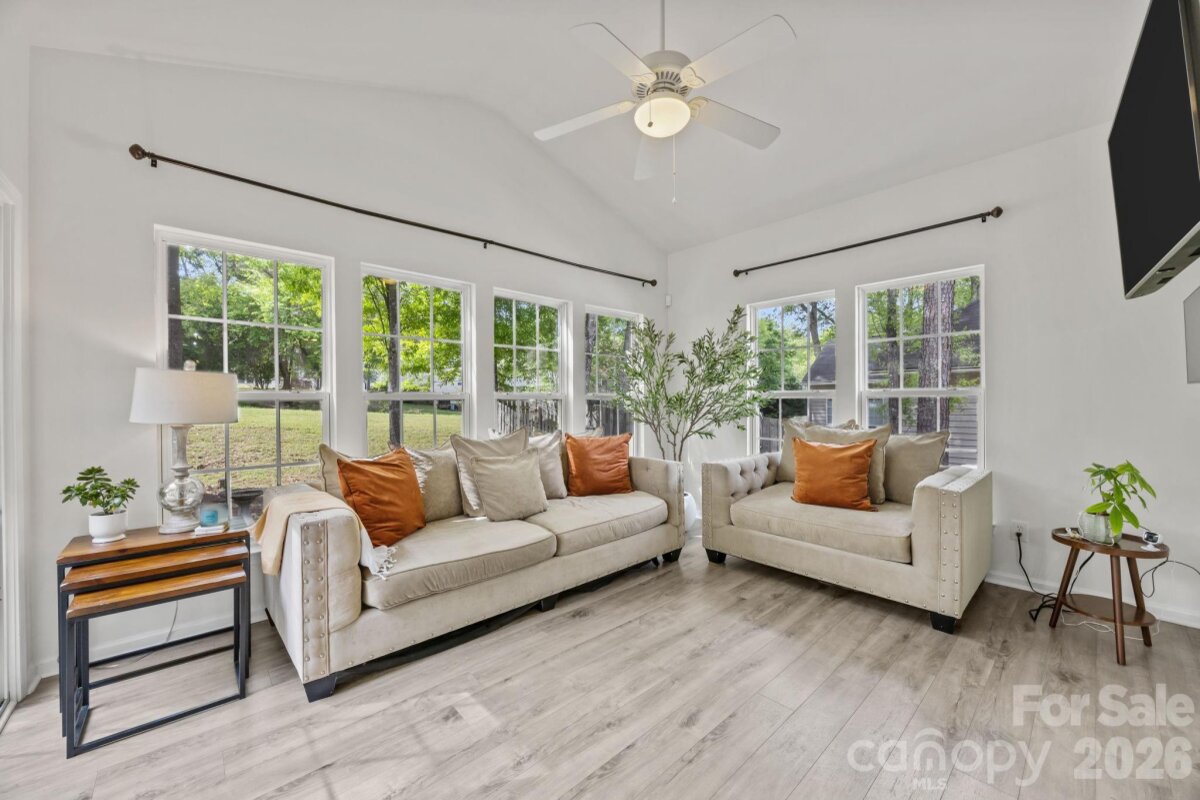 Tucked into the desirable Sunset Point community, this home offers the space, flexibility, and inviting lifestyle you are looking for. Three bedroom, two and half bath with an open, comfortable floorplan designed for both easy daily living and effortless entertaining. The kitchen is finished with granite countertops and stainless appliances and opens nicely to the main living areas. Thoughtful extra spaces including an office/flex room, sunroom, and bonus room (currently used as a bedroom) allow room for working from home, guests, hobbies, or simply spreading out in comfort. Enjoy the outdoors on your rocking chair front porch or serene back deck with covered area and projection TV equipment. Abundant storage, newer major components and an electric charger in garage make this move in ready. All of this just a few blocks from Lake Wylie and the neighborhood lake access. The community is convenient to shopping, dining, major roads and more. A home that truly offers room to live well.