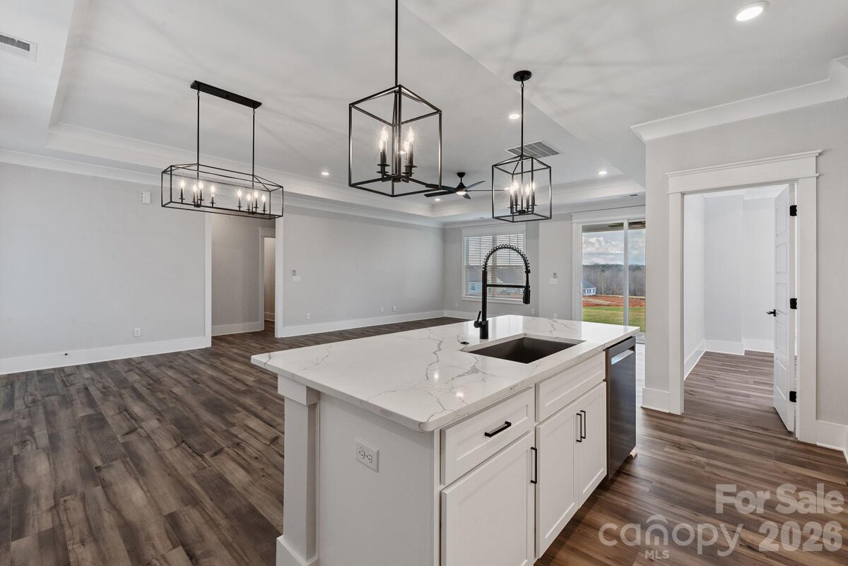 As you walk through the entry you will find yourself in an open floorplan with a fully loaded kitchen and culinary paradise that's ready to turn you into a gourmet chef. The white cabinets and sleek quartz countertops are like a blank canvas waiting for your culinary masterpieces. The kitchen island is a great place to meal prep, making it a hub for both cooking and conversations. Off the kitchen is the spacious family room, a cozy haven for movie nights and gatherings with friends. It's the perfect spot to unleash your inner decorator with endless possibilities for personalization. Out back you will find a covered porch with ceiling fan for relaxation. Please ask about our builder incentives!