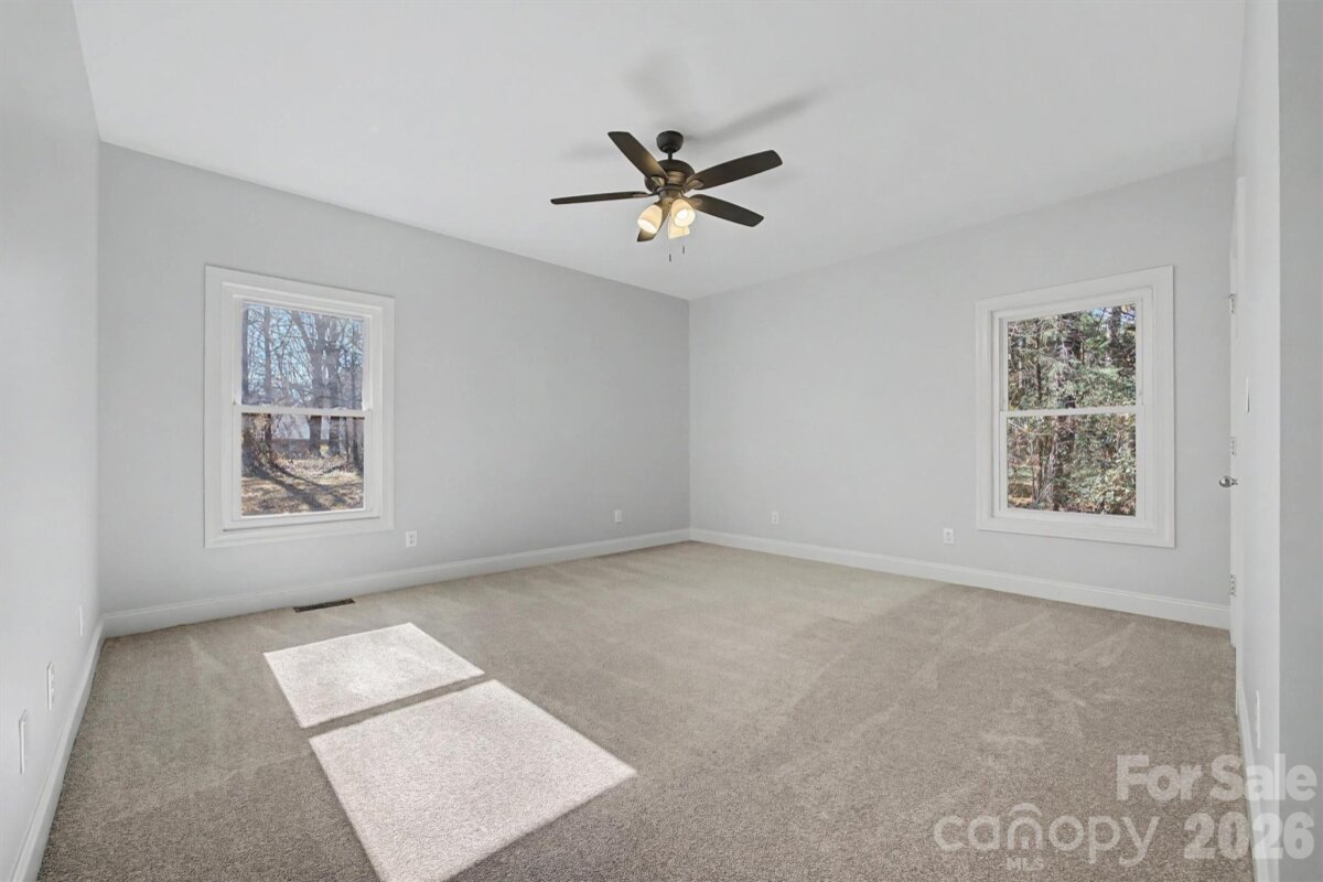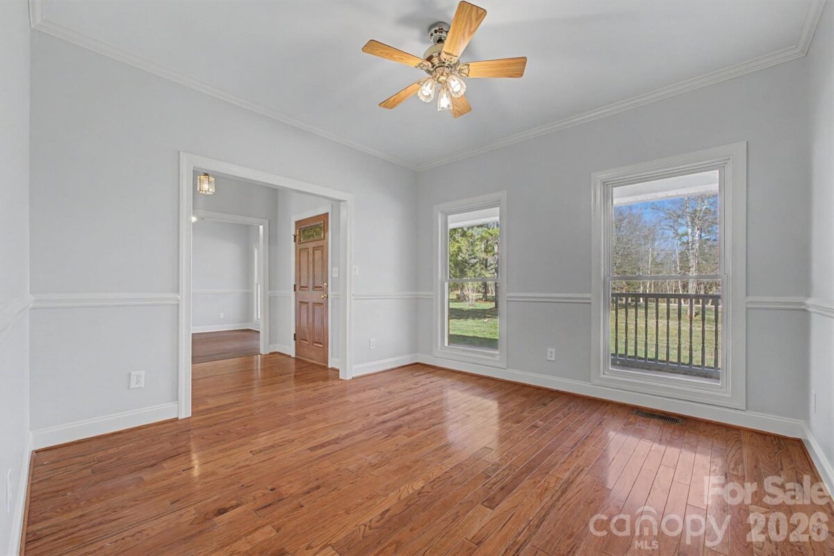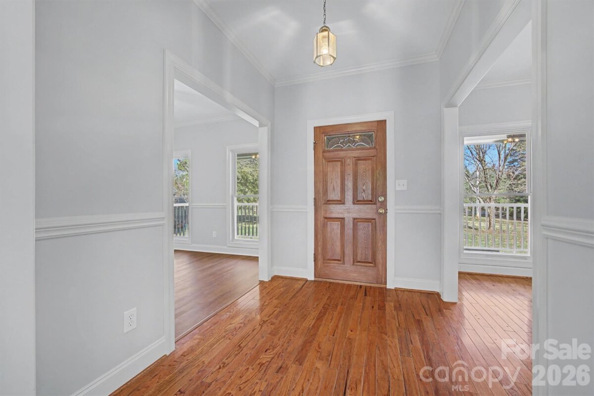 Welcome home to space, classics, and comfort on 1.3 beautiful acres. This 3 bedroom, 2.5 bath split floor plan home offers 2,364 sq ft designed for both everyday living and effortless entertaining. Step through the doors to the grand foyer leading to the formal dining room and a flex room perfect for a home office, play room, or creative space. Flowing seamlessly into the inviting living room with cozy fire place, you have open access to the breakfast nook and kitchen complete with a new stove and range hood, making it effortless to entertain. Overlooking your expansive back yard in the sun porch and savor quiet mornings or relaxed evenings. The spacious primary suite features a walk-in closet and private en suite, while large secondary bedrooms include walk-in closets and a convenient Jack and Jill bath. Fresh paint, lighting and new flooring throughout create a bright feel, while keeping some of the original hardwoods keeps the timeless charm. With generous front and back yards, and minutes from I-77, you're convenient to everything while still having the quietness and room to garden, gather, and truly live.