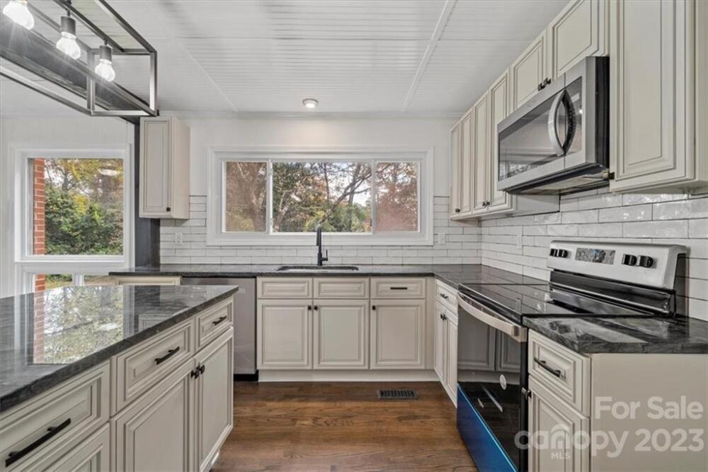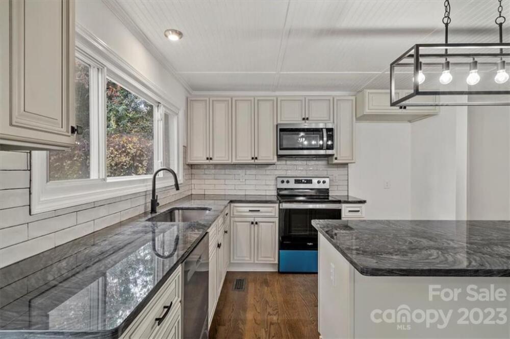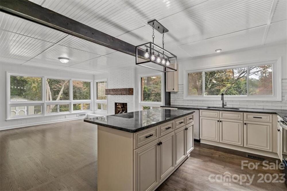 Located near shops and restaurants in Rock Hill, SC, this home, situated on over a half acre lot, has been beautifully updated and has a possible income producing basement apartment in the established Fewell Estates neighborhood. Upon entering you'll find crown molding throughout and refinished hardwood floors that lead you to the immaculate living room with floor to ceiling grand windows and a gas fireplace with wood mantel. A separate living room features exposed wood beams and beautiful built ins. The luxury kitchen features quartzite countertops and slow close cabinets. The upper floor, 6 steps up, has a loft and access to the rooftop deck with built-ins. All bathrooms have Carrara marble counters. The walk out basement apartment features a separate entrance, kitchen, two bedrooms, & it's own address to help facilitate the rental income opportunities. Add. features: tankless water heater, NEW HVAC, & a vapor barrier in the crawl space.