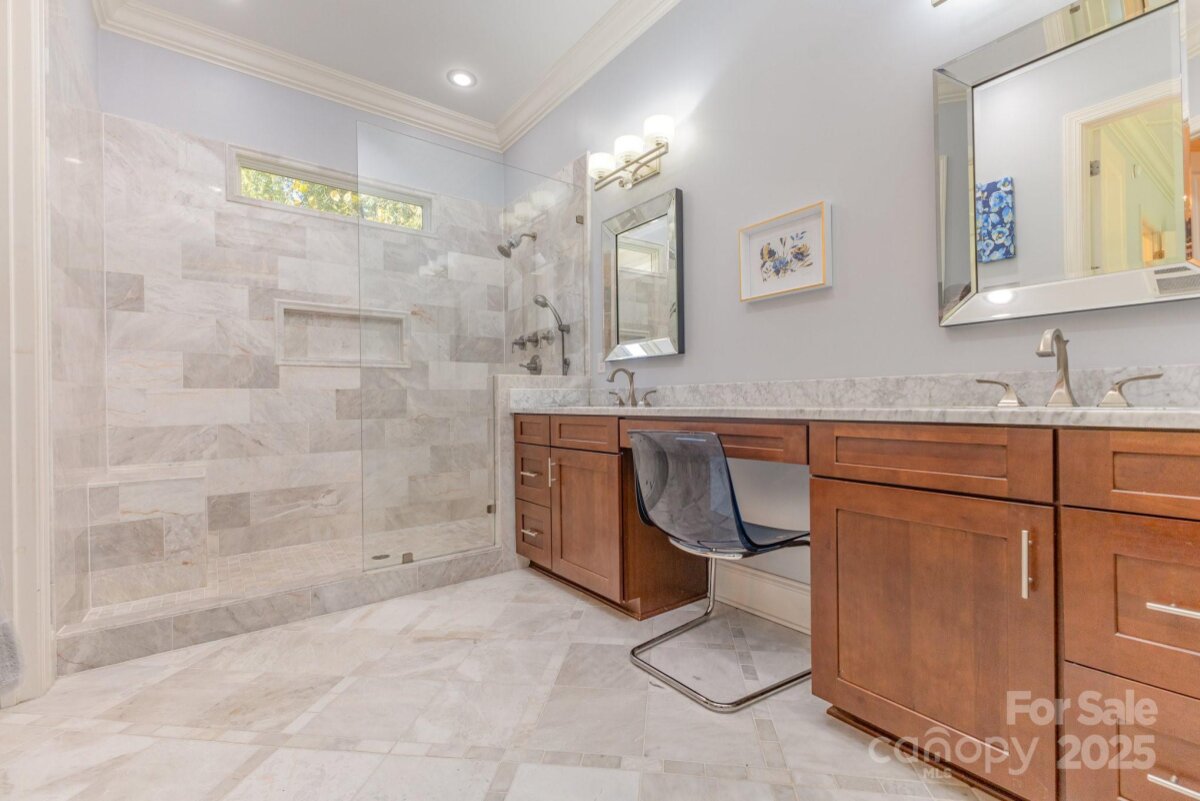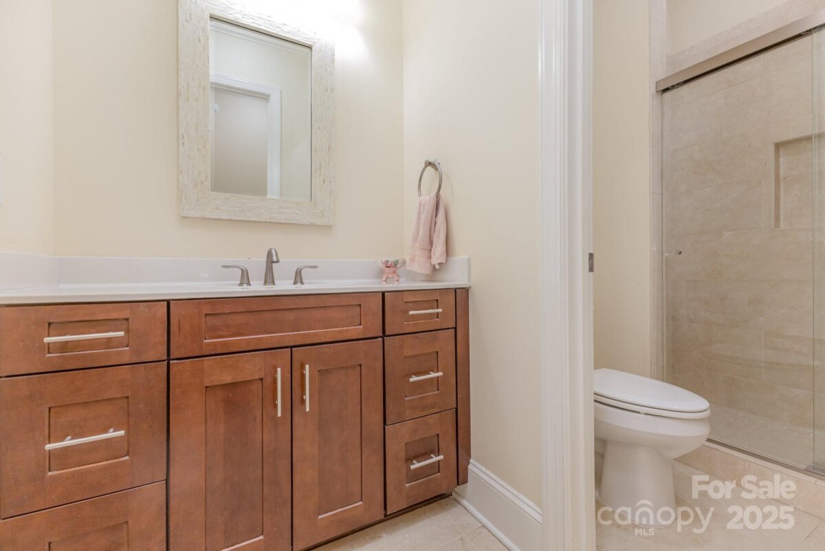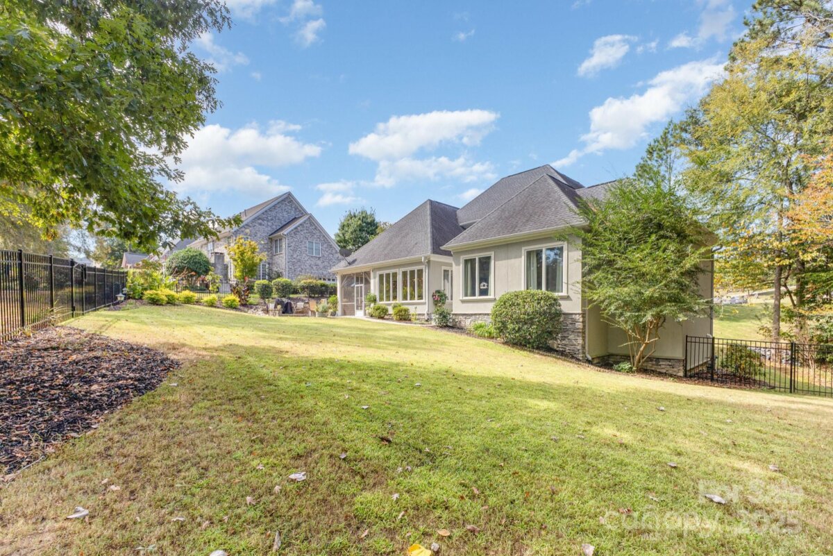 Welcome to Peaceful 730 Spyglass Way! YES, IT'S ON THE GOLF COURSE! This stunning custom home on 0.45 acres in Waterford Glen offers a rare combination of serenity and convenience. From the backyard, enjoy a one-of-a-kind view of the 12th hole of the Waterford Golf Course, creating a picturesque backdrop that sets this property apart. The gorgeous stacked stone and hard stucco exterior exudes timeless elegance, while the thoughtfully designed interior takes open concept living to the next level. The natural light streaming through the numerous oversized windows brighten each space naturally! The kitchen boasts a plethora of white cabinets, stainless steel wall oven/microwave, refrigerator, dishwasher and gas cooktop! The kitchen also has plenty of space to sit at the breakfast bar or add a table for a casual eat-in kitchen experience. The separate dining room has windows overlooking the fenced-in backyard and golf course. The spacious living area has an amazing contemporary gas wall fireplace to warm chilly evenings and create a relaxing ambiance. The primary suite boasts high ceilings, plenty of room for large furniture pieces and it's own bathroom suite. Massive shower, full wall vanity with 2 sinks, separate water closet and walk-in closet provide an aesthetically pleasing visual and relaxing spa-like getaway! Unwind year-round on the screened-in porch or entertain on the paved patio within the fenced backyard, where you can listen to birds singing and watch them flit from tree to tree. Also enjoy the golfers and people watching as they play the 12th hole. The sliding door out to the screened-in porch stacks on itself creating a large entry area. A private office area with french doors is perfect for working from home or keeping things in their place! Built-in cabinetry provides more storage to hide many office supplies. Upstairs you'll find two more private bedrooms and a shared bathroom with dual-sinks, tub/shower combo and linen closet. A custom closet system was built from a portion of the attic with storage that is unmatched! It does not have it's own vent, however, leaving the door open works to keep it at room temperature.Other walk-in attic areas are accessible from upstairs! Waterford Glen offers the best of both worlds—a tranquil, welcoming community that’s just minutes from Rock Hill’s finest shopping, dining, and conveniences. In the summer, enjoy the community pool, a perfect place to cool off, connect with neighbors, and soak up the outdoors. DON'T MISS THIS ONE!