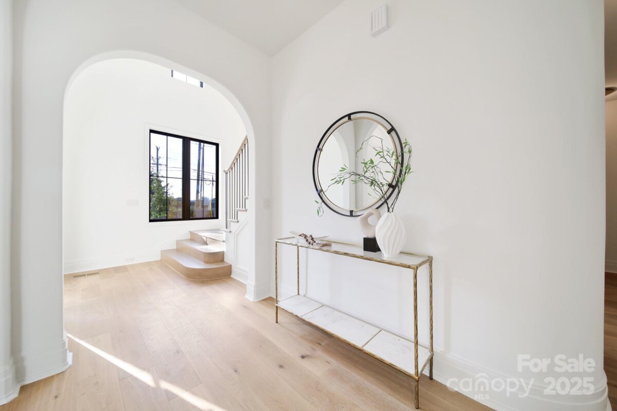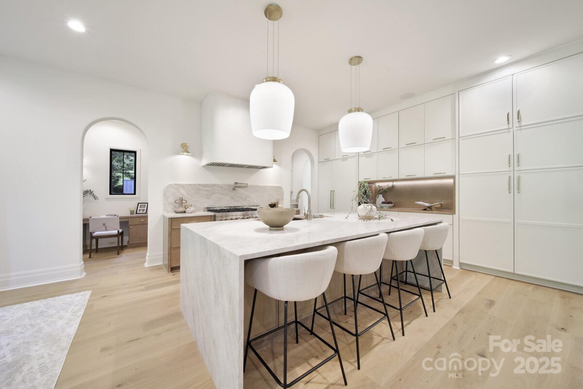 Discover the crown jewel of South Charlotte—a spectacular new construction home by Dapper Development that redefines luxury living. Ideally situated across from Charlotte Country Day and in the vibrant heart of South Charlotte, this residence is a true masterpiece. As you approach, you'll be captivated by the striking details that adorn the exterior, including elegant gas lanterns, a professionally designed landscape with irrigation, custom herringbone garage doors, and a magnificent glass and steel front door that sets a high standard right from the start. Step inside, and you are greeted by an awe-inspiring 20-foot barrel-vaulted foyer that gracefully ushers you into a sophisticated living space. This area boasts a stunning custom stucco fireplace wall, an expansive 15-foot accordion patio door that seamlessly blends indoor and outdoor living, and a state-of-the-art surround sound speaker system that fills every corner with sound. The kitchen is a culinary enthusiast's paradise, featuring breathtaking waterfall Taj Mahal marble countertops, a massive island perfect for entertaining, premium JennAir appliances, and a beautifully crafted Venetian stuccoed hood vent. Adjacent to the kitchen, the sprawling scullery is equipped with an additional dishwasher, prep area, large ice machine, built-in microwave, and a wine/beverage fridge, offering unparalleled convenience. But that’s not all. The inviting covered back porch, complete with a ventless gas fireplace, overlooks a spacious, fenced-in backyard—perfect for gatherings or quiet evenings. Additional highlights include an encapsulated crawl space and two distinct office spaces, ensuring that this home meets all your lifestyle needs. Don't miss your chance to own this exceptional property. Schedule your private showing today!
