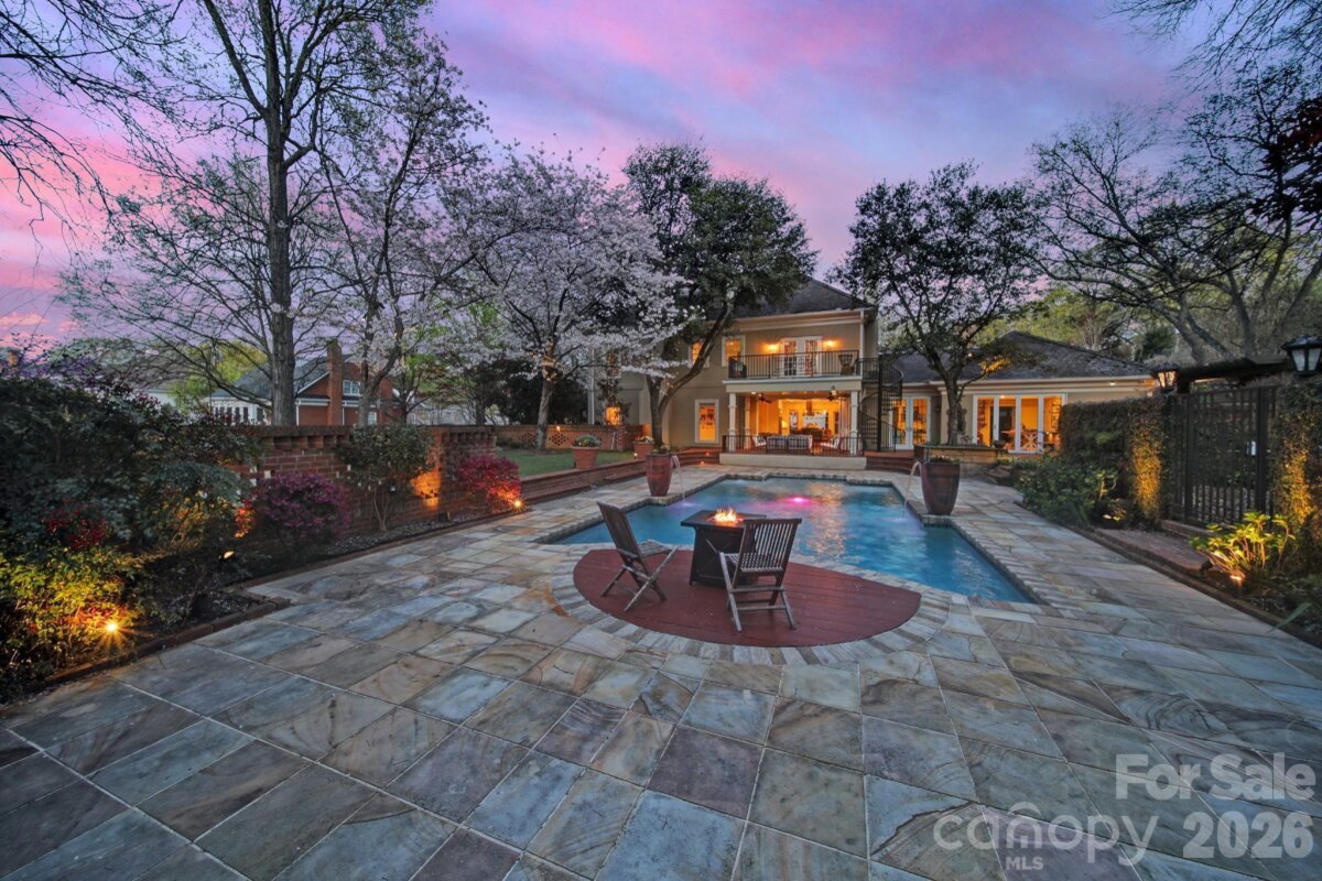 Discover a unique blend of seclusion and convenience within the gated Whitehall community. Spanning nearly a 1/2 acre, this property offers a rare level of privacy in a central location. The grounds feature a private pool, sun deck, and a brick-walled courtyard, surrounded by trees that create a serene atmosphere. The home has been thoughtfully updated including structural enhancements to open up the living, dining, and kitchen areas. The kitchen is well-appointed with a sandstone island, quartz countertops, and ample storage. The first floor includes a private study and a versatile space currently used as a workshop, which could easily be adapted to a rec room or gym. The primary suite offers a massive walk-in closet, a private patio with direct access to the pool via spiral staircase, and a spa-style bathroom. Located just blocks from Freedom Park and Dilworth, with a short commute to Uptown, this home combines a rare level of privacy with easy access to the best of Charlotte.