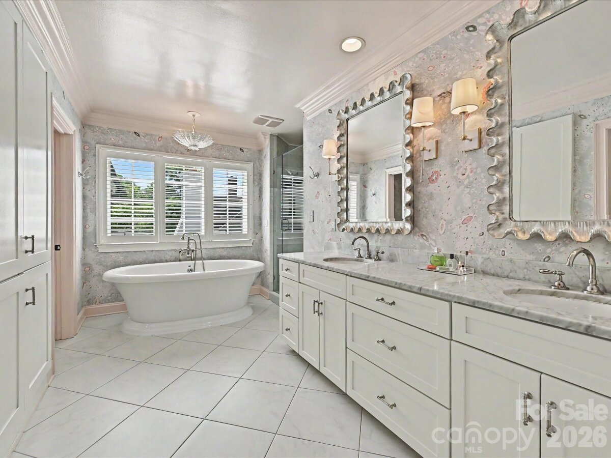 Located on one of Myers Park’s most desirable streets, 2228 Wellesley Avenue is a beautifully executed home that balances classic architecture with thoughtful, modern updates. Positioned on a corner lot with exceptional privacy and mature landscaping, the property offers both presence and livability in equal measure. The interior is defined by beautiful millwork, ample natural light and a seamless flow between formal and informal spaces. A gracious foyer leads to well-proportioned living and dining rooms, while the main living areas open seamlessly for everyday living and entertaining. The kitchen has been beautifully updated with custom cabinetry, marble countertops, a generous center island, a large breakfast area, and a built-in bar, connecting effortlessly to the great room. Supporting spaces are thoughtfully designed, including a functional mudroom with sink, a secondary dishwasher and laundry area on the main level, as well as an additional laundry located upstairs for convenience. Upstairs, the primary suite is a quiet retreat with an inviting sitting room, large spa-like bath and ample closet space. Secondary bedrooms are bright and appropriately scaled, accompanied by updated baths and a versatile bonus room and secondary staircase. Designed with entertaining in mind, the outdoor spaces are a true highlight. A covered porch with fireplace overlooks a fully turfed backyard complete with a built-in grill and patio—creating a private, low-maintenance setting for year-round enjoyment. A rare opportunity to own a turnkey home in a premier Myers Park location, just minutes from high-end shopping, and gourmet dining.