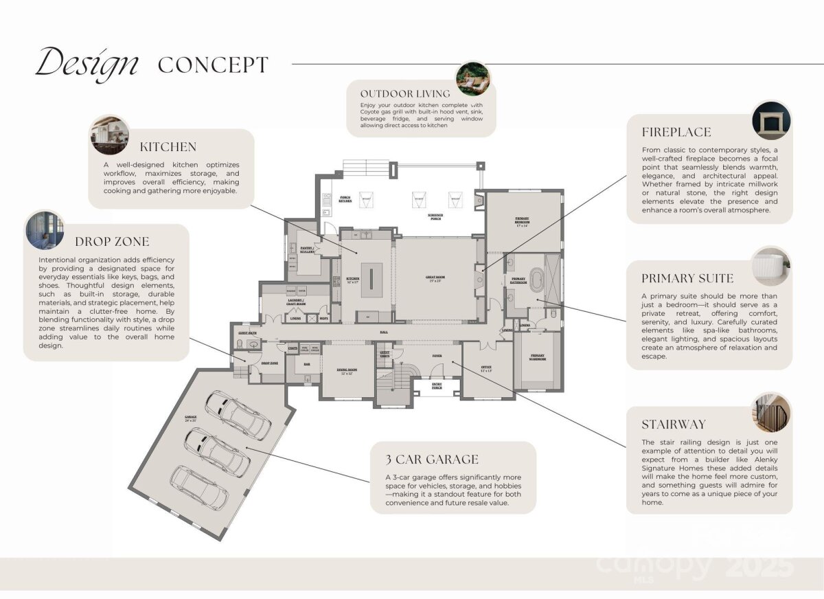 Alenky Signature Homes, in collaboration with Crystal Nagel Design, presents a residence of timeless elegance and sophistication in the heart of SouthPark. Set on an expansive lot of nearly three-quarters of an acre, the property is framed by a brick privacy wall that enhances its presence and architectural detail. Step through the grand entryway and into a home defined by luxury and meticulous craftsmanship. Custom wall details frame the foyer, setting the tone for the refined interiors beyond. At the heart of the home, the expansive chef’s kitchen is a true showpiece—featuring professional-grade appliances, stunning herringbone wood floors, and a full scullery with an additional dishwasher, refrigerator, and beverage fridge. A convenient pass-through window connects seamlessly to the back porch, creating effortless flow for entertaining. The one-of-a-kind covered porch elevates indoor-outdoor living with soaring 15’ ceilings, skylights, a full outdoor kitchen, and a masonry fireplace with gas log starter—perfect for year-round gatherings. The main level is anchored by the luxurious primary suite, a private retreat with a spa-like bath offering a deep soaking tub, oversized walk-in shower, and abundant natural light. A dedicated office just off the entry provides an ideal work-from-home space. Upstairs, a spacious family room offers flexibility for relaxation or play, while three generously sized bedrooms—each with an en-suite bath—provide comfort and privacy for family and guests. A three-car garage completes this extraordinary home, offering both functionality and storage. Perfectly situated in one of Charlotte’s most desirable locations, this property delivers not just a home, but a lifestyle—where elegance, comfort, and convenience meet. Web Url has live brochure link