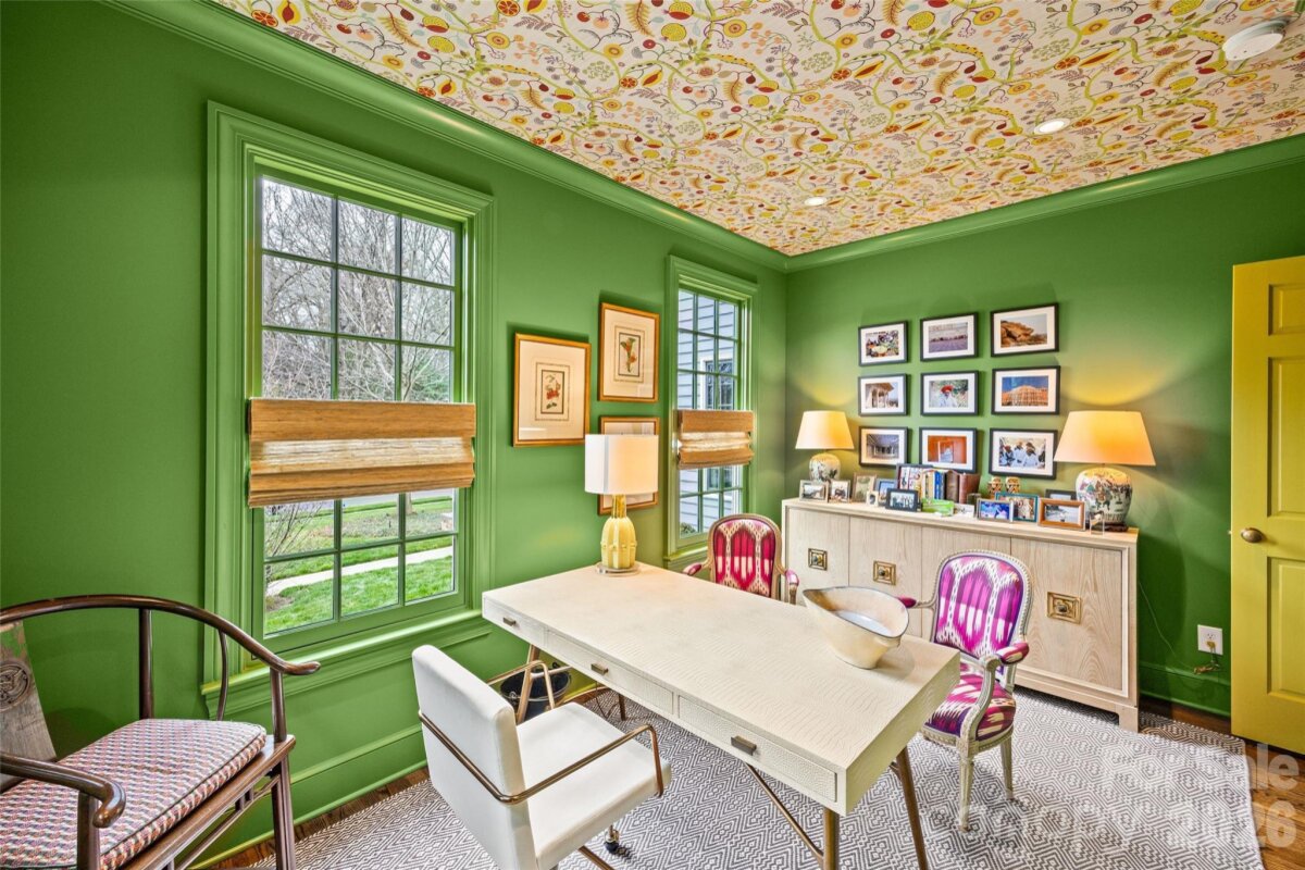 JUST LISTED | LUXURY LIVING IN FOXCROFT! Discover elevated living in the heart of Foxcroft, just moments from the vibrant SouthPark area. This stunning Charlotte residence blends classic architecture with bold, designer-forward interiors creating a home that feels both luxurious and uniquely curated. From the moment you enter, you will notice the intentional design details. Statement wallpaper and beautifully selected color palettes add depth and personality throughout the home. Each room feels thoughtfully composed, with layered textures and striking finishes that give the property a custom, magazine-worthy aesthetic. The kitchen is both functional and beautiful, opening effortlessly to a welcoming family room that invites connection and conversation. It is a space designed for real living whether hosting lively gatherings or enjoying quiet evenings at home. On the main level, a handsome study and separate office provide flexibility for work, reading, or creative pursuits. A well-designed mudroom and spacious laundry area ensure everyday tasks are handled with ease and style. Upstairs, the primary suite serves as a serene escape, complete with dual walk-in closets and a spa-like bath designed for relaxation. Three additional bedrooms and three full baths offer comfort and privacy, while the overall layout provides the perfect balance of openness and defined spaces. Featuring 4 bedrooms, 4 full baths, and 2 half baths, this Foxcroft home is more than a residence it is a statement. A seamless blend of luxury, personality, and prime location near SouthPark’s premier shopping and dining, this is Charlotte living at its finest.