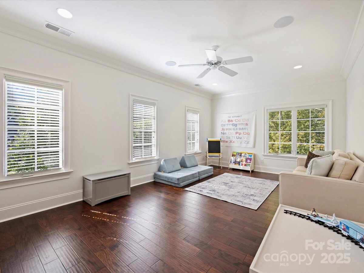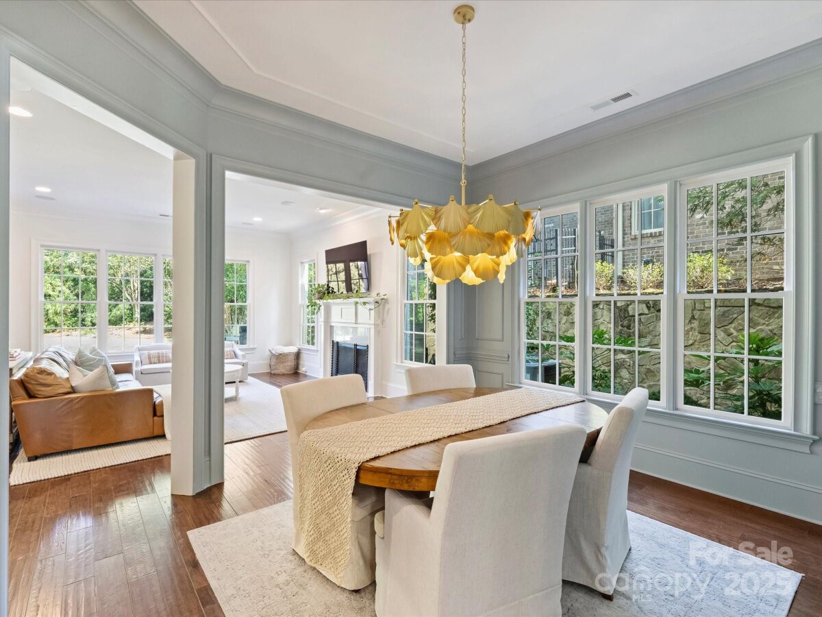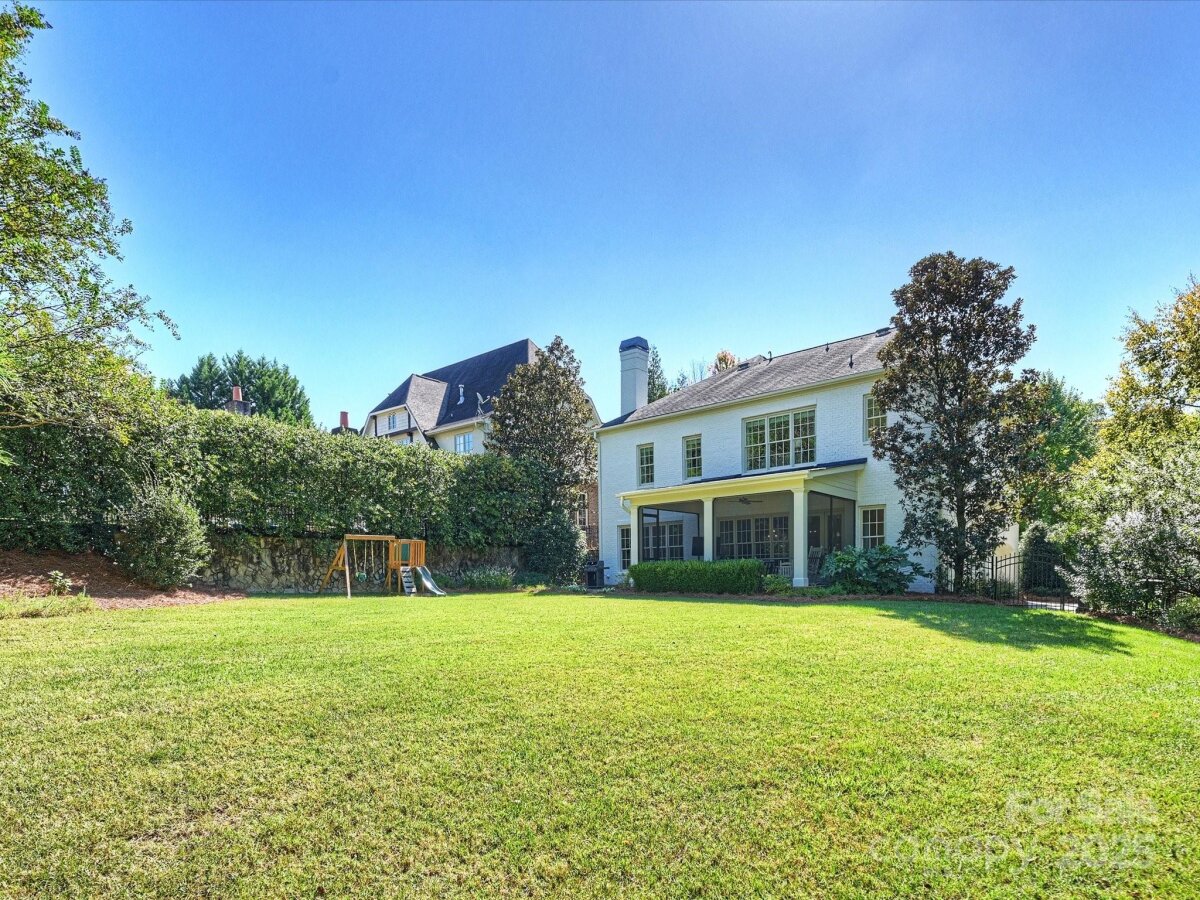 Welcome to this stunning full-brick home in Stonegate, thoughtfully crafted by Simonini. Inside, a private study with French doors offers the ideal space for a home office or formal living room. The elegant dining room, updated with fresh paint and millwork, flows seamlessly into the spacious living room where a gas fireplace and built-in speakers create an inviting atmosphere. The recently renovated kitchen is a showpiece, featuring all-new stainless steel KitchenAid appliances - including a commercial-grade gas range with custom hood - quartz countertops, new sink hardware, and a large eat-in island with additional storage. A bright breakfast area overlooks the covered, screened-in porch and the expansive, flat backyard with mature landscaping, perfect for indoor-outdoor living. Upstairs, you’ll find a versatile bonus room, two bedrooms joined by a Jack-and-Jill bathroom, an additional 4th bedroom with ensuite bath, and a luxurious primary suite. The primary retreat includes a massive walk-in closet which connects to the laundry, and a spa-like bathroom complete with a soaking tub, walk-in shower, and separate his-and-hers vanities with quartz countertops. Recent updates include engineered hardwood flooring throughout the second level (2024), custom window treatments and wooden blinds, fresh interior and exterior paint (2024), and a new upstairs HVAC system (2025). Minutes to SouthPark Mall, Phillips Place, and Charlotte's top golf courses.