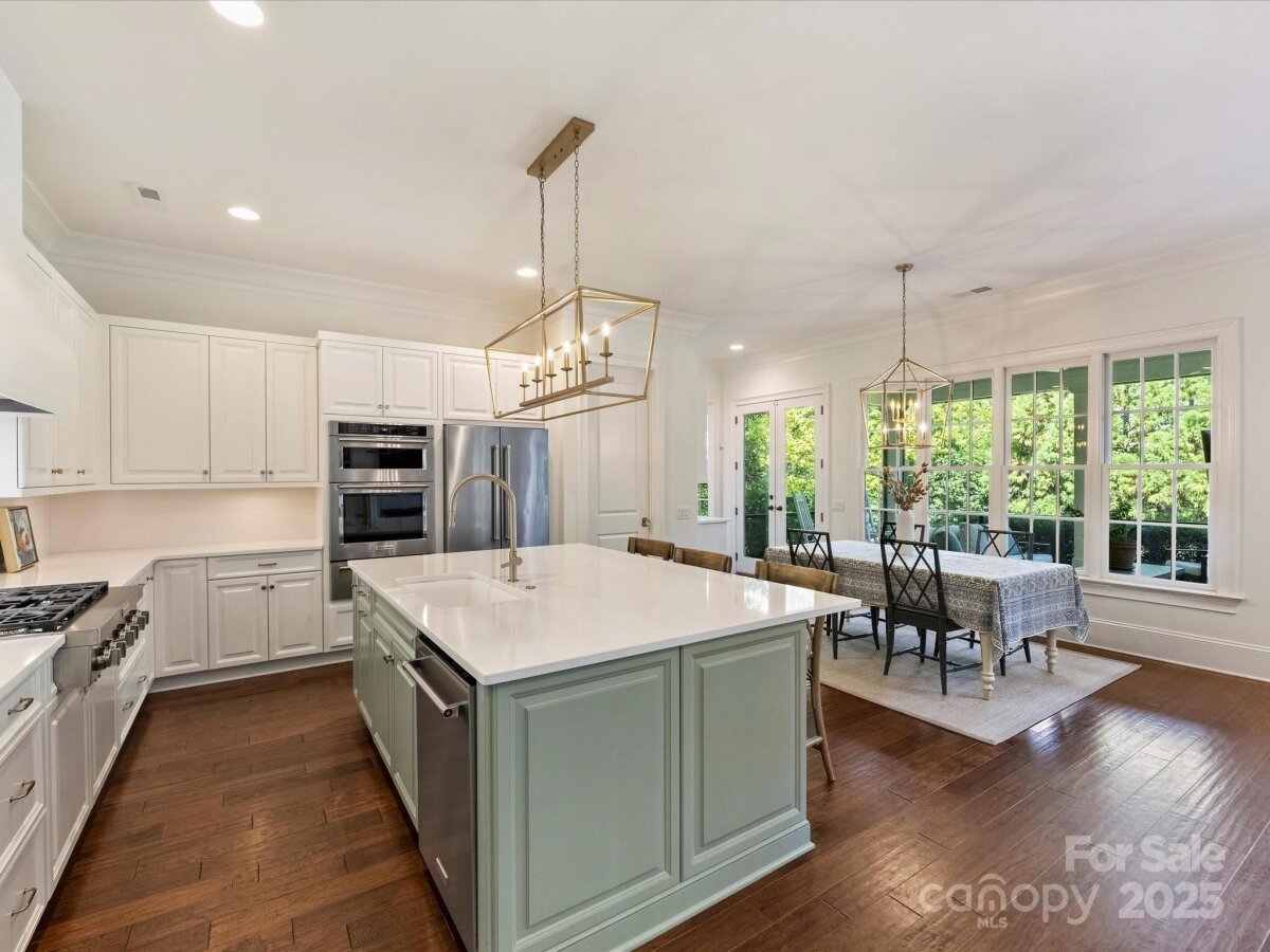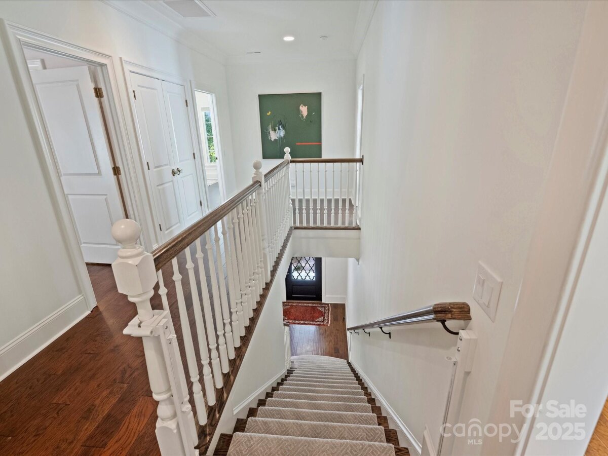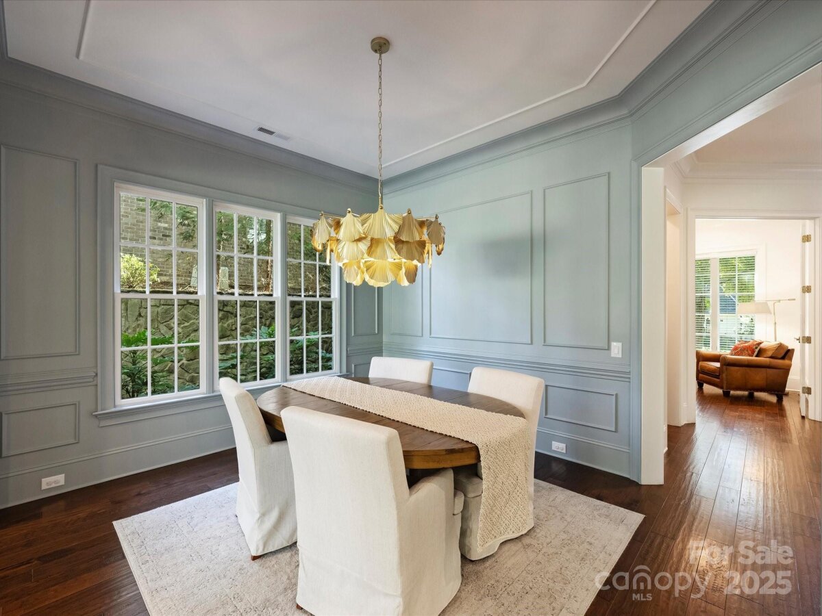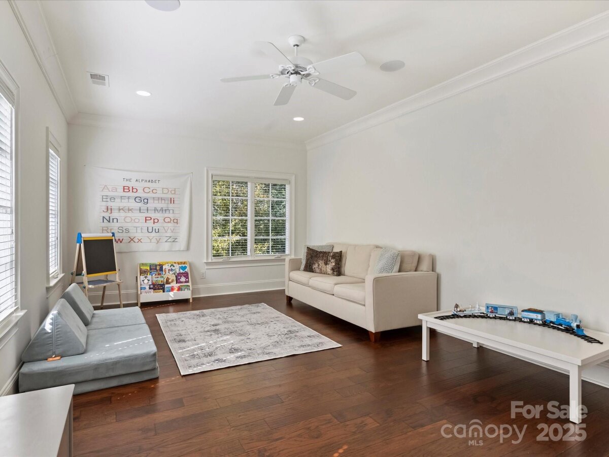 Welcome to this stunning full-brick home in Stonegate, thoughtfully crafted by Simonini. Inside, a private study with French doors offers the ideal space for a home office or formal living room. The elegant dining room, updated with fresh paint and millwork, flows seamlessly into the spacious living room where a gas fireplace and built-in speakers create an inviting atmosphere. The recently renovated kitchen is a showpiece, featuring all-new stainless steel KitchenAid appliances - including a commercial-grade gas range with custom hood - quartz countertops, new sink hardware, and a large eat-in island with additional storage. A bright breakfast area overlooks the covered, screened-in porch and the expansive, flat backyard with mature landscaping, perfect for indoor-outdoor living. Upstairs, you’ll find a versatile bonus room, two bedrooms joined by a Jack-and-Jill bathroom, an additional 4th bedroom with ensuite bath, and a luxurious primary suite. The primary retreat includes a massive walk-in closet which connects to the laundry, and a spa-like bathroom complete with a soaking tub, walk-in shower, and separate his-and-hers vanities with quartz countertops. Recent updates include engineered hardwood flooring throughout the second level (2024), custom window treatments and wooden blinds, fresh interior and exterior paint (2024), and a new upstairs HVAC system (2025). Minutes to SouthPark Mall, Phillips Place, and Charlotte's top golf courses.