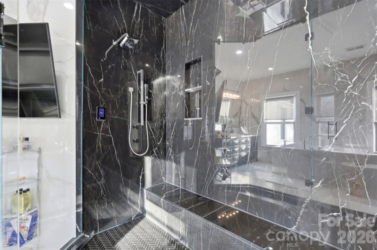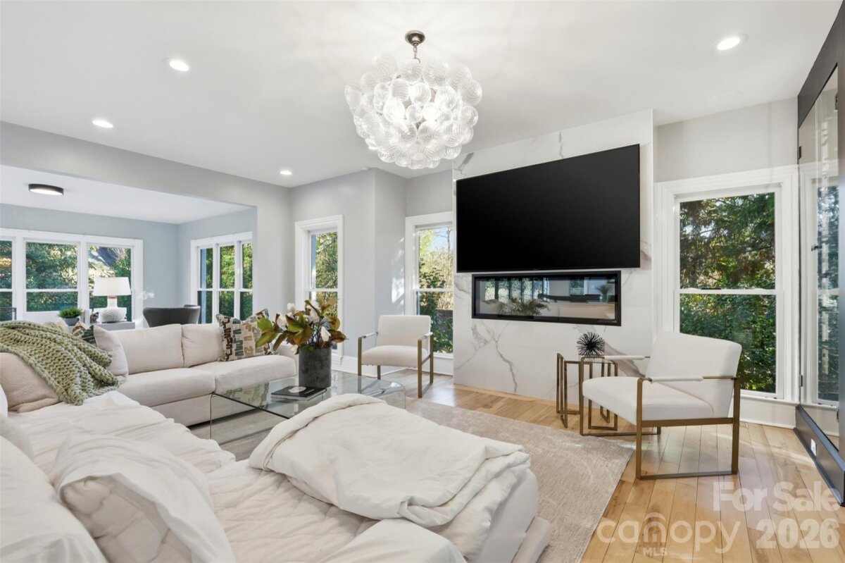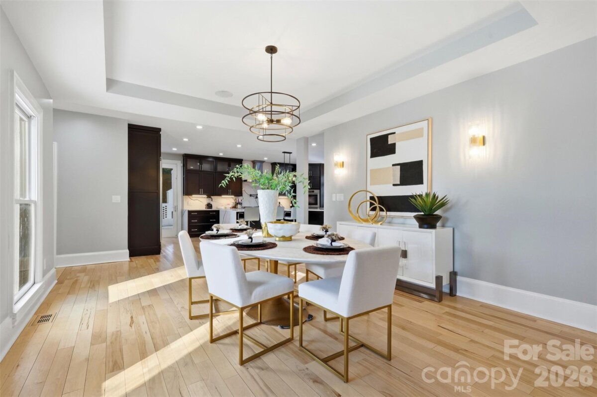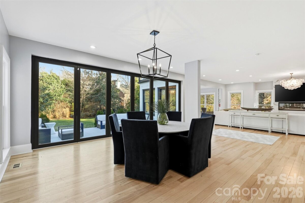 Gated entrances welcome you to this private, estate-sized home in one of Charlotte's most prestigious neighborhoods. The elegant foyer opens to a stunning main-level wine room and flows seamlessly into a spacious family room featuring new lighting and fresh paint. This inviting space connects to a cozy sitting area and an eat-in kitchen nook adjacent to the grand chef's kitchen. The chef's kitchen is a true showpiece, boasting a massive center island, professional-grade appliances—including 4 ovens, 2 dishwashers, 2 refrigerators, and 2 freezers—and beautiful maple hardwood flooring that extends throughout the main level.Upstairs, the expansive owner's suite occupies an entire wing of the home, offering ultimate privacy and luxury. Enjoy two private terraces—one perfect for sunrise views and the other for breathtaking sunsets. The spa-like owner's bath features a jetted tub, an oversized custom shower, abundant closet space, and an array of lavish amenities.The home's expansive living areas lead to a spectacular outdoor oasis, complete with an oversized custom saltwater pool featuring a cascading spa, surrounded by mature, lush landscaping. The entire property is fully gated and fenced, enclosed by a custom brick wall and enhanced with established greenery for maximum seclusion and curb appeal.This exceptional residence combines modern updates, thoughtful design, and resort-style living in a prime, sought-after location.